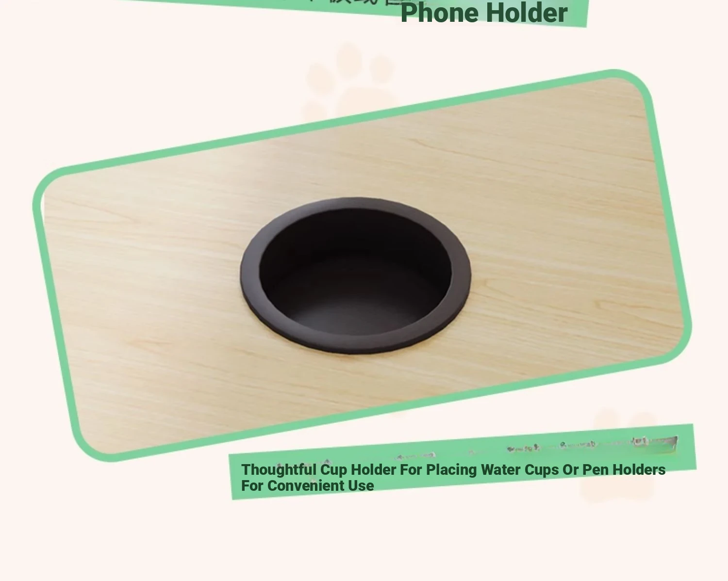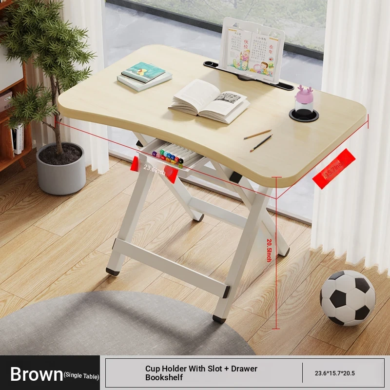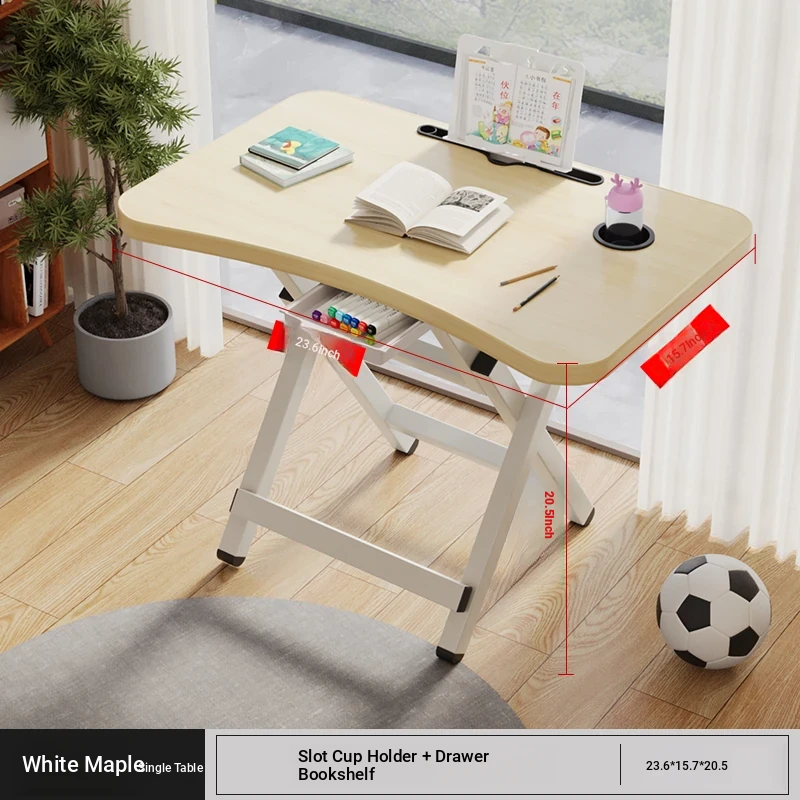 [Single Table] White Maple 60_40_52 (Card Slot Cup Holder + Drawer Bookshelf)