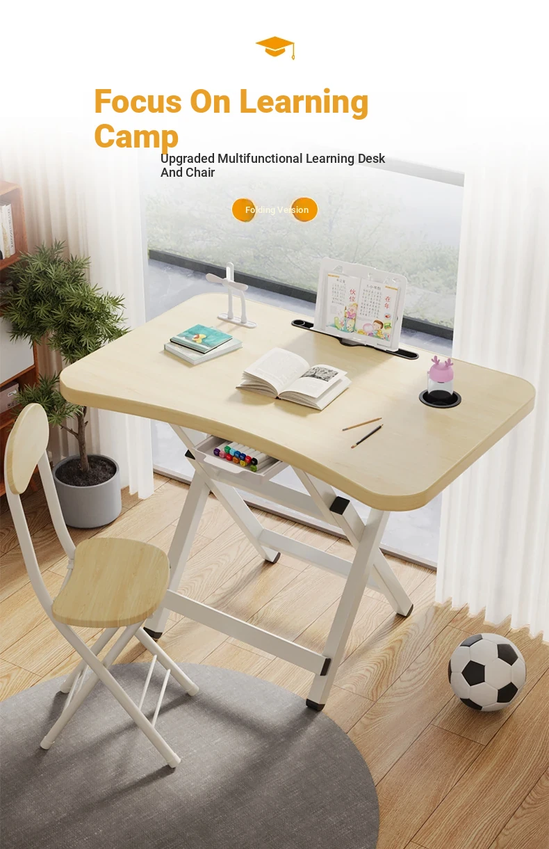 Children's Foldable Study Desk and Chair Set - Perfect for Elementary Students! Ideal for Homework, Home Use, and Easy Writing. Compact and Functional Design for Young Learners.