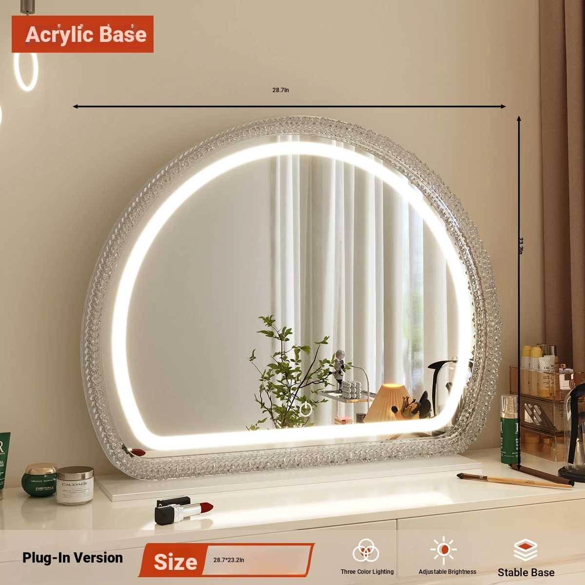[Plug-in-light transmission] semicircle Crystal Mirror -59*73 [tri-color light + adjustable brightness]]