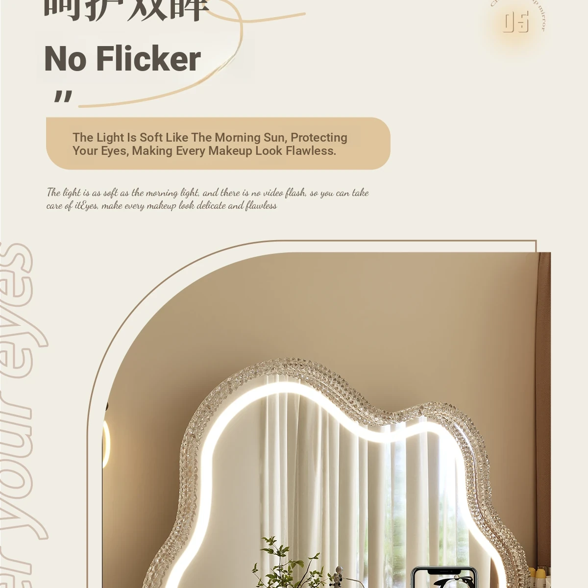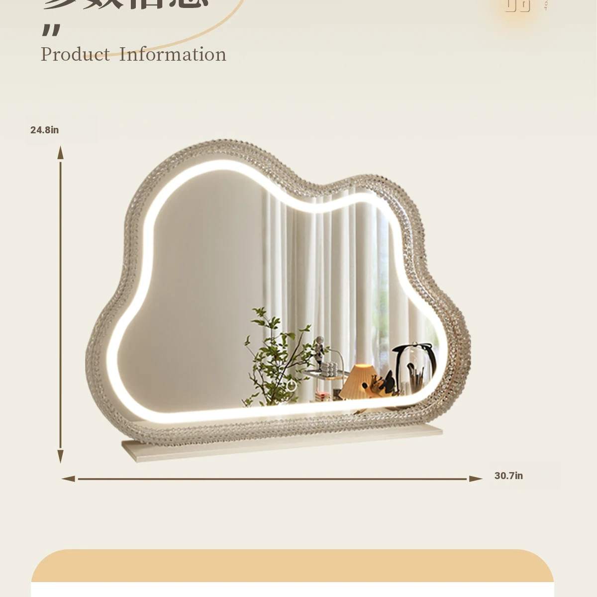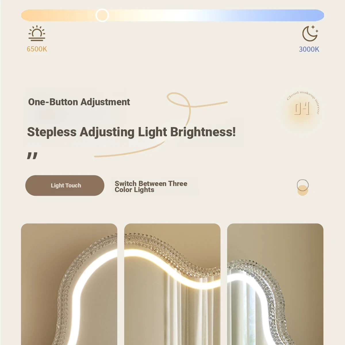 [Plug-in-light transmission] Cloud Crystal Mirror -78*63 [tri-color light + adjustable brightness]]