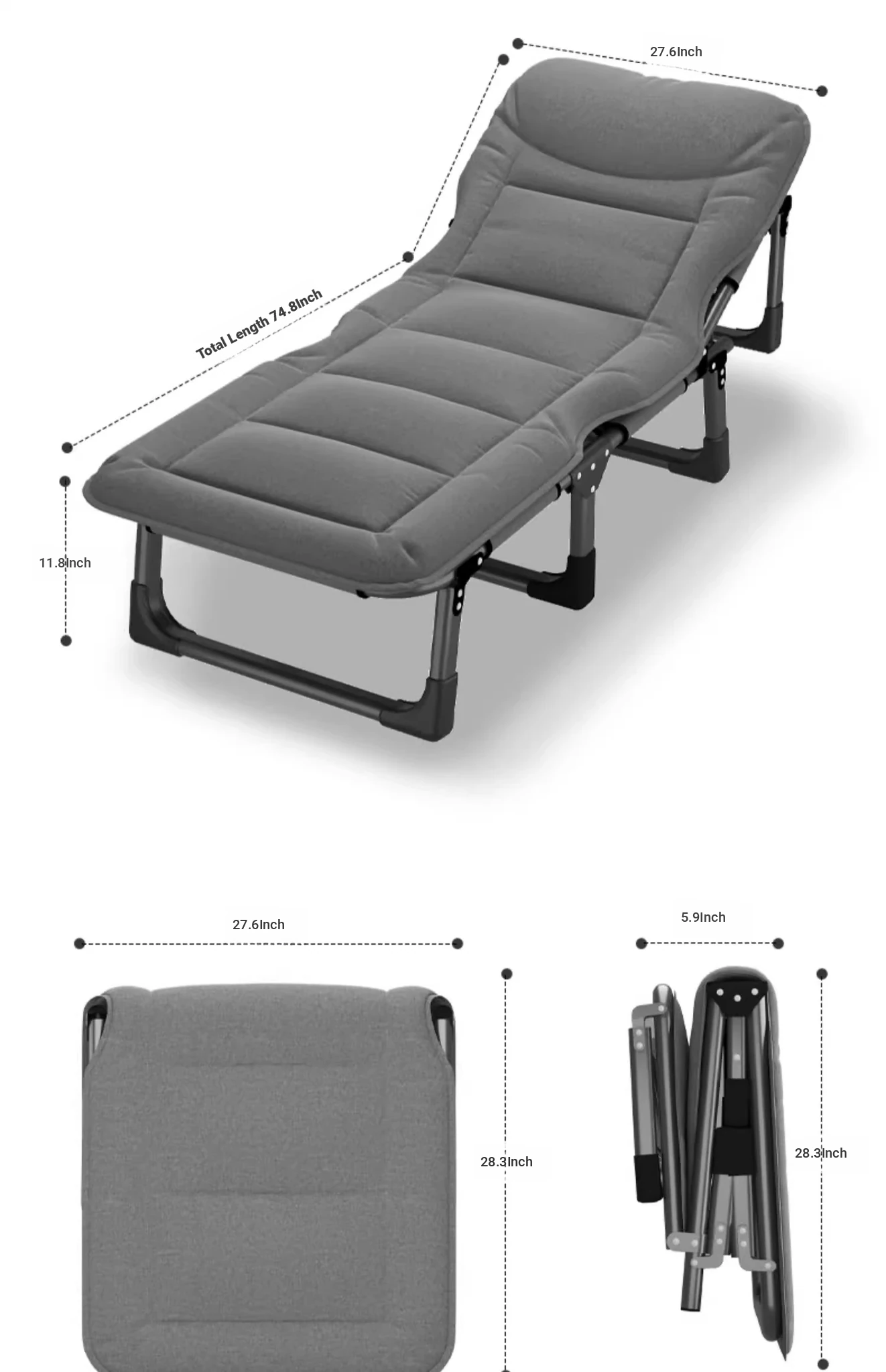 Hot [190*68 wide Long widened load-bearing 150.00kg] Accessible Luxury gray backrest multi-speed adjustable