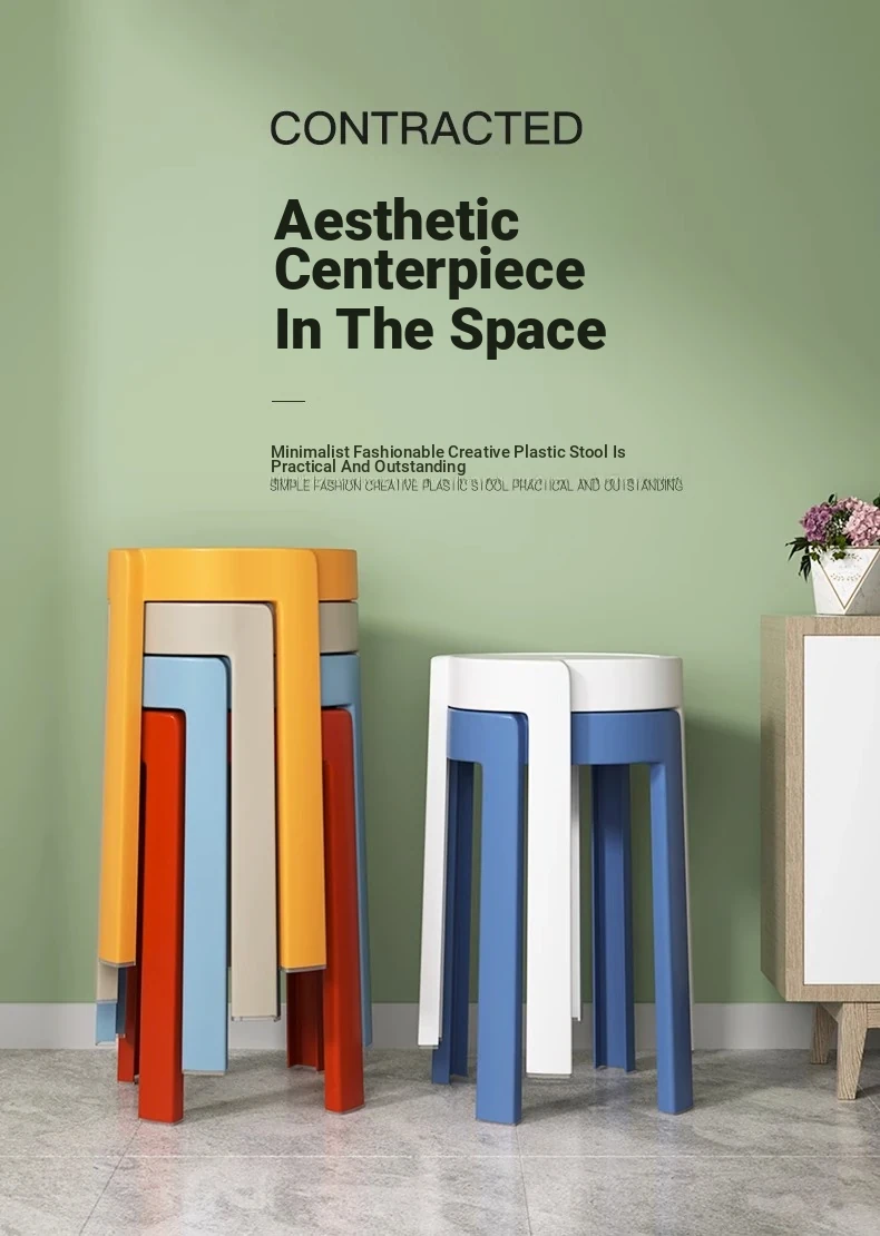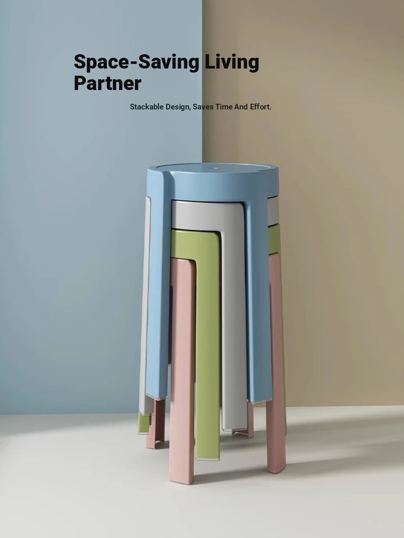 Durable Thick Plastic Stool for Home Use - Stackable Round High Seat, Easy to Store, Ideal for Various Spaces