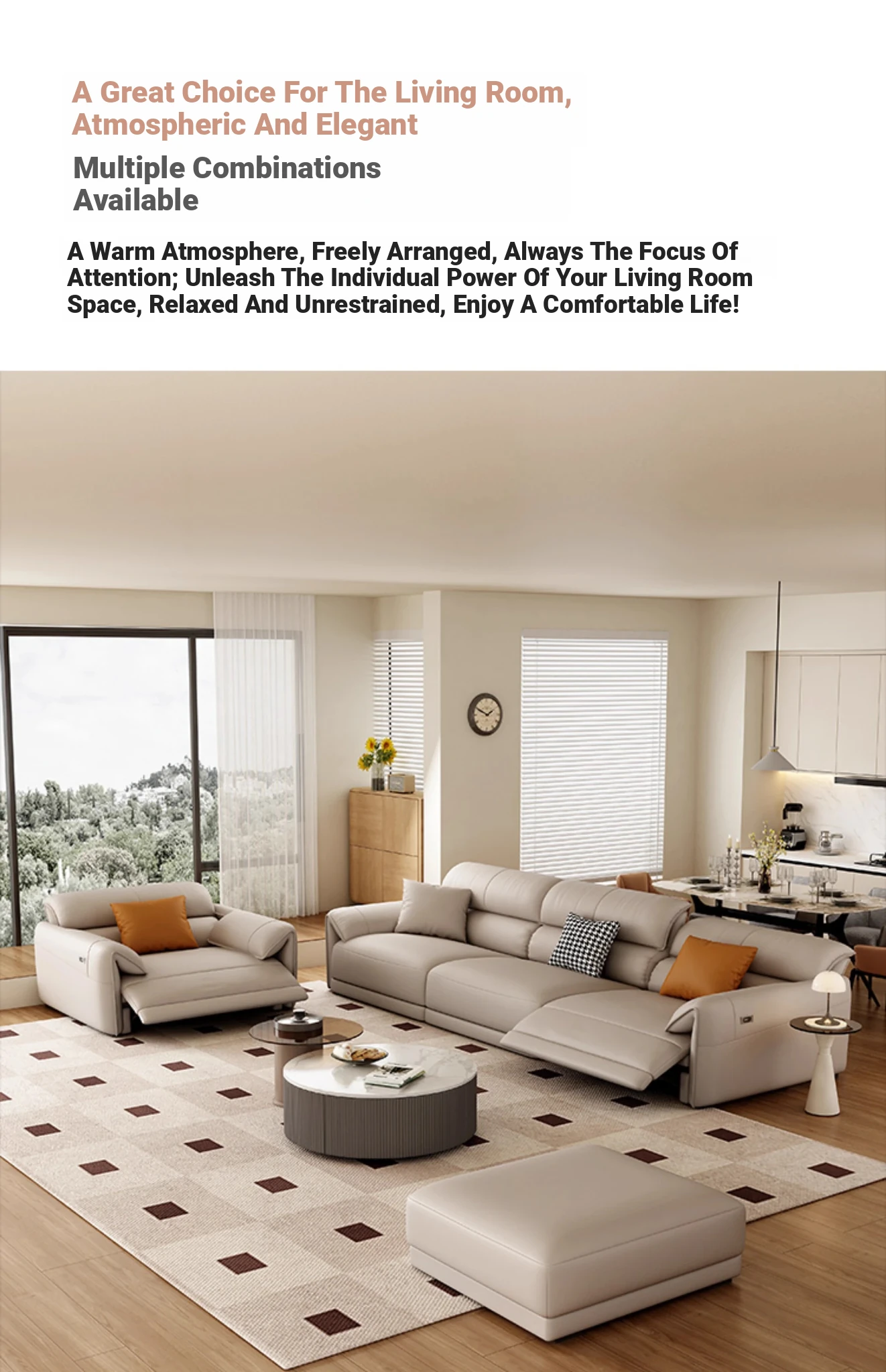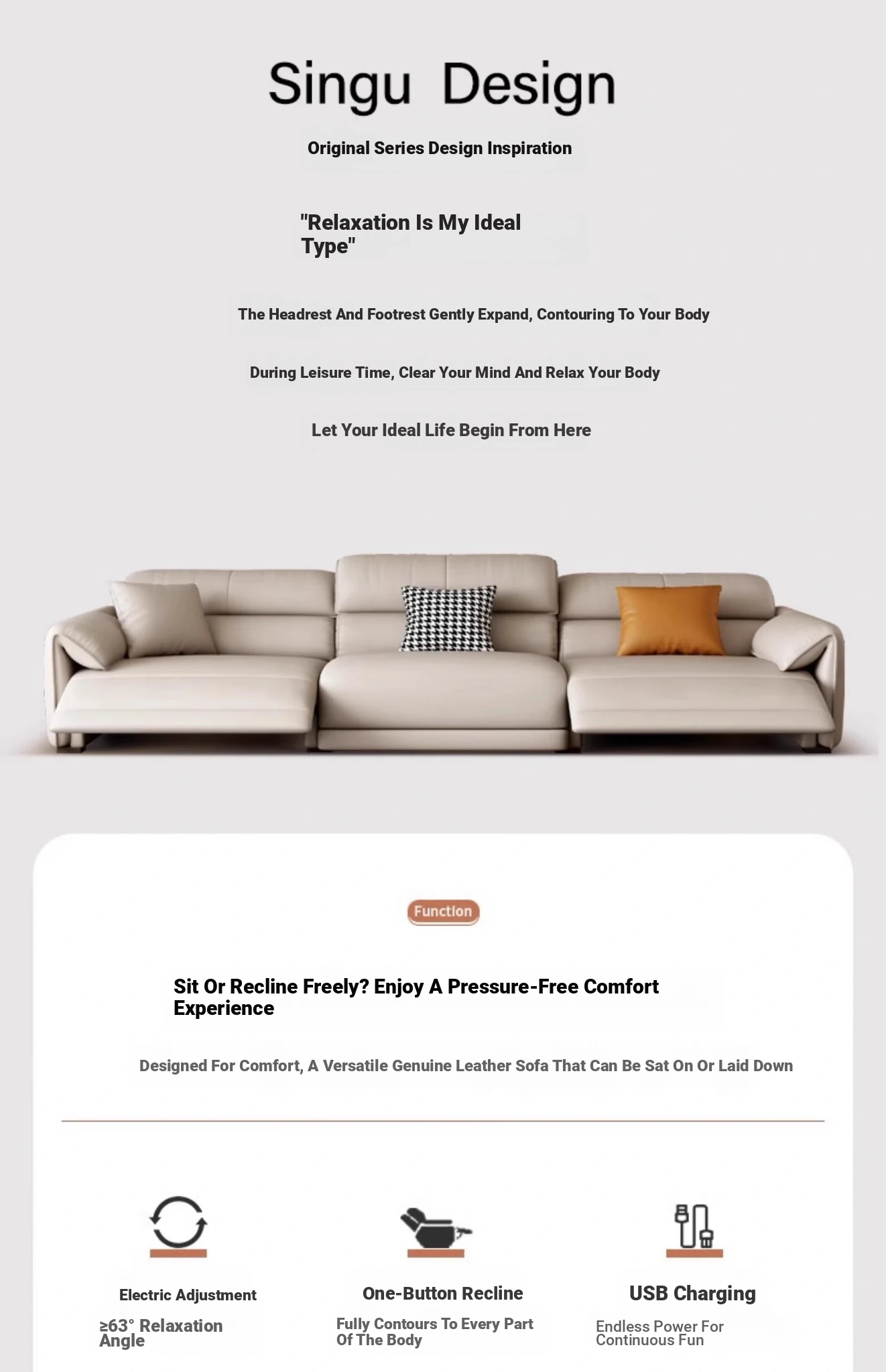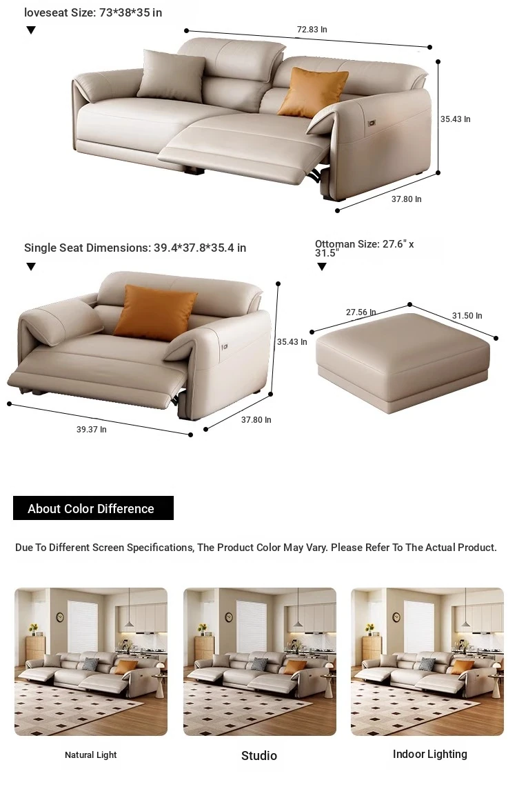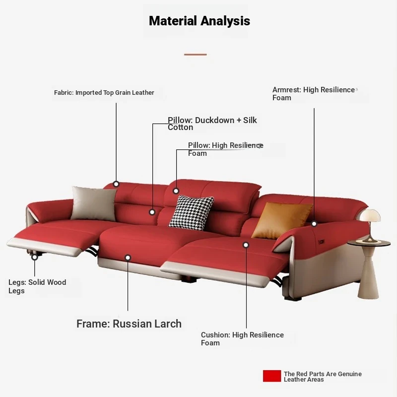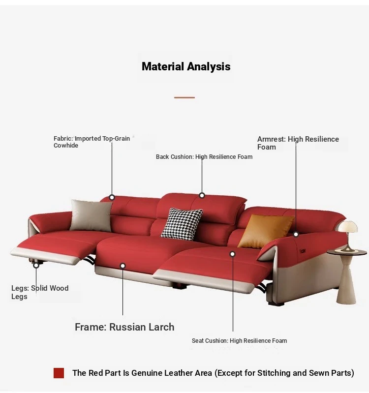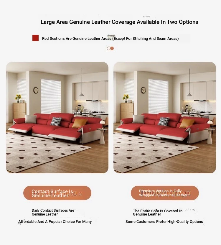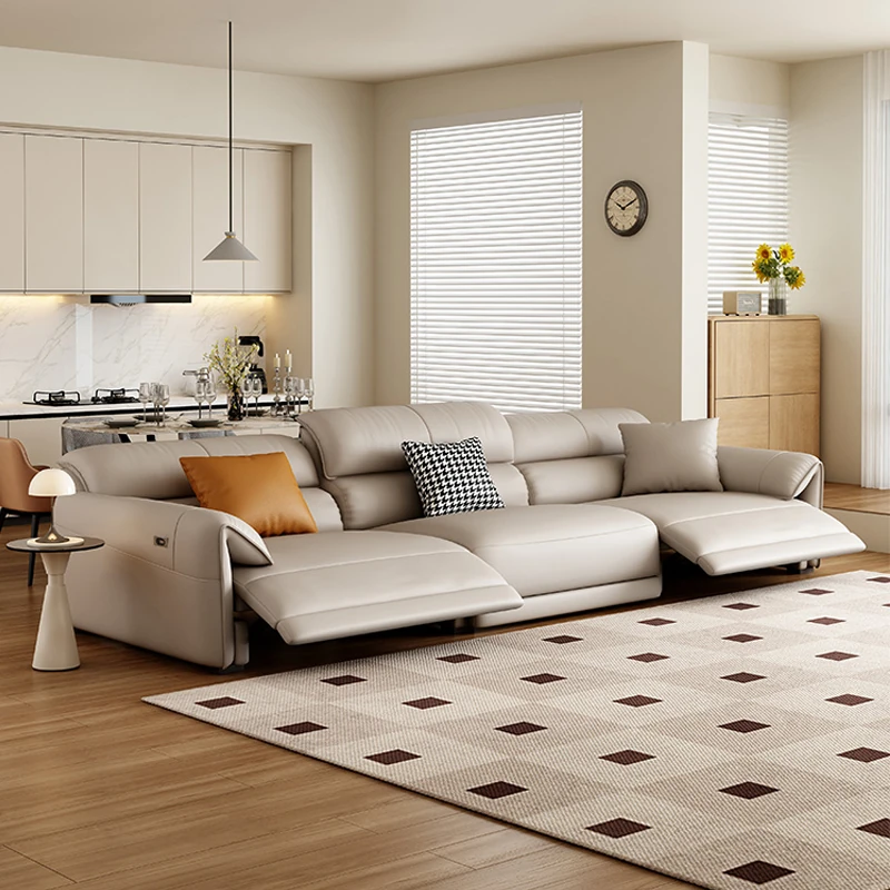 Electric Multifunctional Genuine Leather Sofa - Wall-Free Design for Living Room, Made of Top-Grain Italian Leather, Minimalist Modern First-Class Lounge Sofa