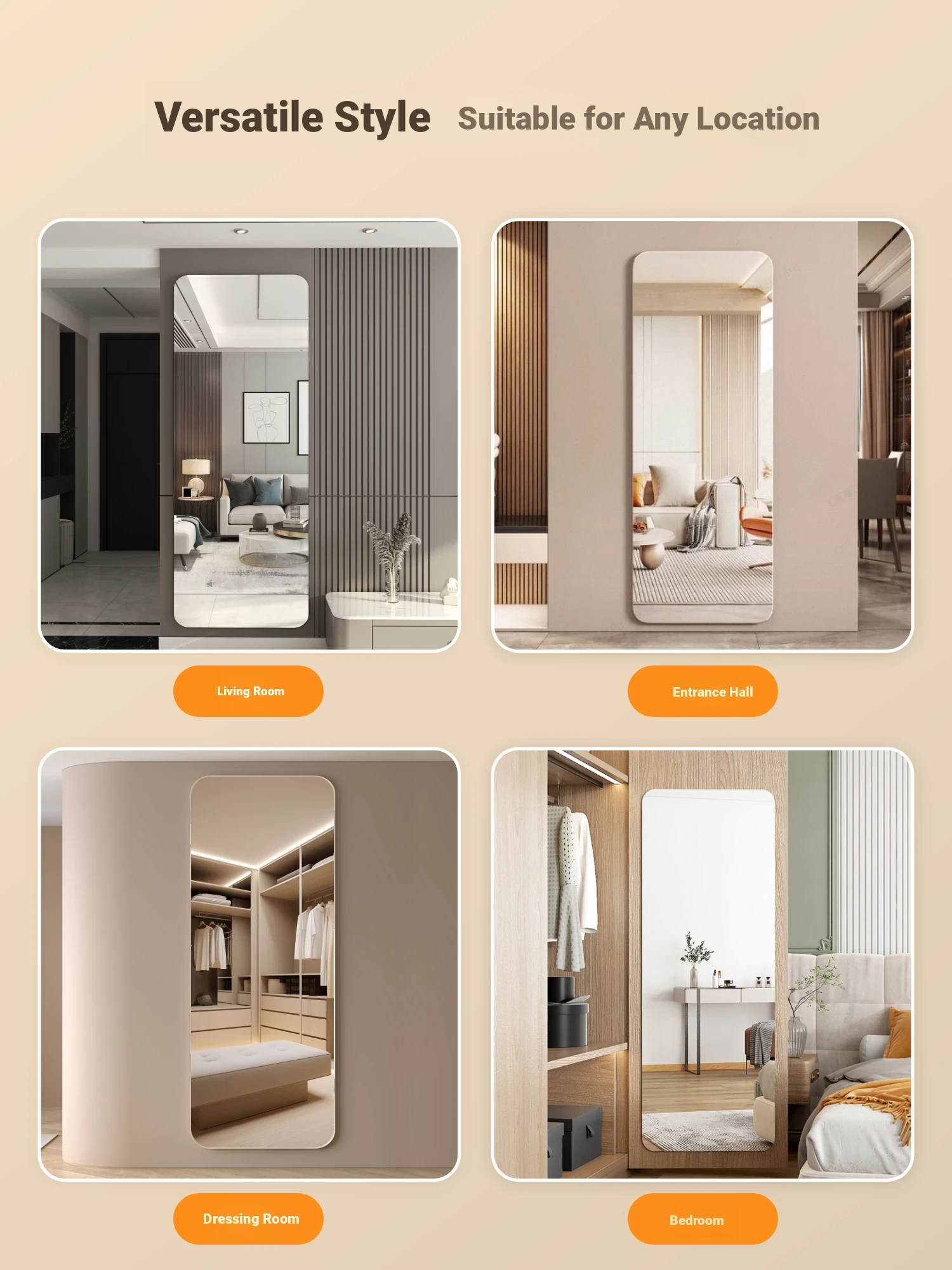Elegant Frameless Full-Length Wall-Mounted Mirror - Self-Adhesive Dressing Mirror for Home Use, Ideal for Bedrooms and Dressing Areas, Adds a Touch of Luxury to Your Space.