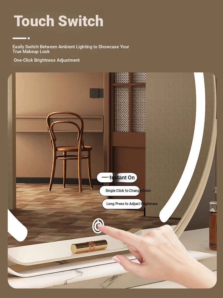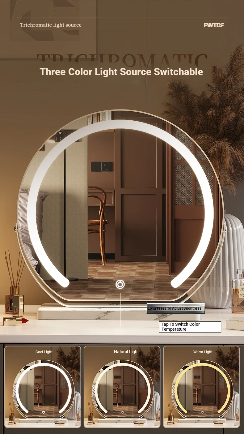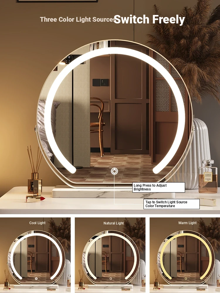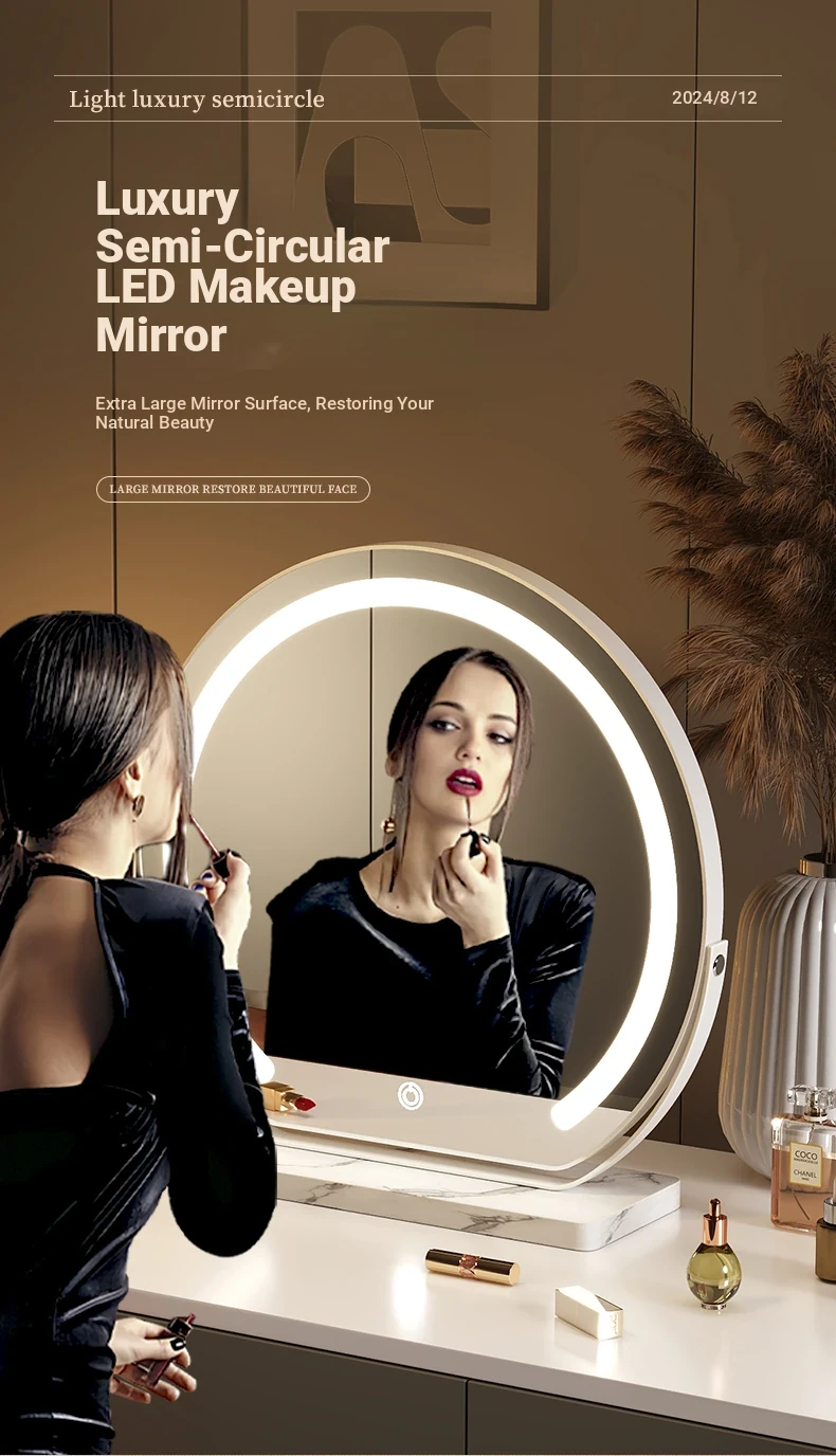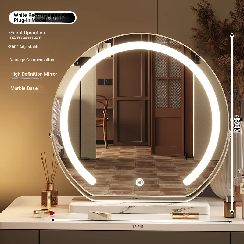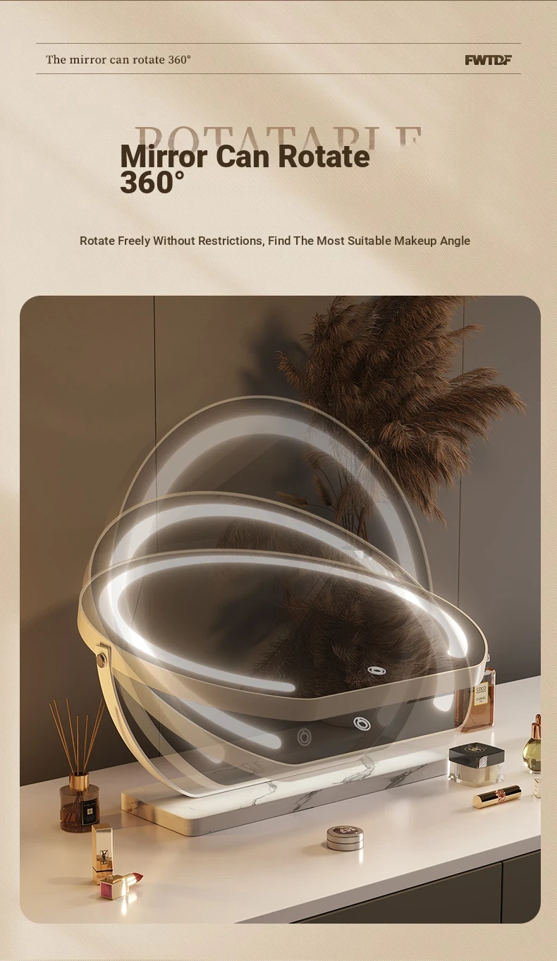 Elegant LED Makeup Mirror for Dressing Table - Large Rotatable Smart Mirror with Lights, Perfect for Home Use in Bedroom
