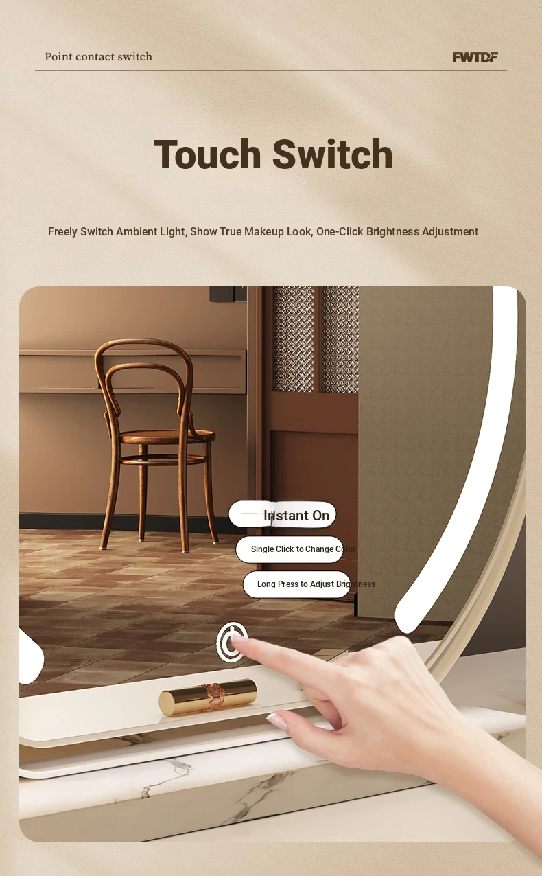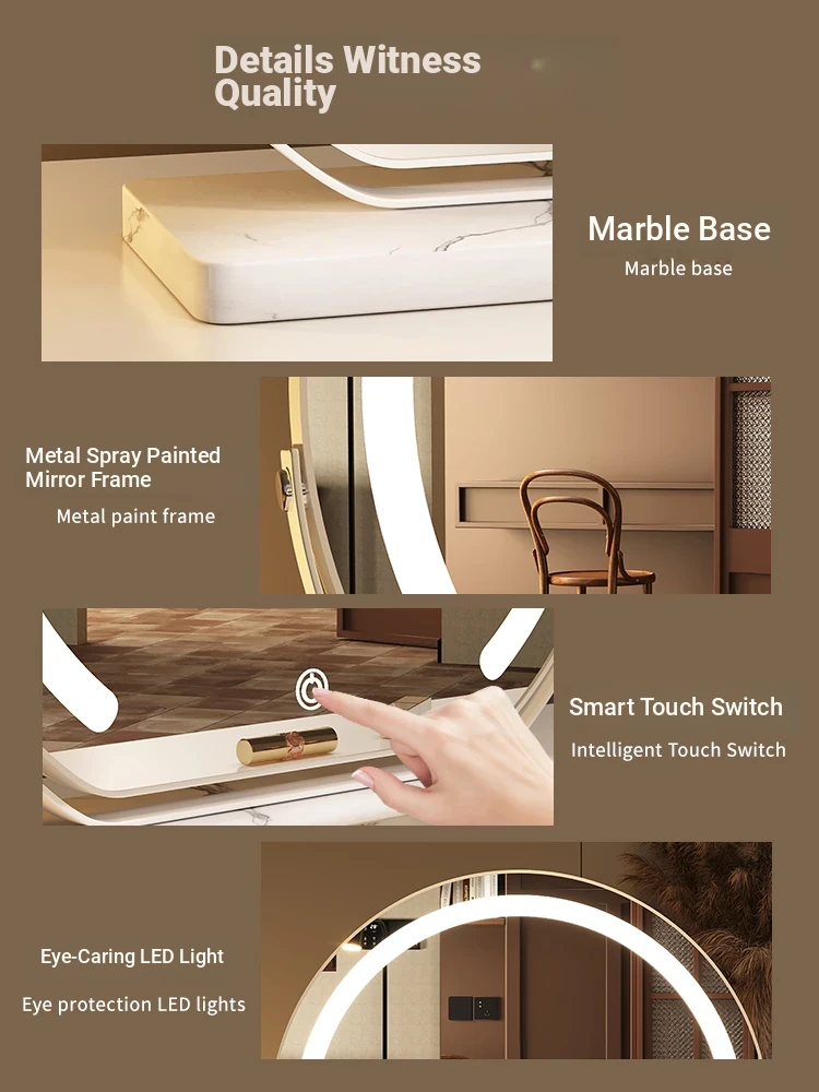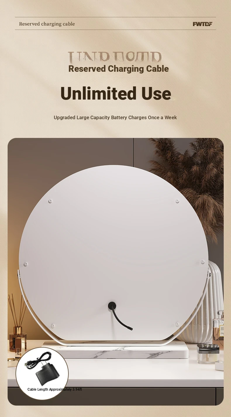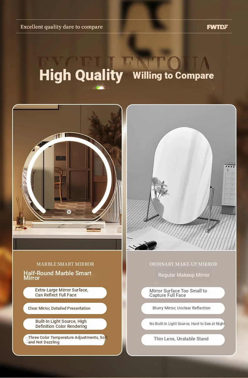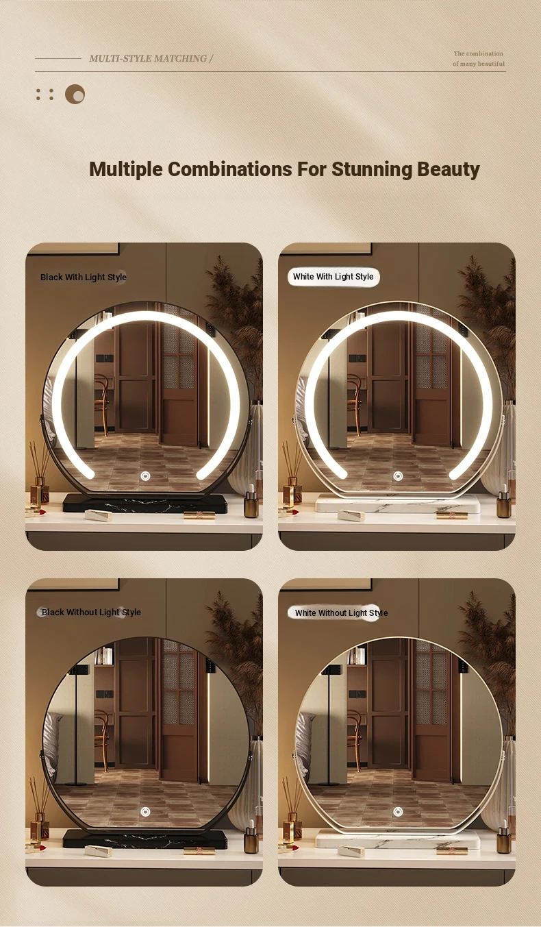 Elegant LED Makeup Mirror for Dressing Table - Large Rotatable Smart Mirror with Lights, Perfect for Home Use in Bedroom