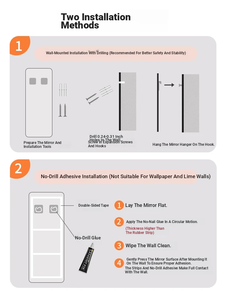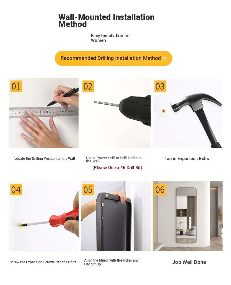 [No Drilling Wall] 65*170 Elegant Black [HD Mirror + Damage Compensation]]