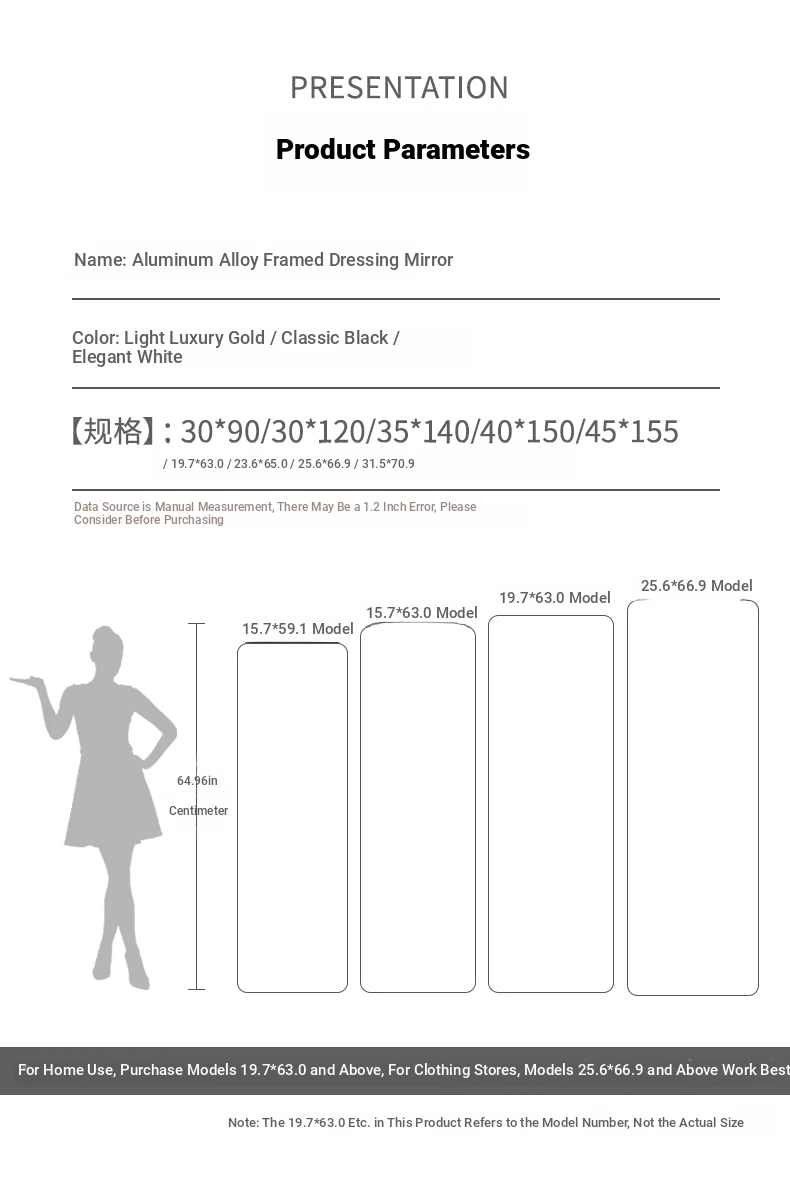 [No Drilling Wall] 60*165 Champagne Gold [HD Mirror + Damage Compensation]]