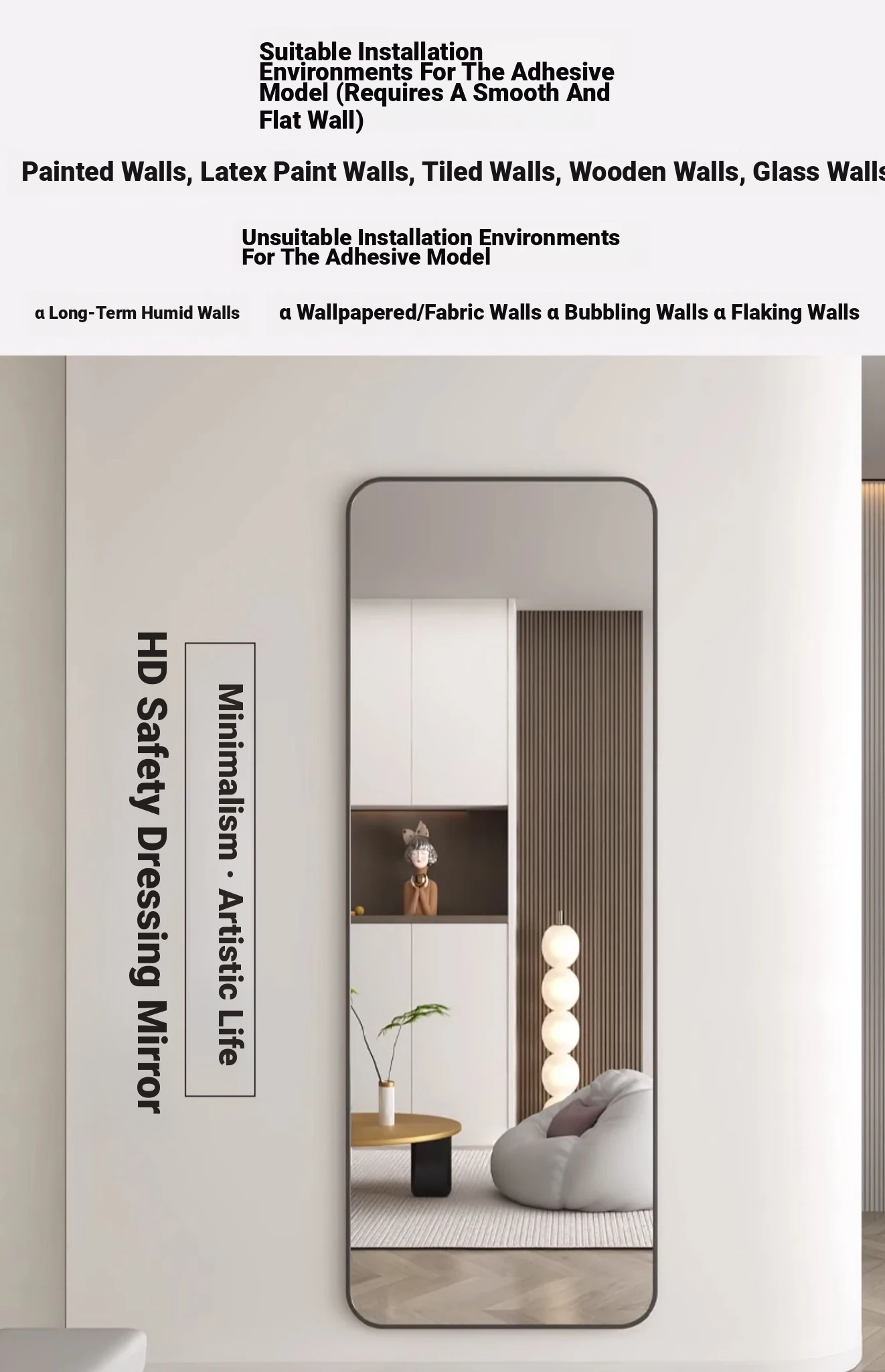 Elegant Self-Adhesive Full-Length Mirror for Home - No Drill Required, Perfect for Bedrooms and Dressing Rooms, Wall-Mounted or Floor Standing, Stylish Addition to Your Space
