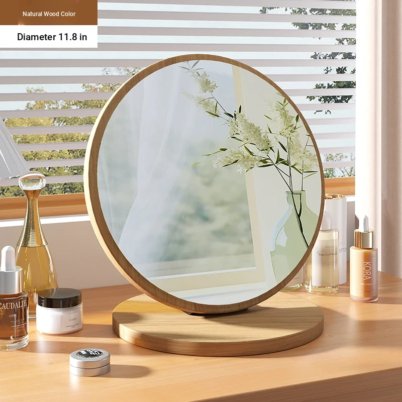 [Round] Foldable mirror 11.81in*11.81in (pure pine material)