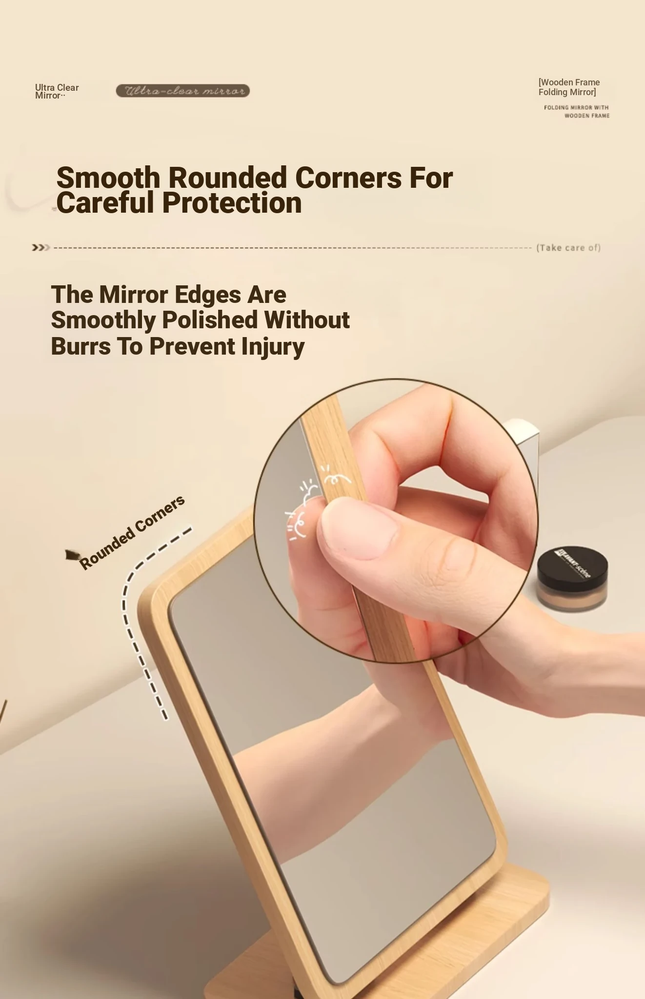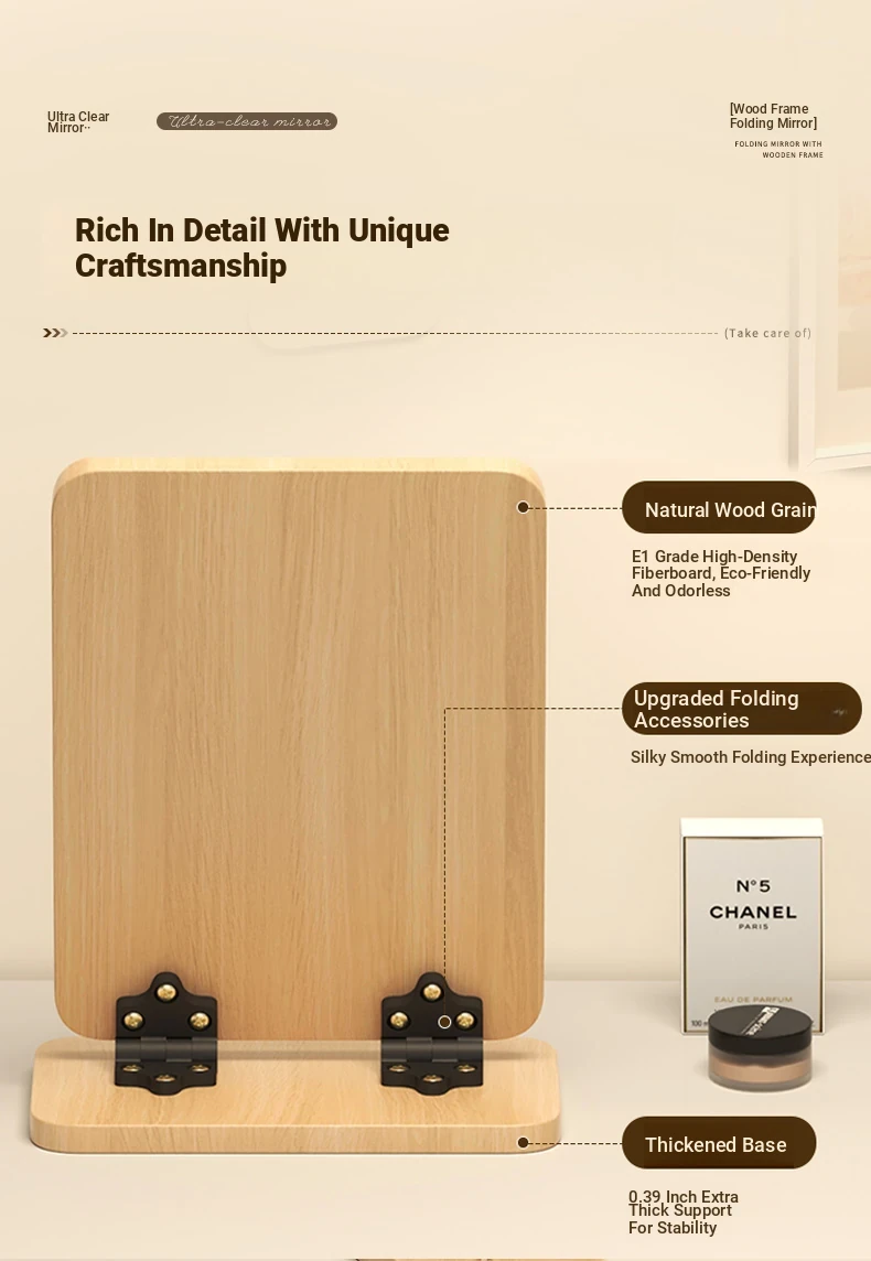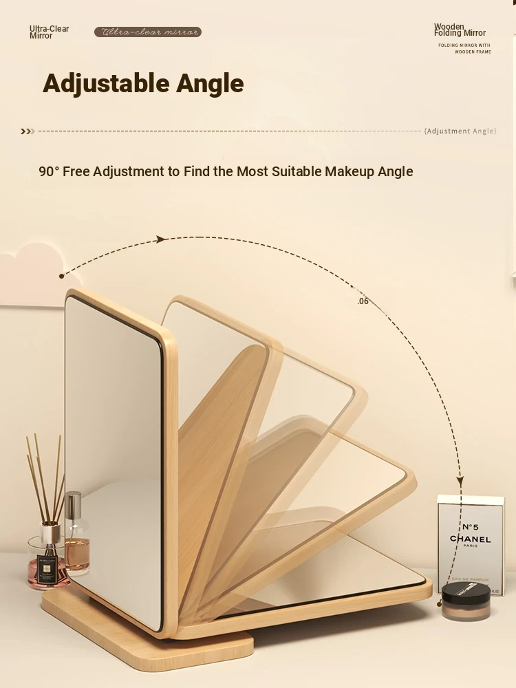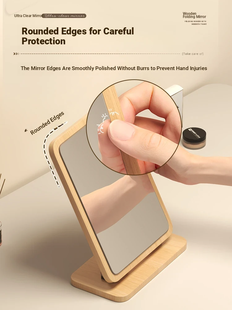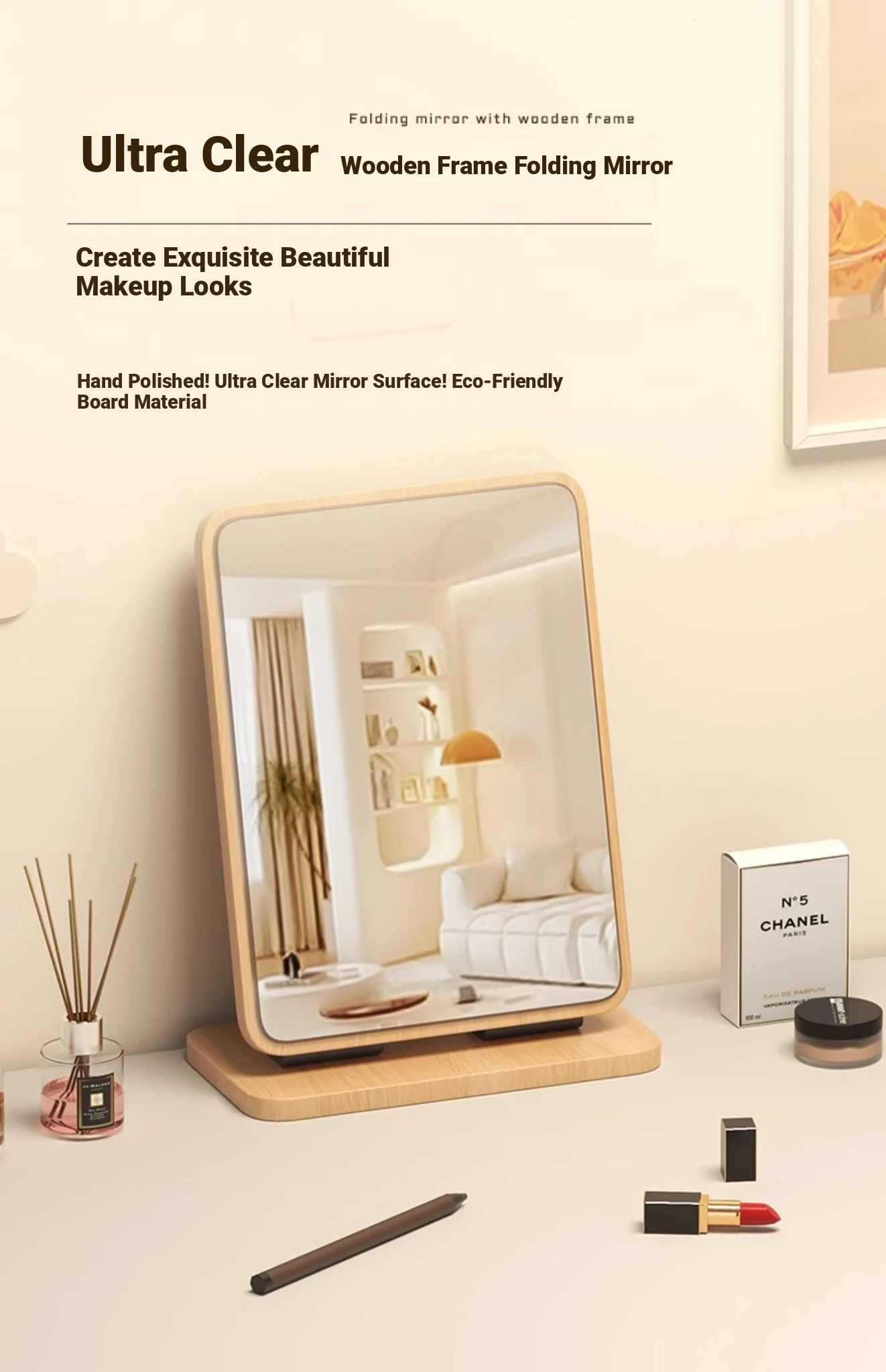 Elegant Wooden Makeup Mirror - Deluxe Tabletop Vanity Mirror with HD Folding Design for a Chic Home Experience