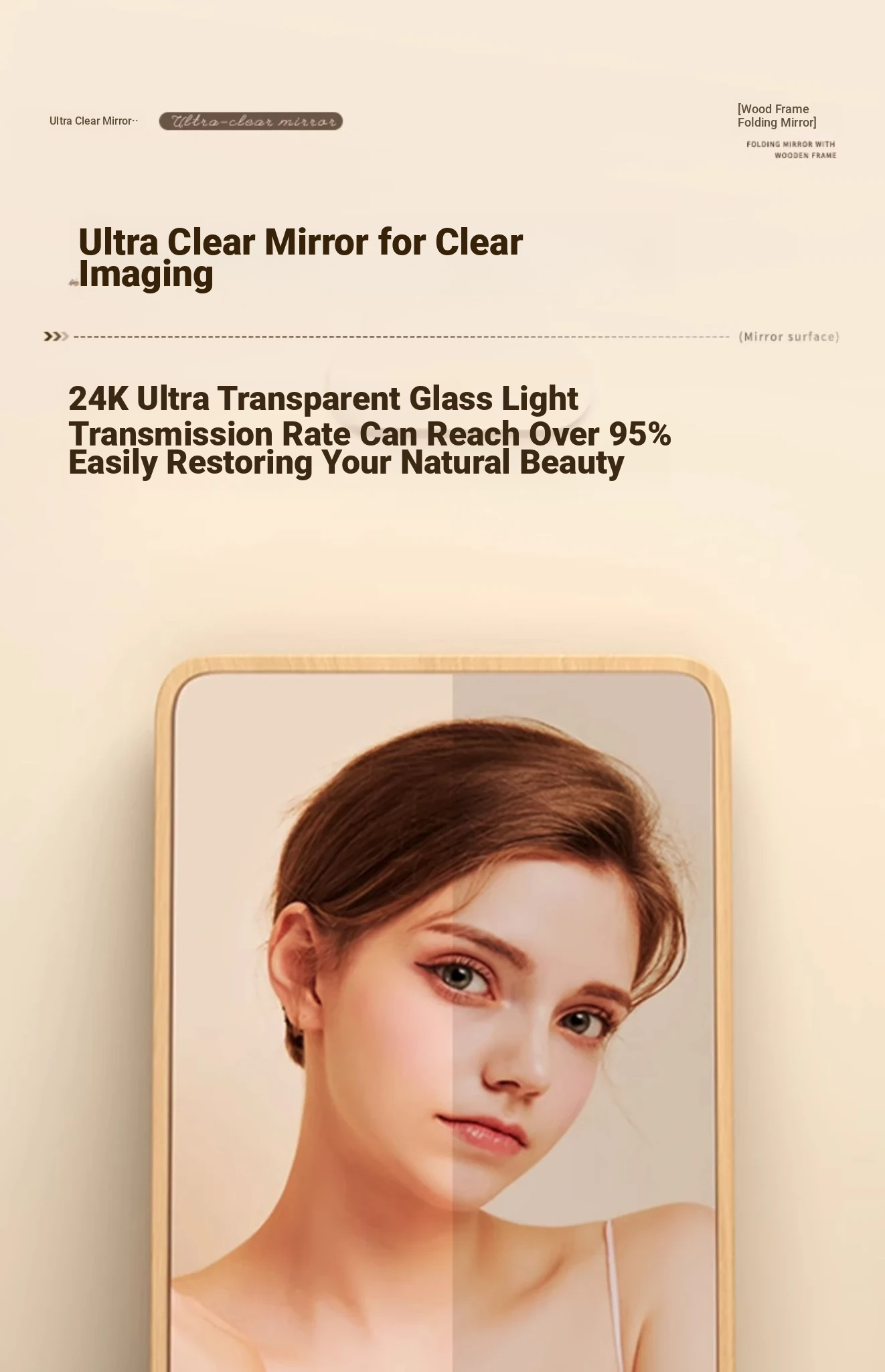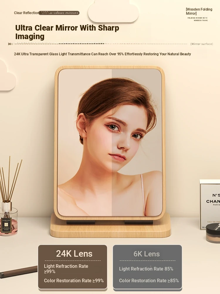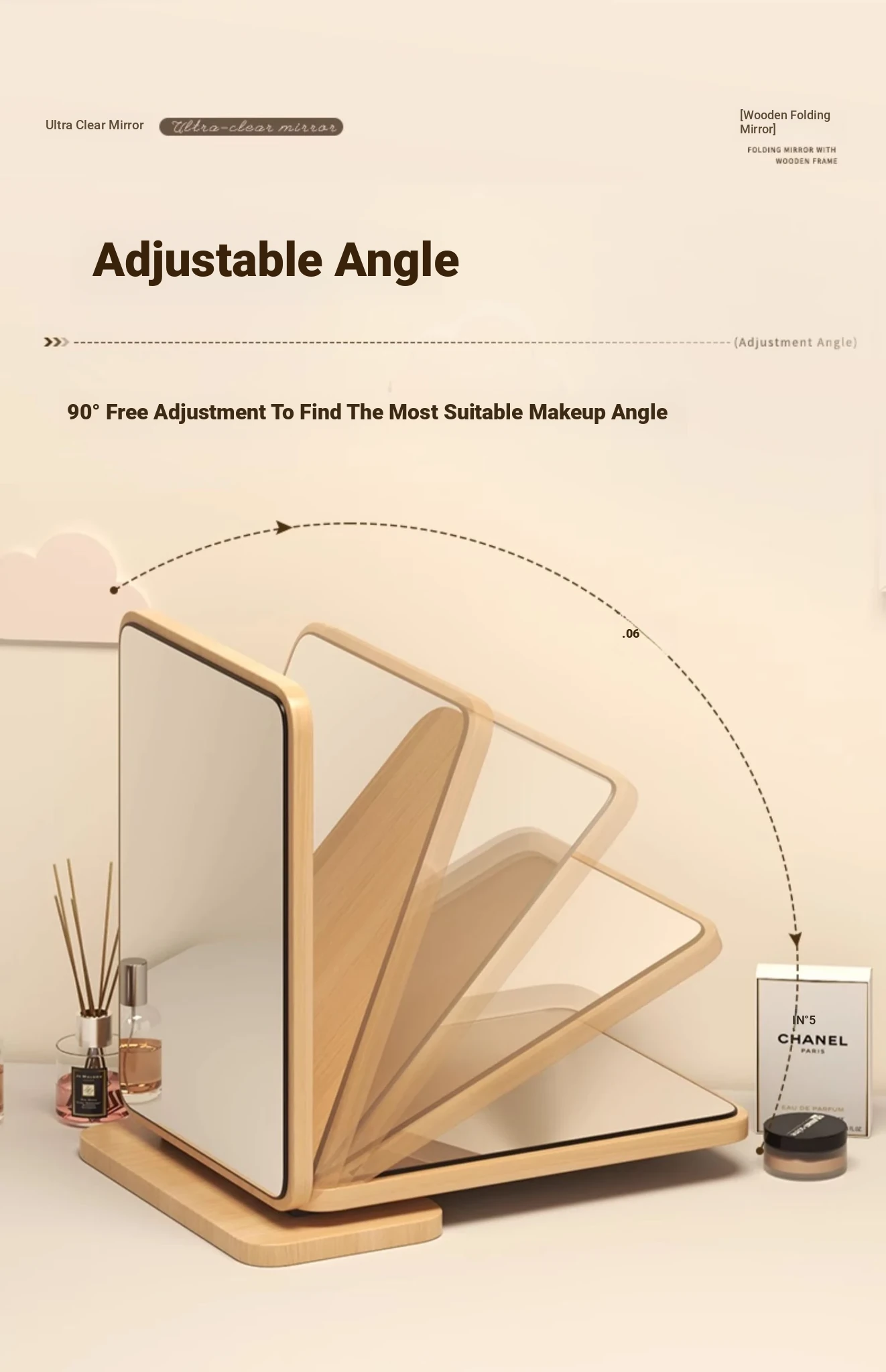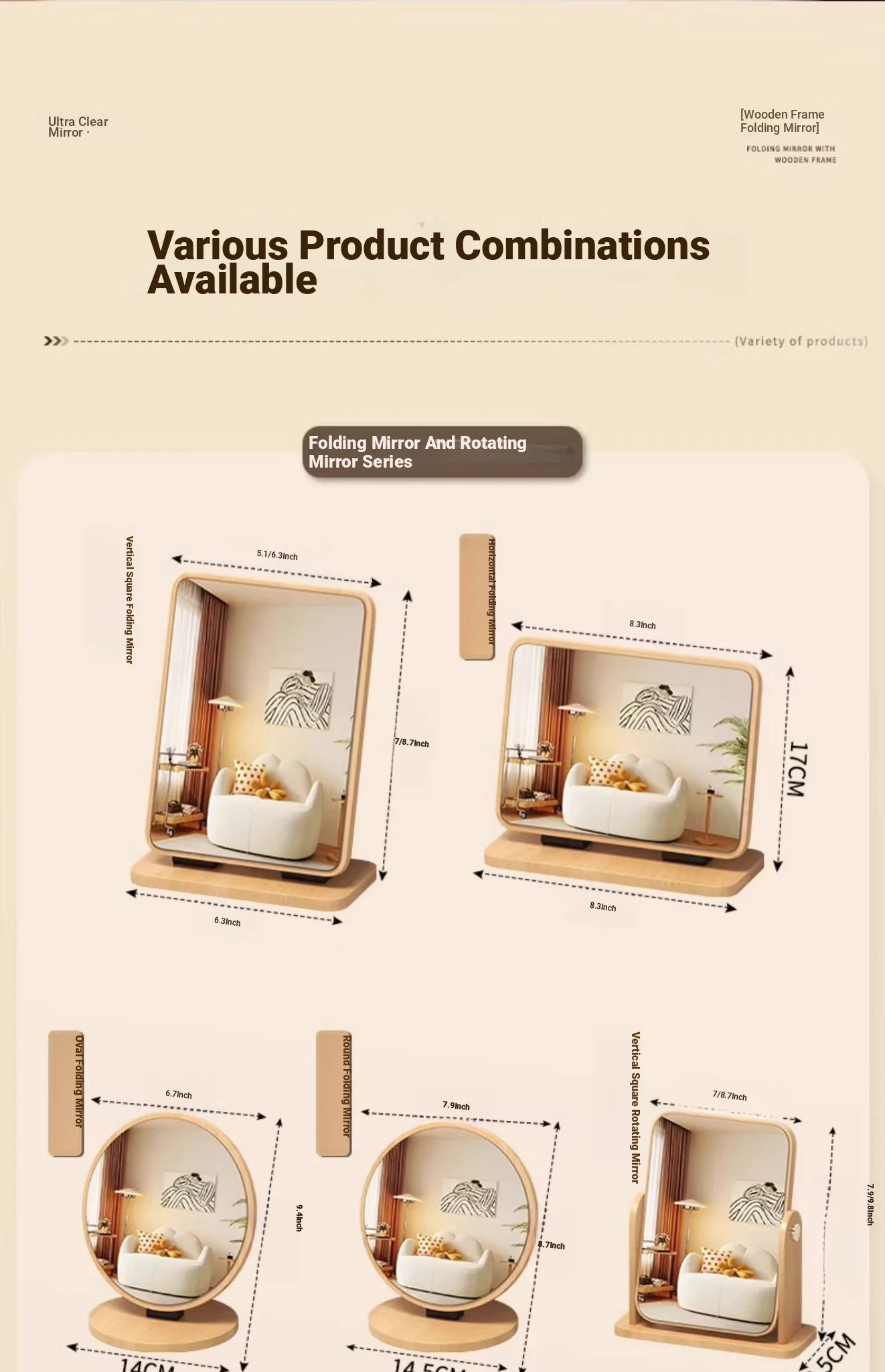 Elegant Wooden Makeup Mirror - Deluxe Tabletop Vanity Mirror with HD Folding Design for a Chic Home Experience