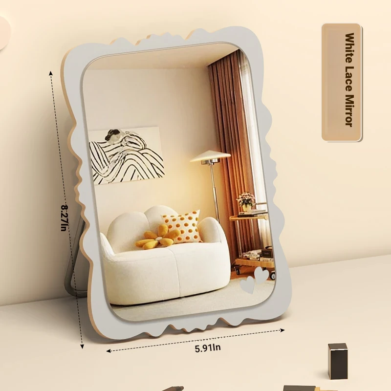 [Square] white lace mirror 8.27in*5.91in (imitation solid wood material)
