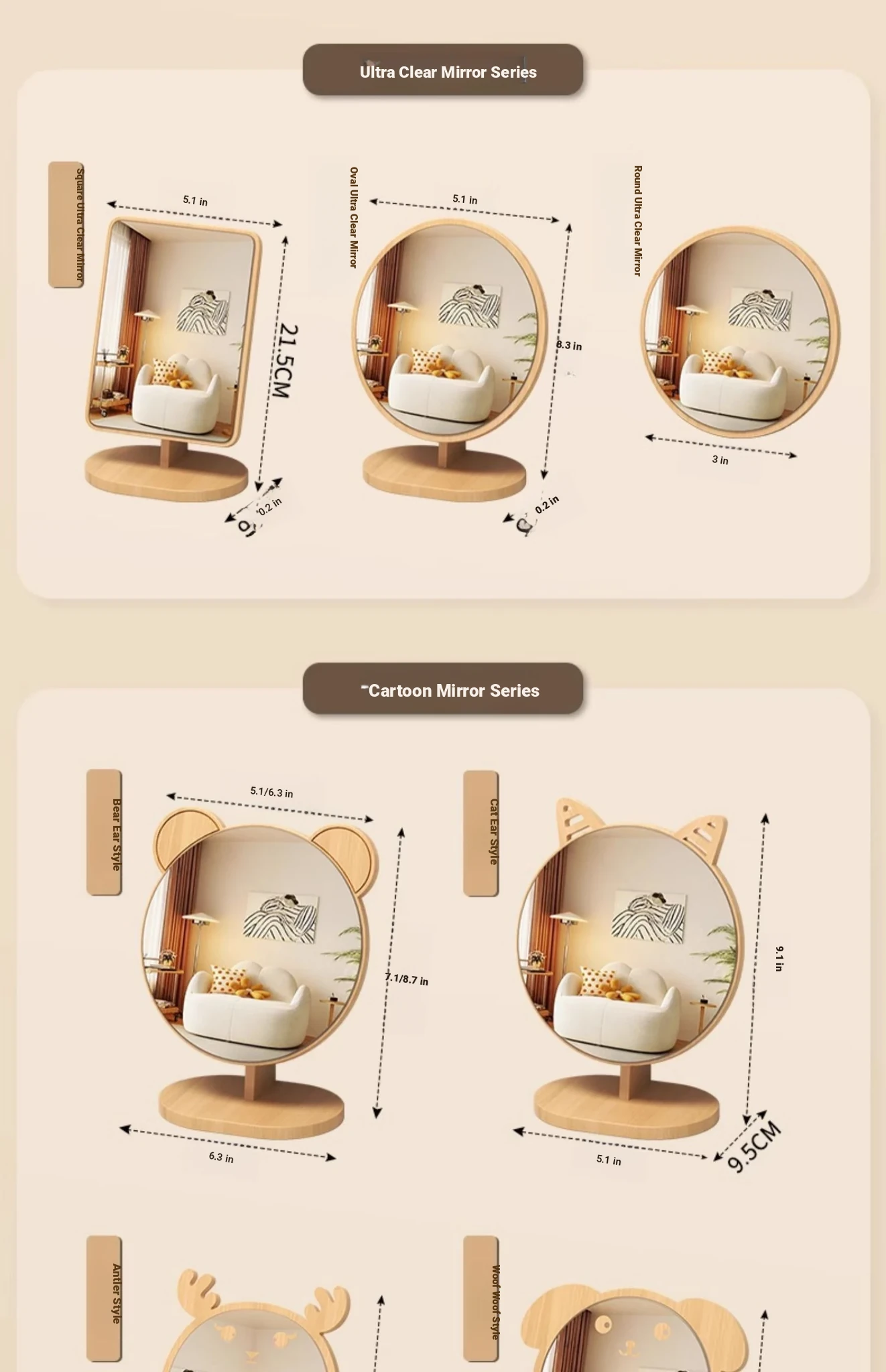 [Round] Foldable wooden mirror 7.87in*8.66in (imitation solid wood material)
