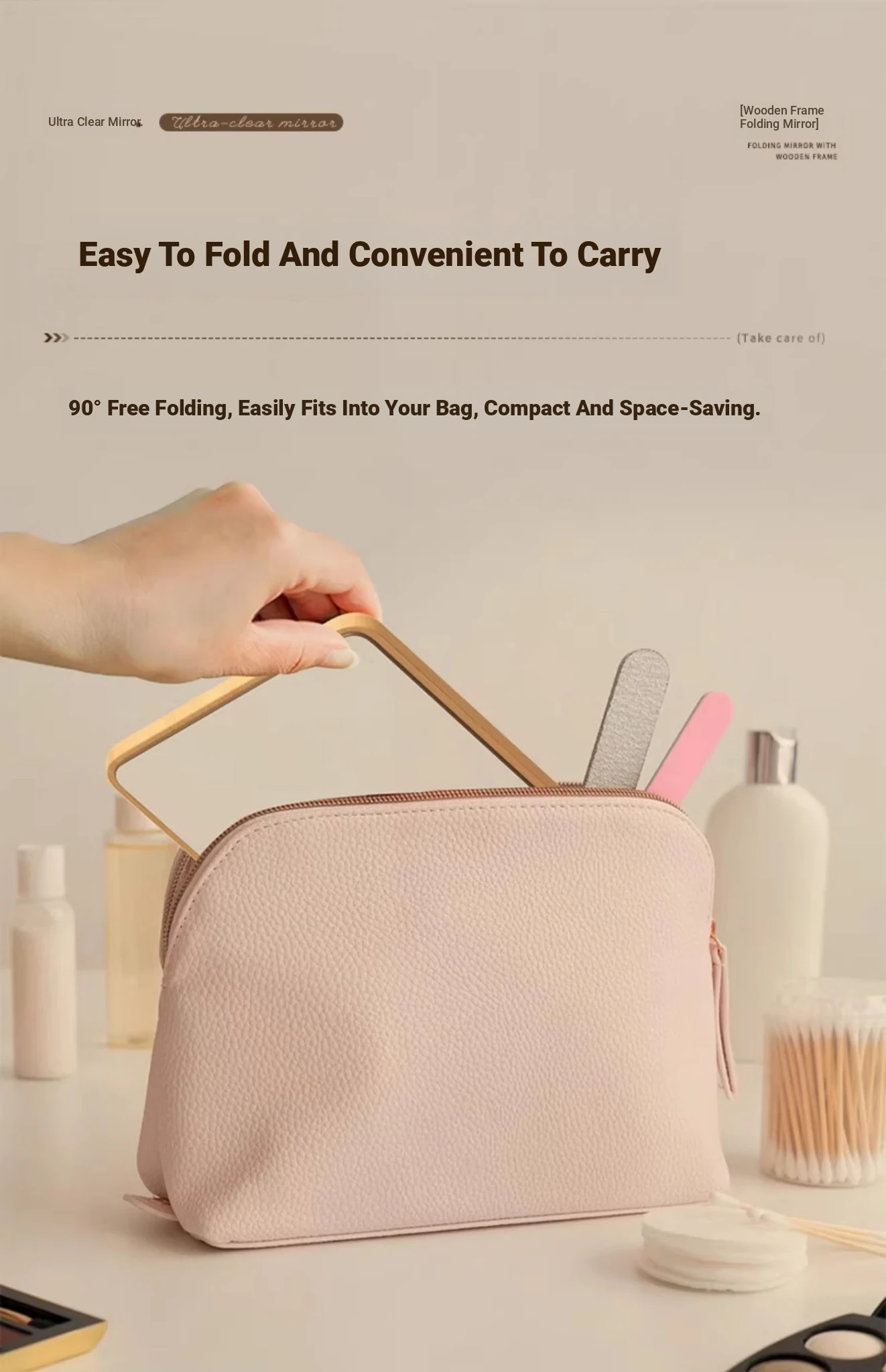 ✨Hot sale✨[Square] Foldable wooden mirror 6.30in*8.66in (imitation solid wood material)