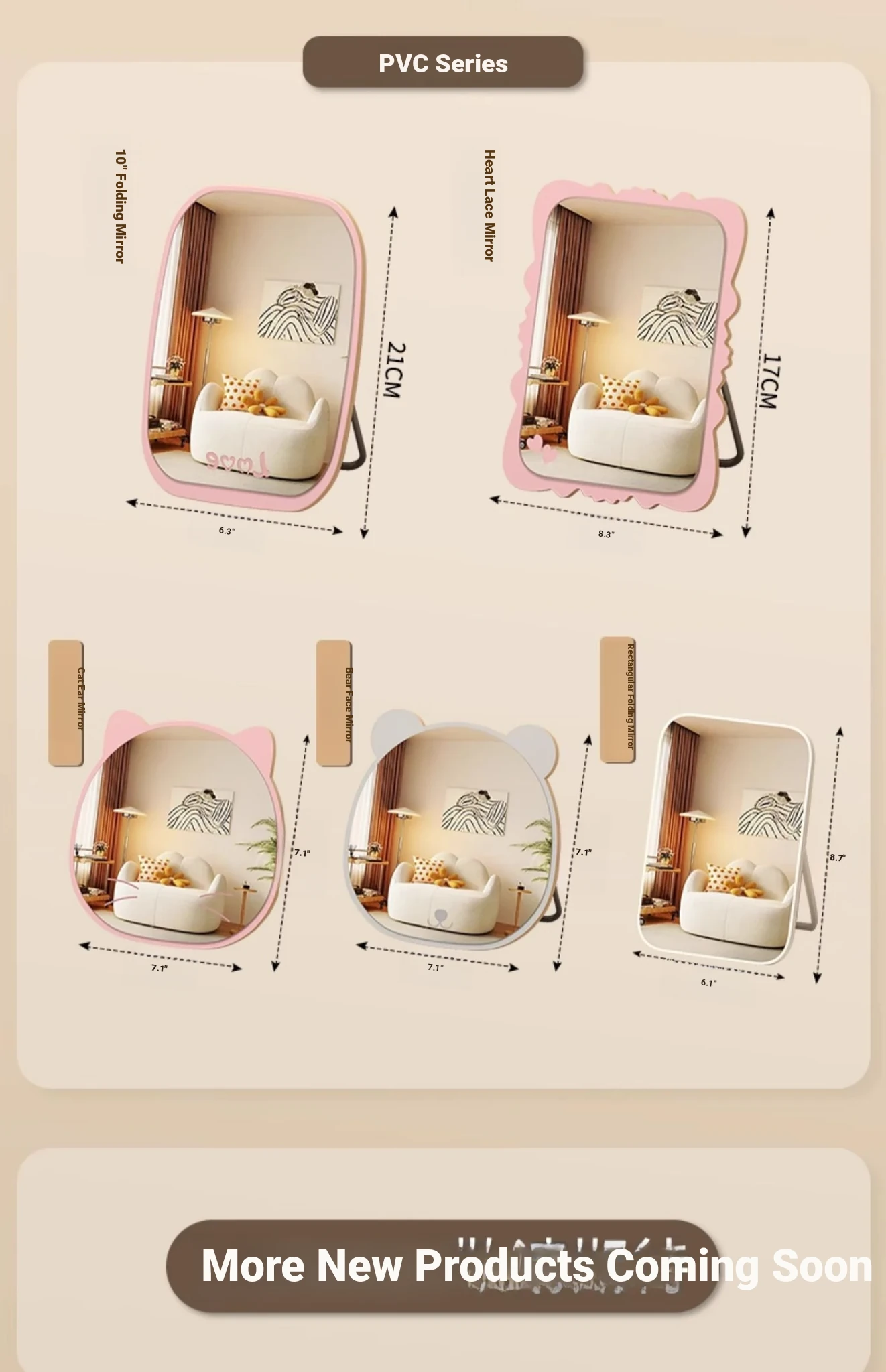 "Square" pink PVC mirror 8.66in*6.10in(PVC material)