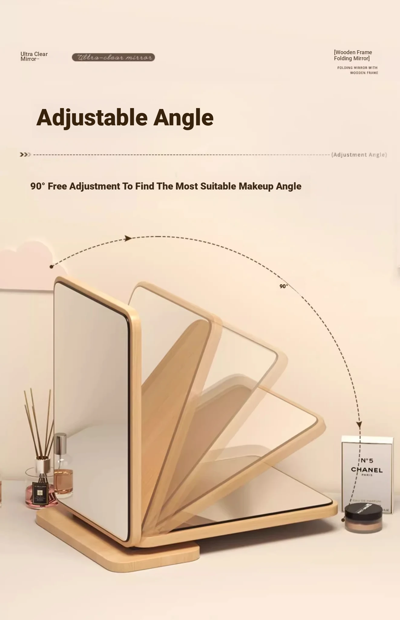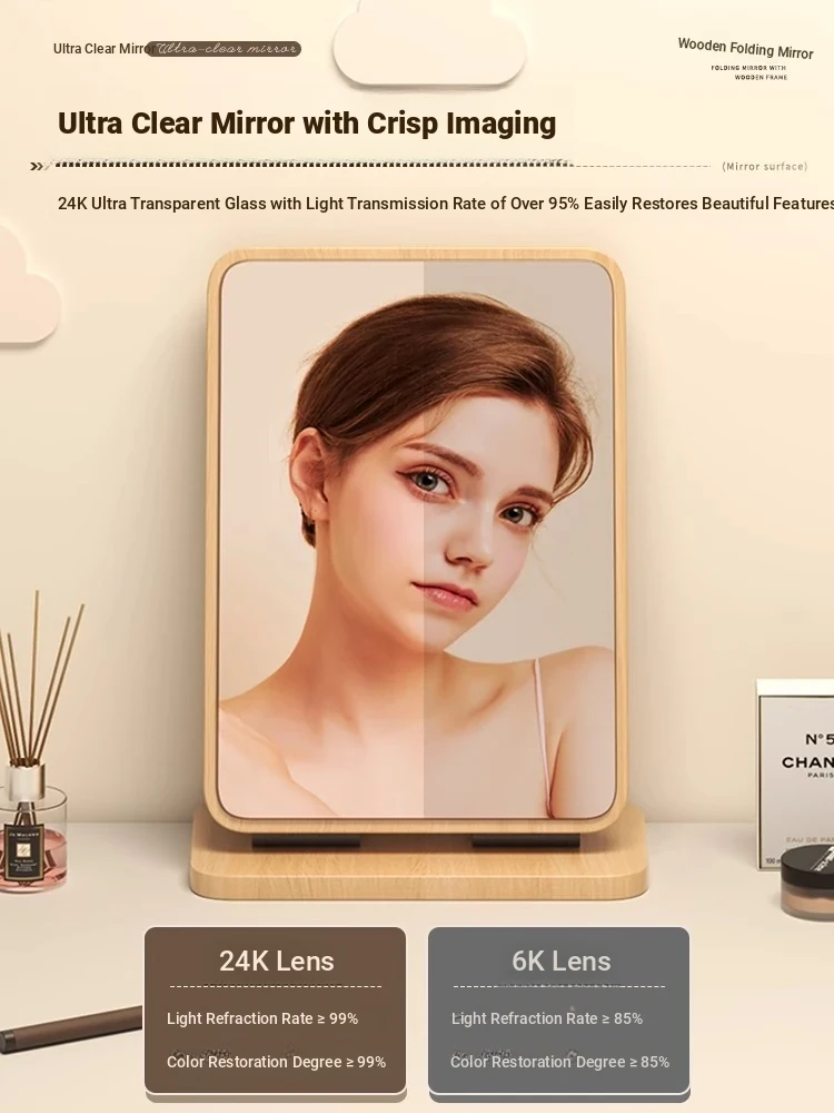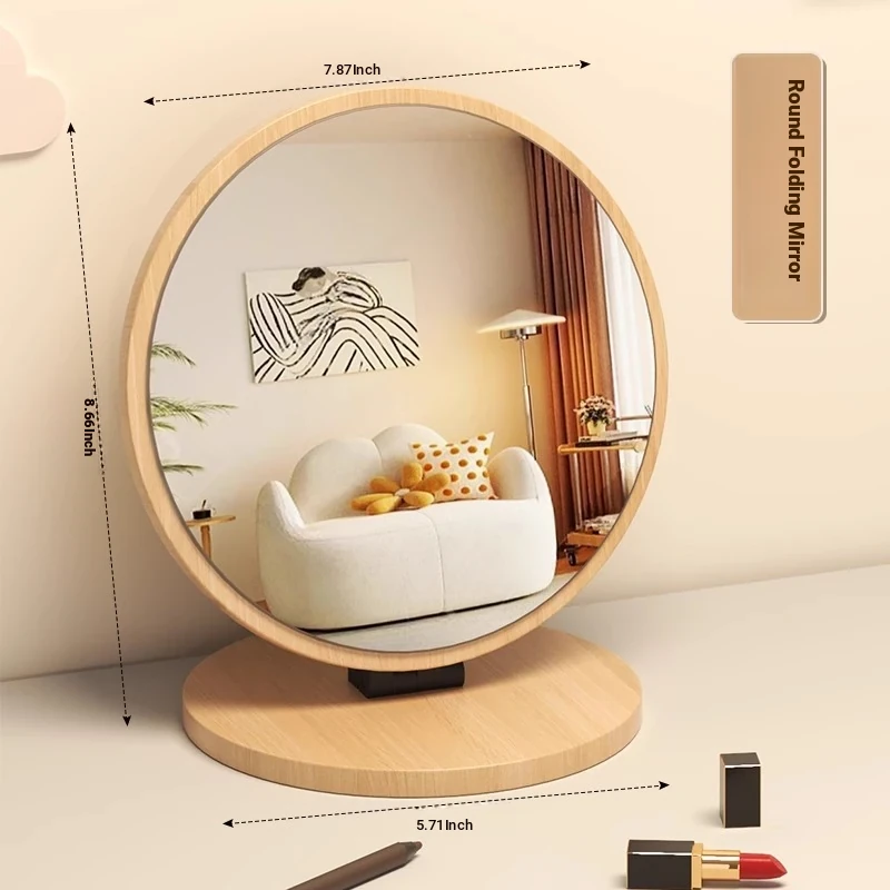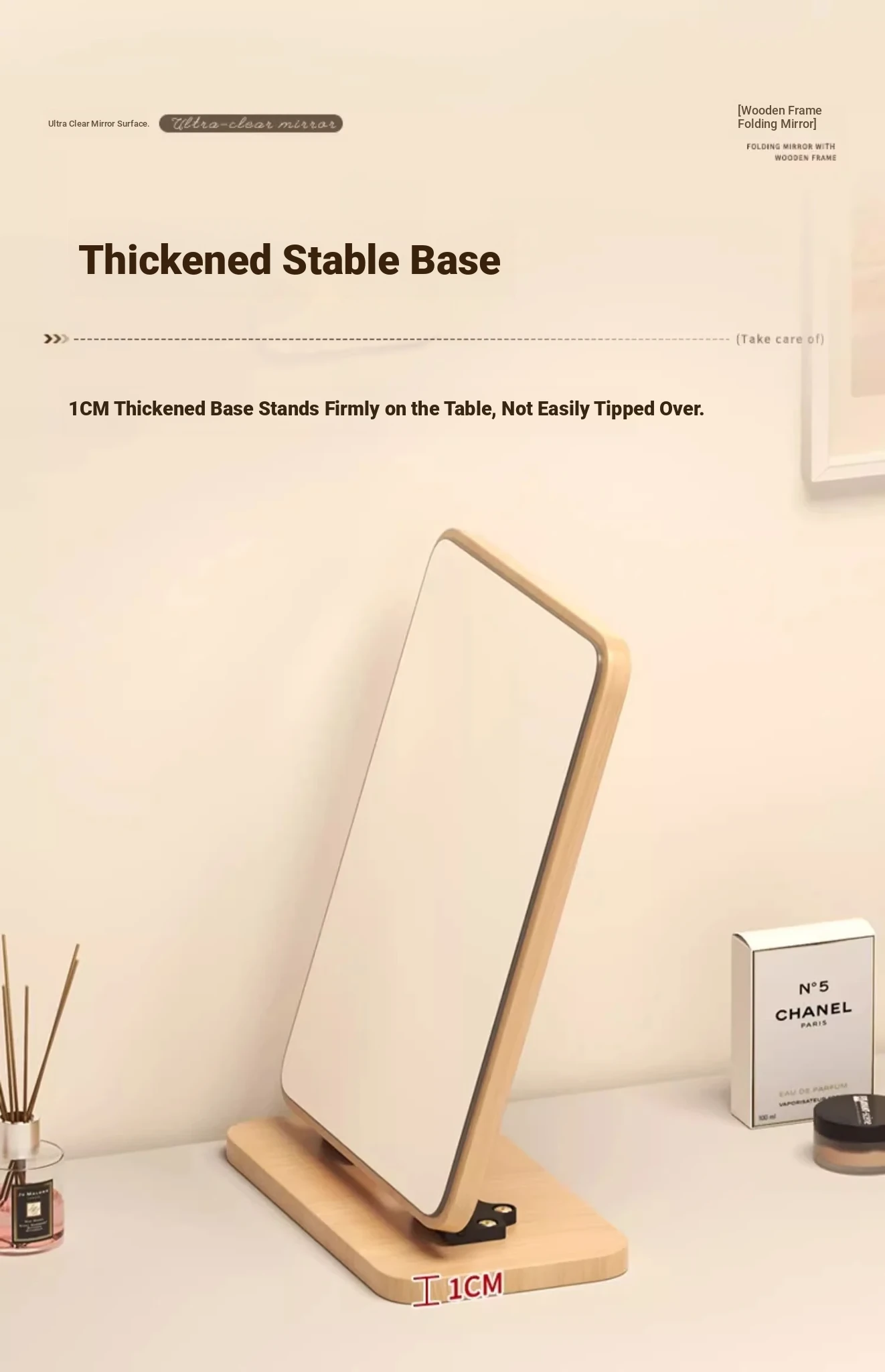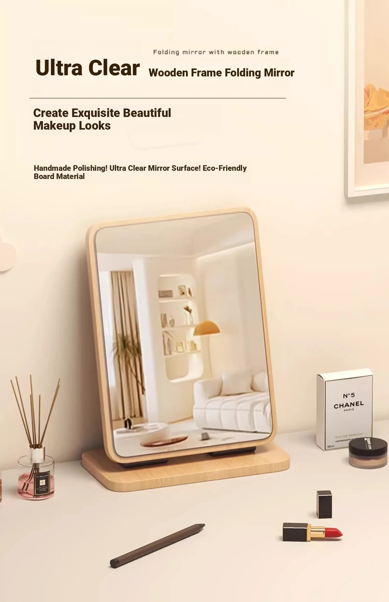 Elegant Wooden Makeup Mirror - Stylish Desktop Vanity Mirror for Home Use, Foldable and Perfect for Dorms, Ideal for Your Grooming Needs!
