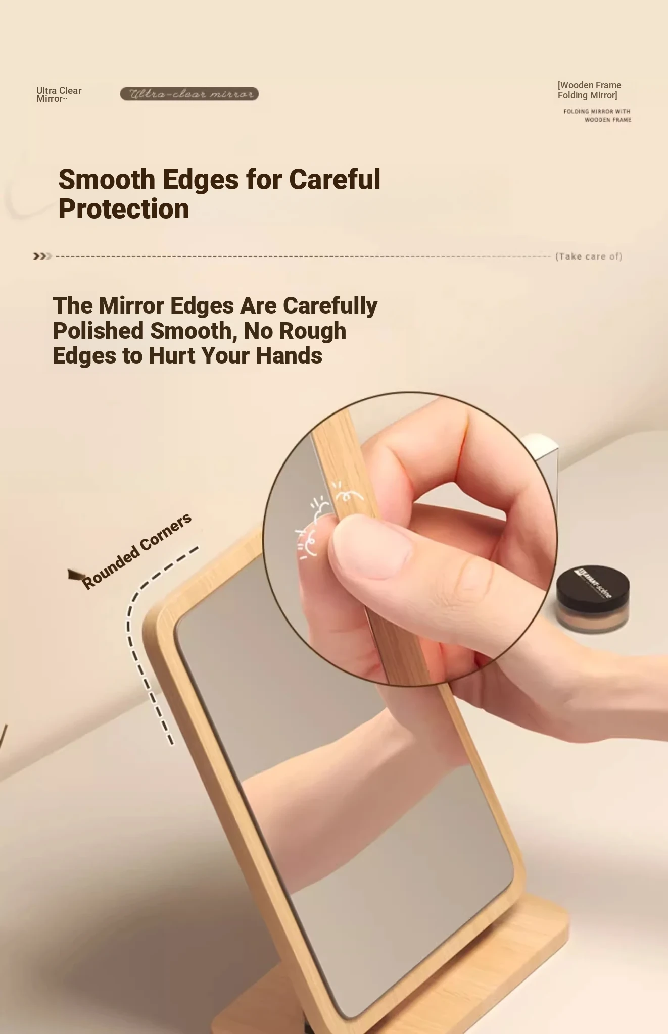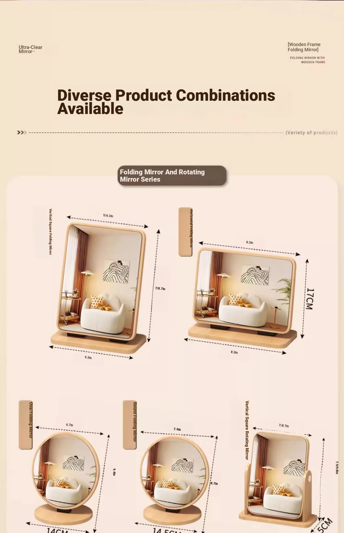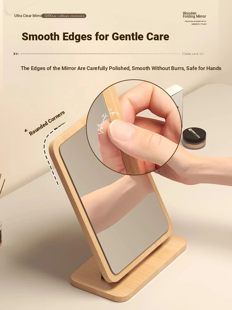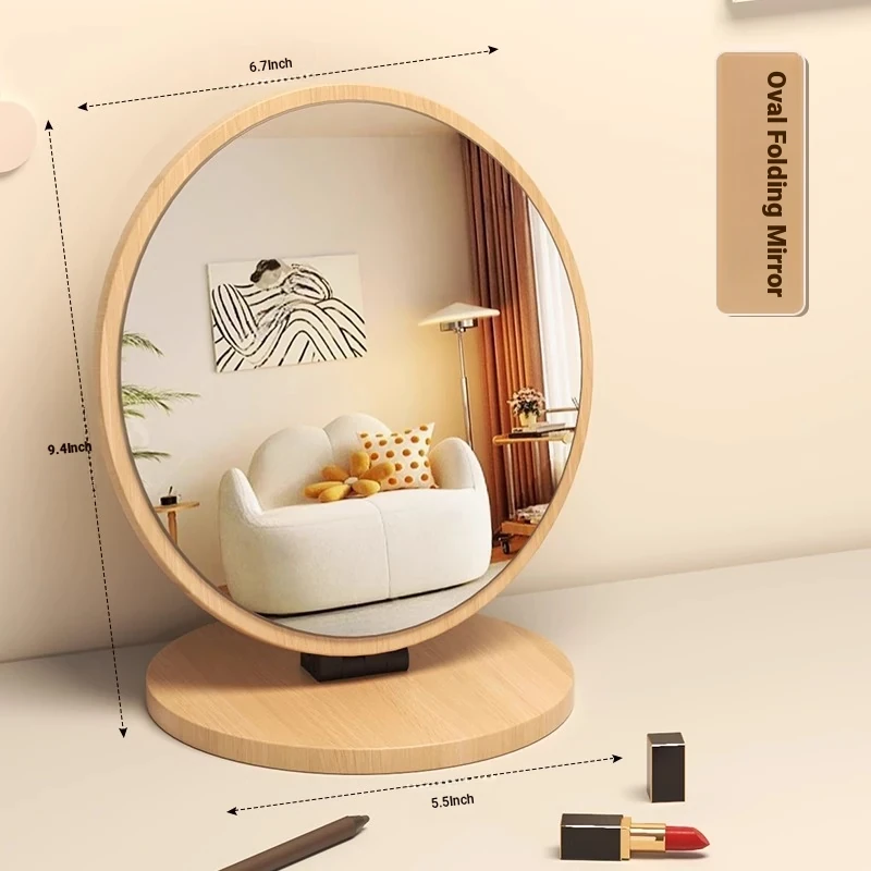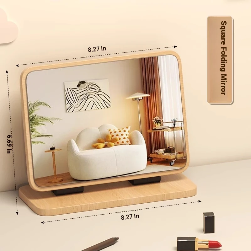 Elegant Wooden Makeup Mirror - Stylish Desktop Vanity Mirror for Home Use, Foldable and Perfect for Dorms, Ideal for Your Grooming Needs!