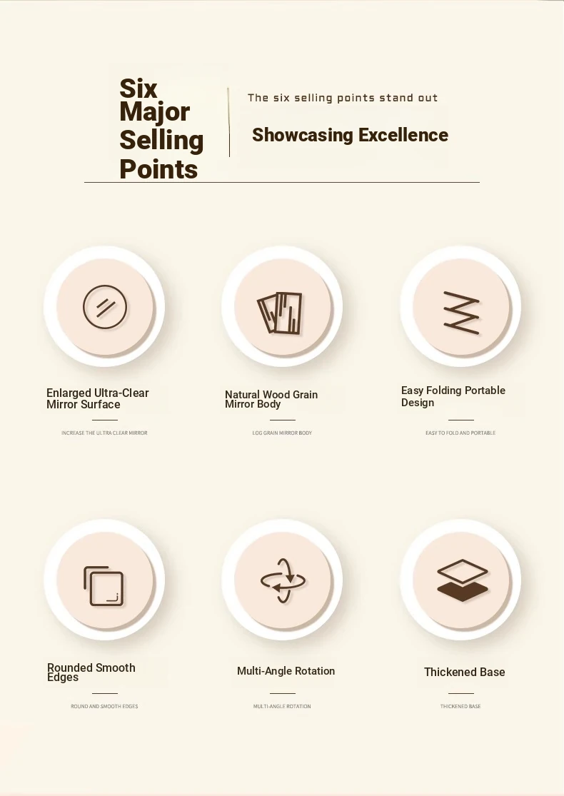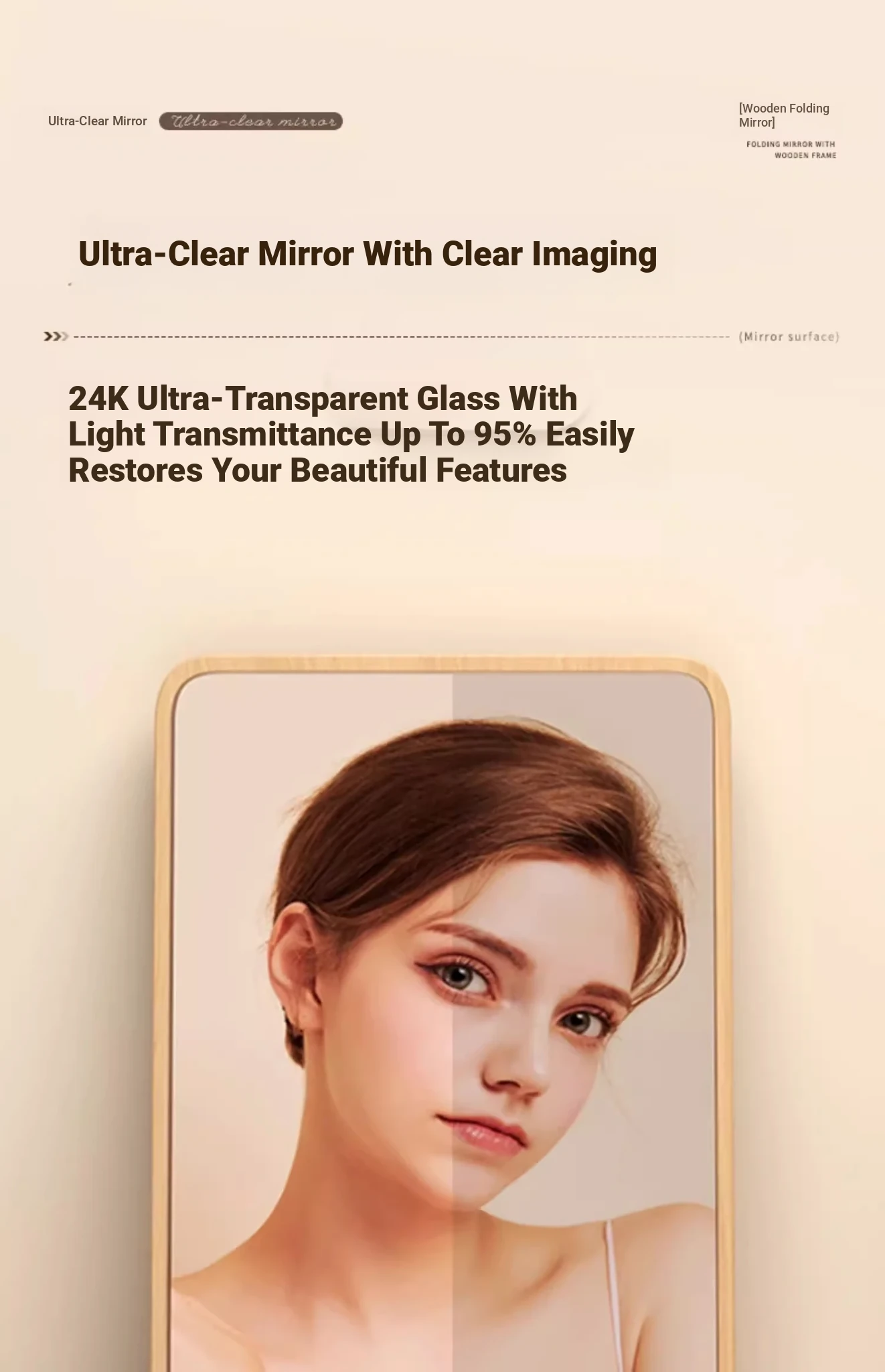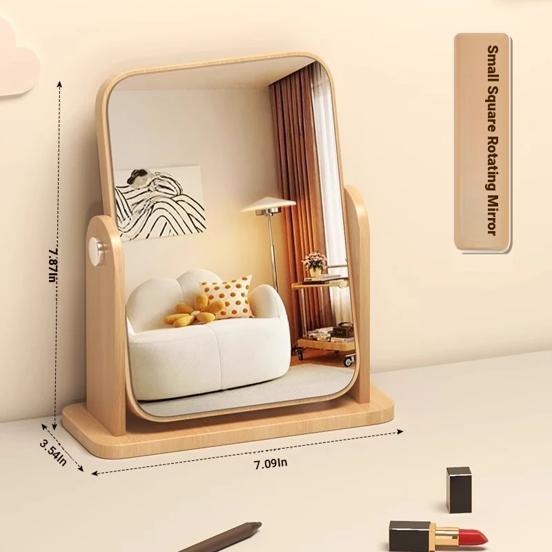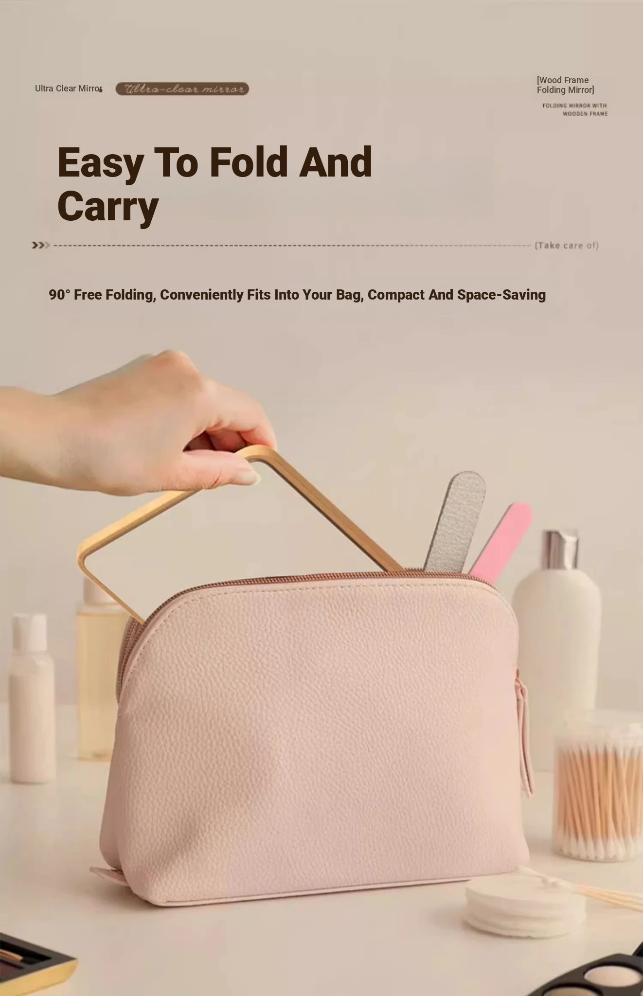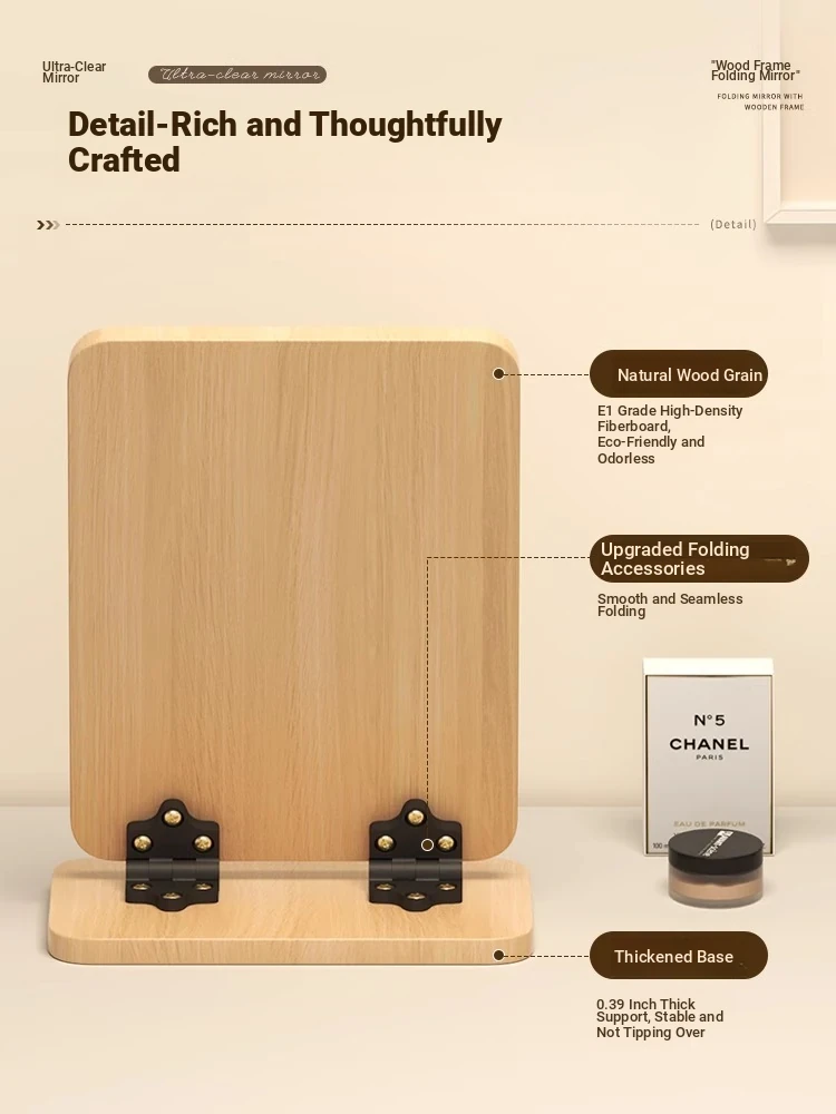 Elegant Wooden Makeup Mirror - Stylish Desktop Vanity Mirror for Home Use, Foldable and Perfect for Dorms, Ideal for Your Grooming Needs!