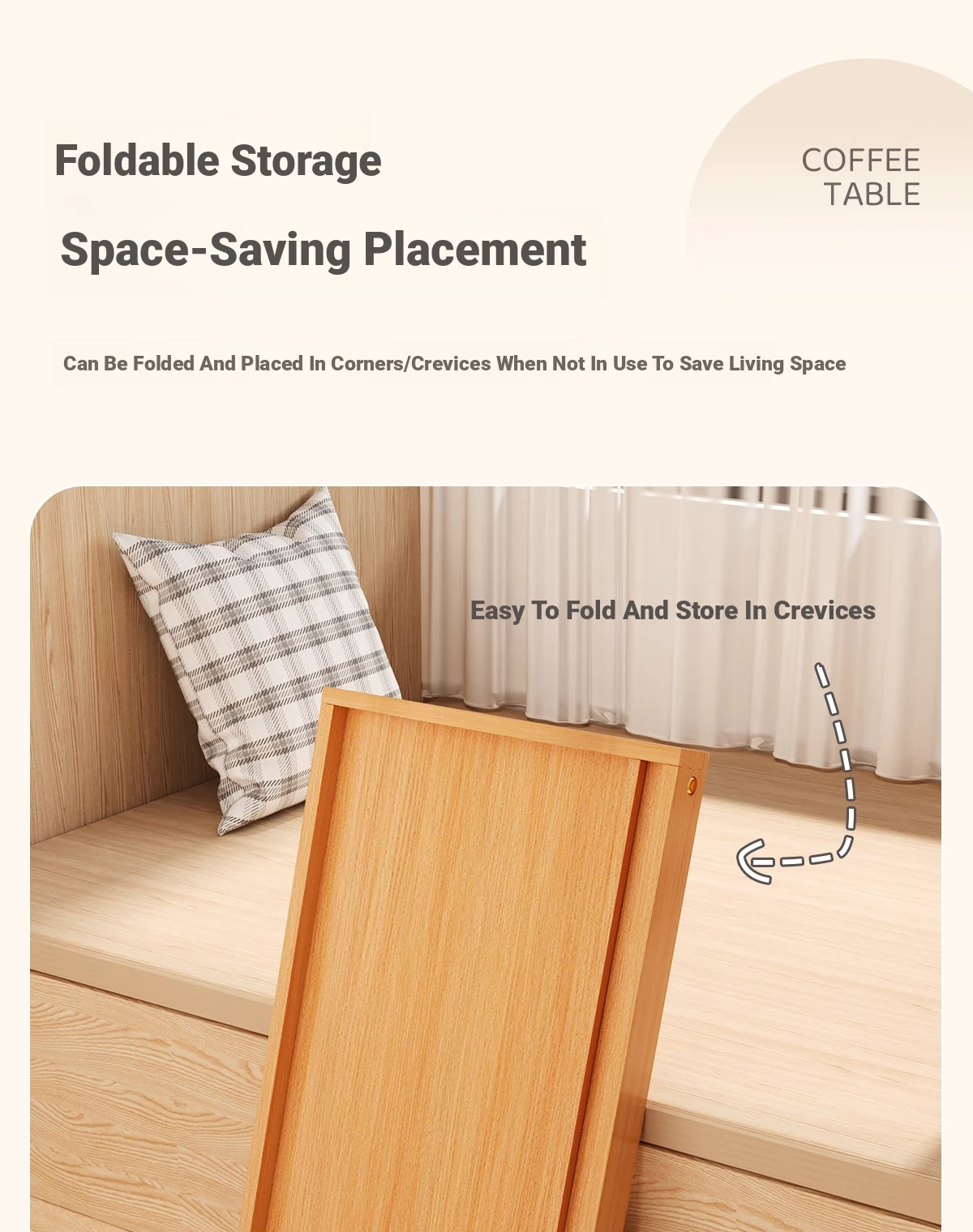 Foldable Japanese Tatami Tea Table for Bay Windows – Compact Low Coffee Table for Bedroom, Perfect for Sitting on the Floor, Ideal for Cozy Spaces and Window Sills.