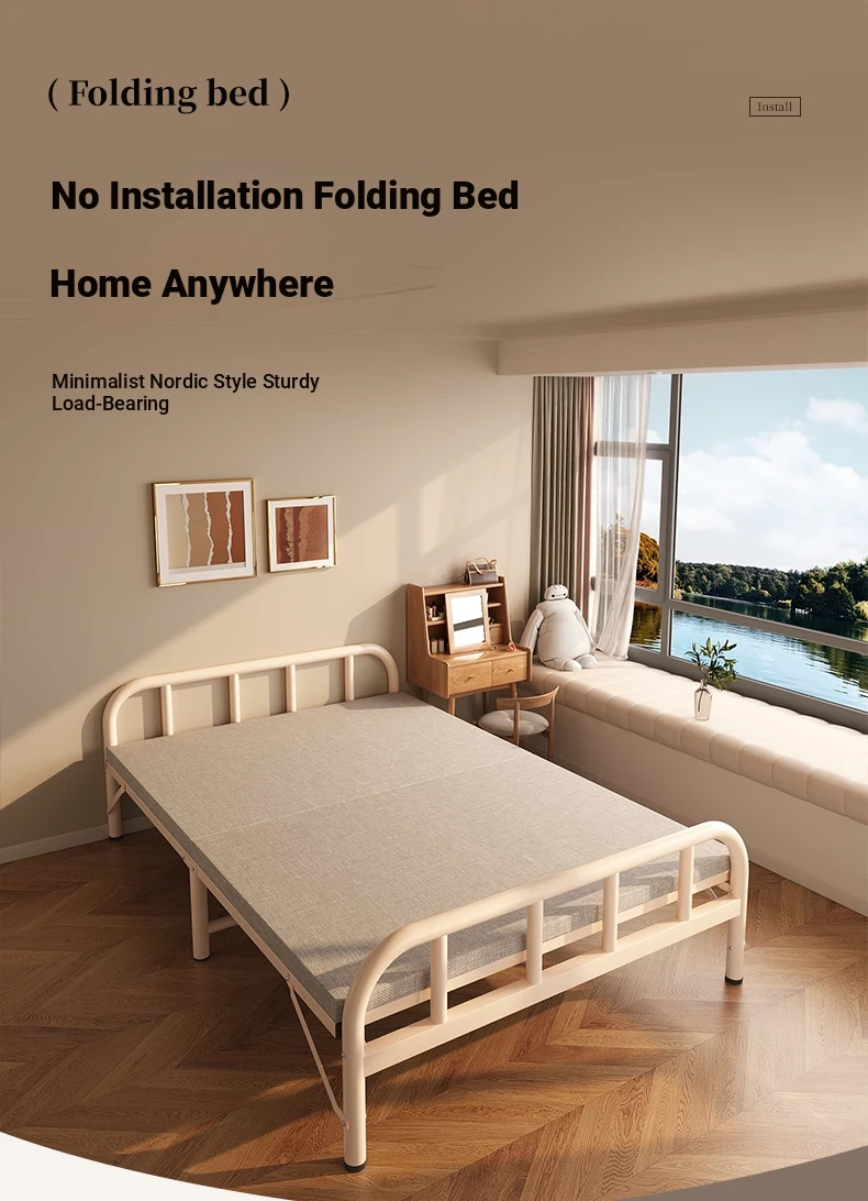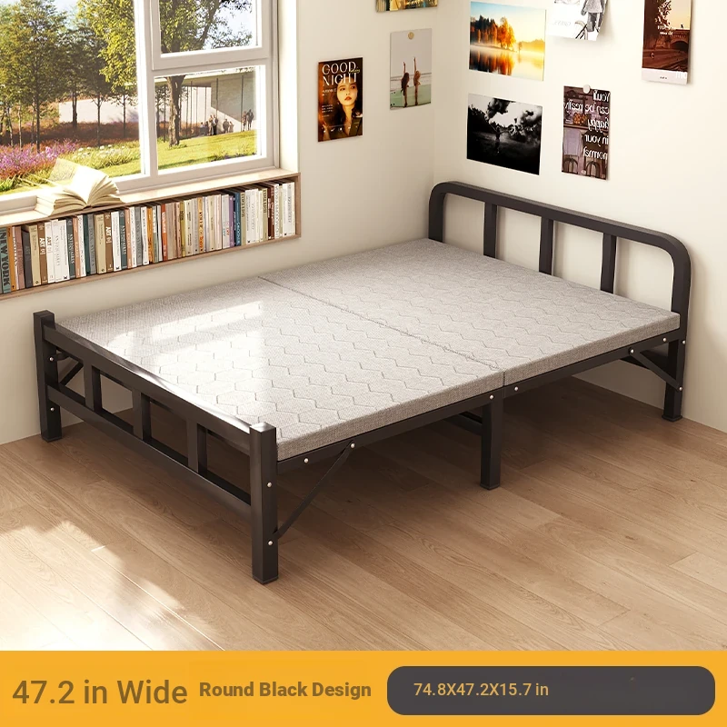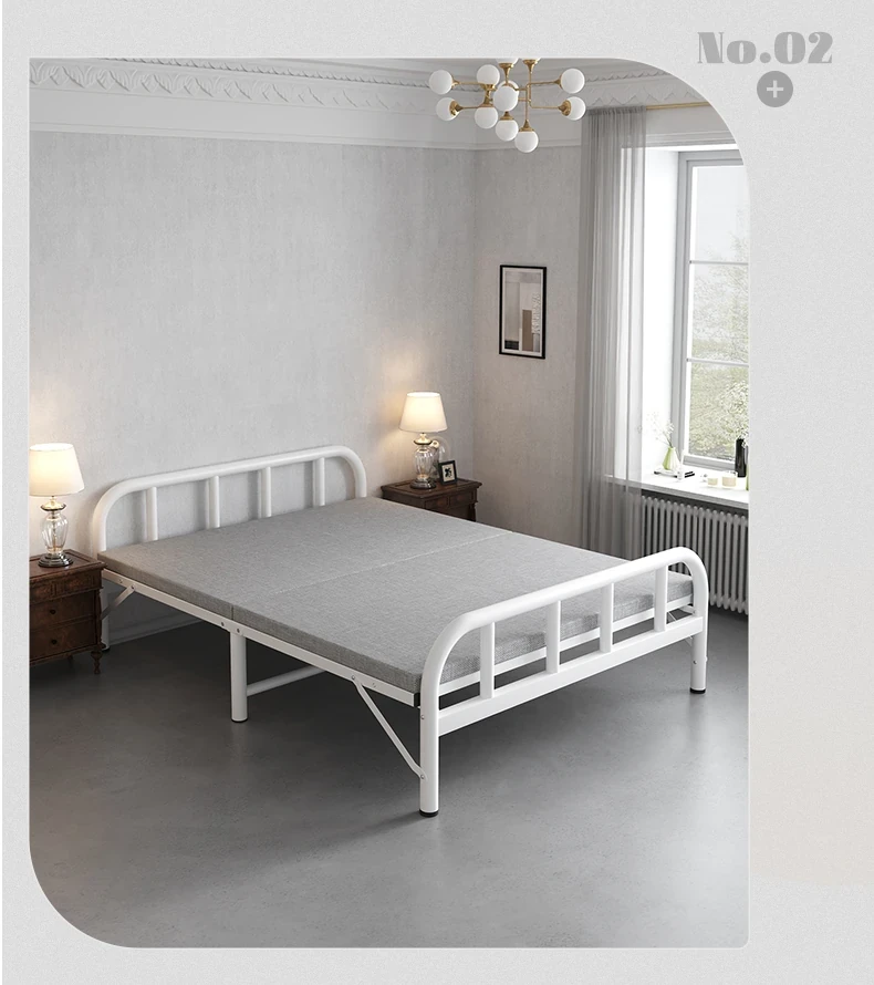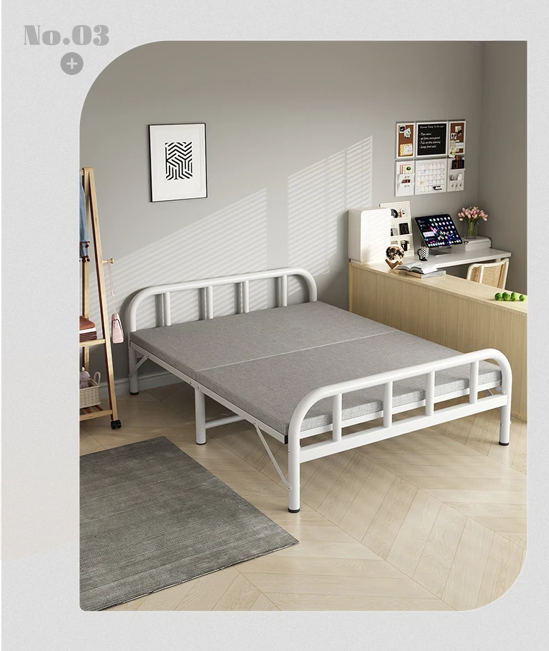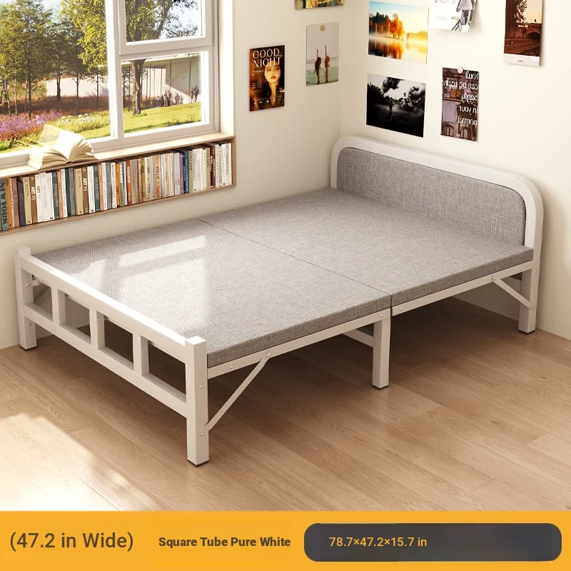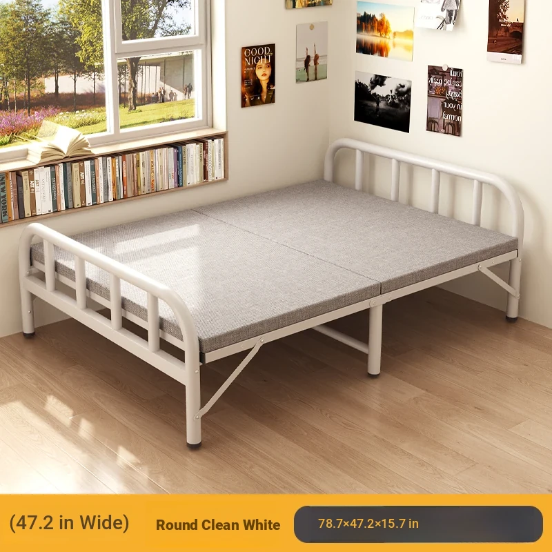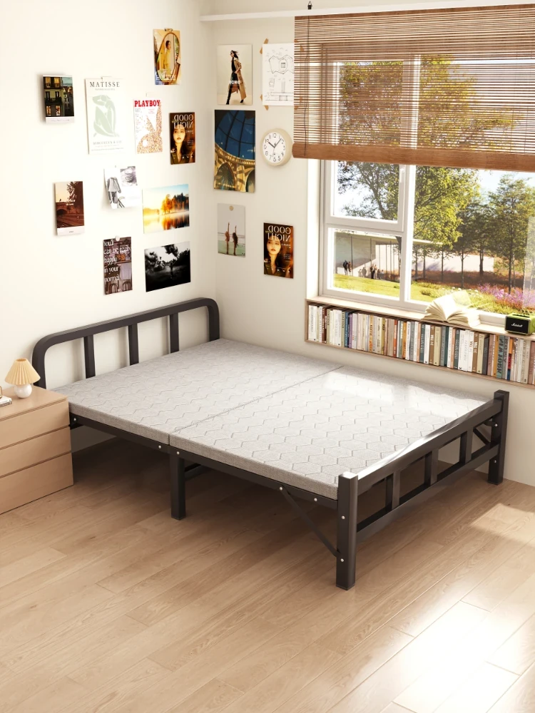 Foldable Single Bed for Home Use - 1.5m Double Bed & 1.2m Simple Dormitory Bed, New Iron Frame Design Ideal for Naps and Small Spaces