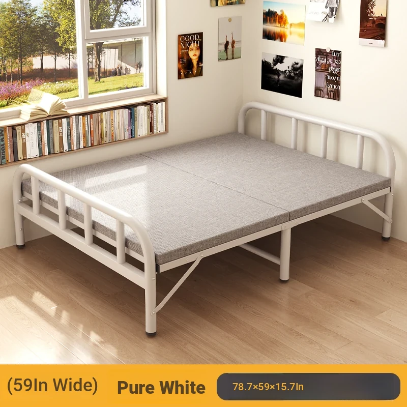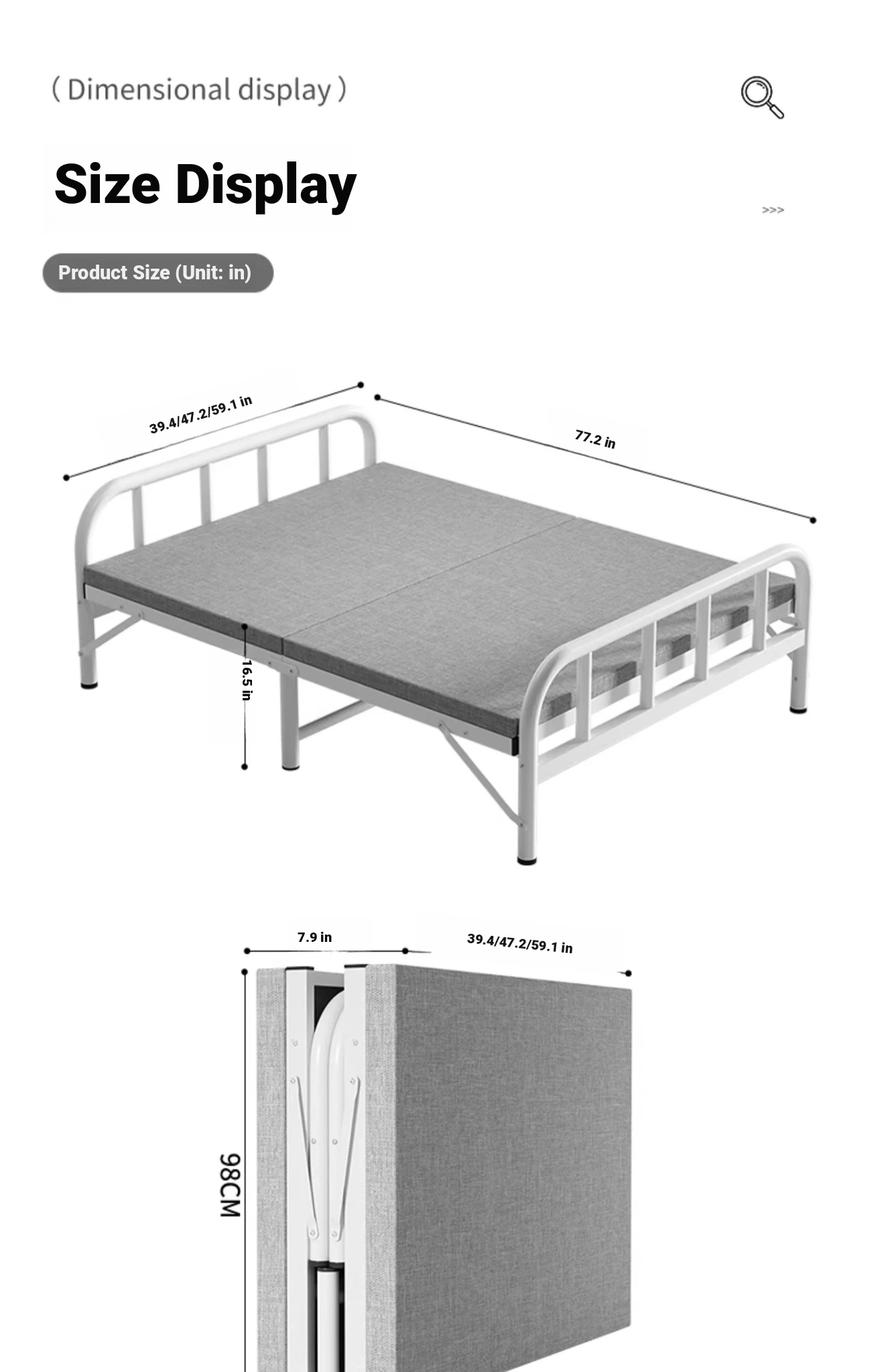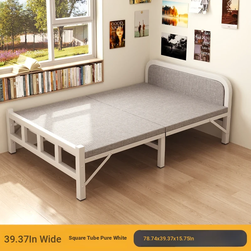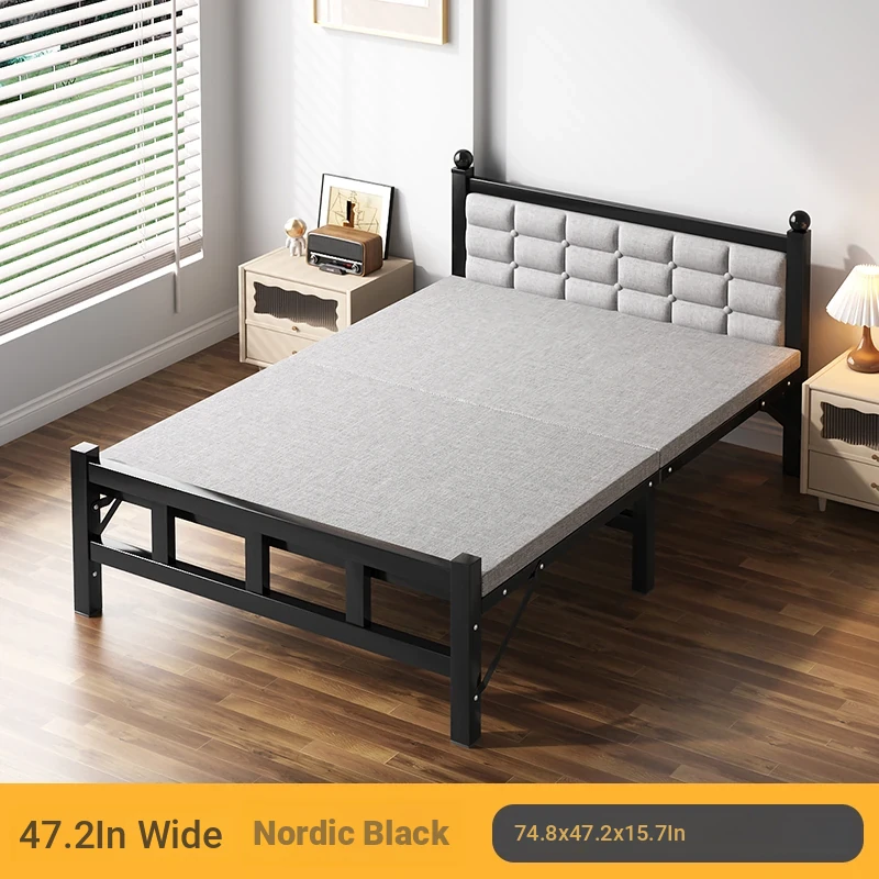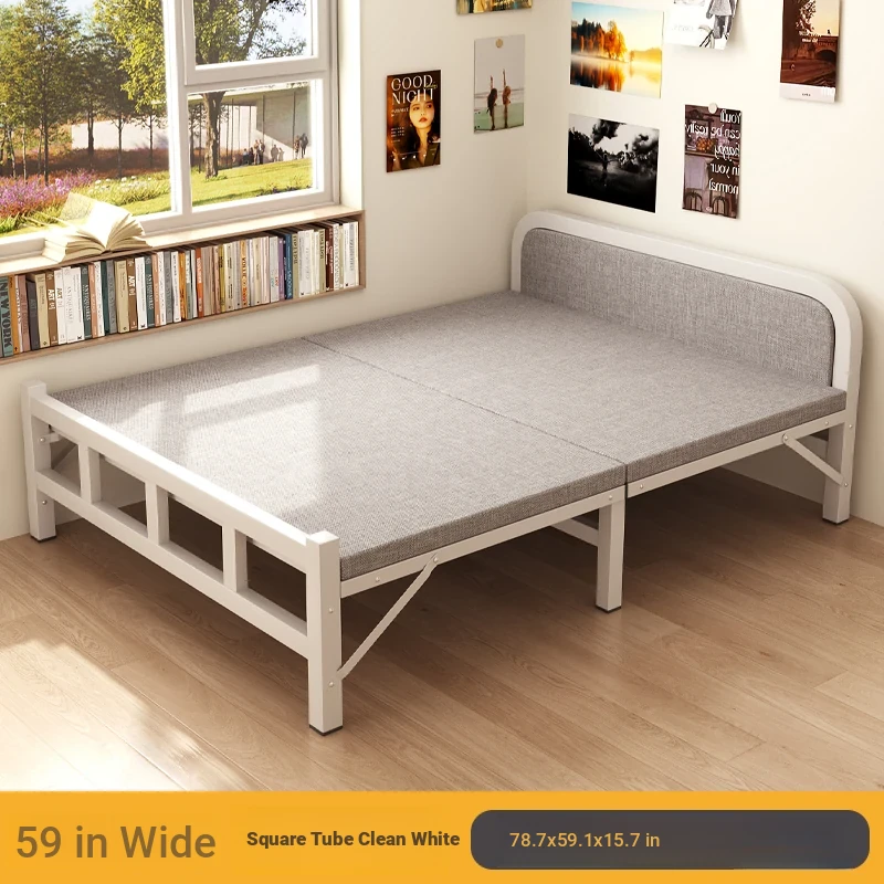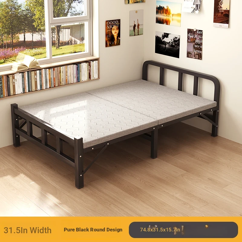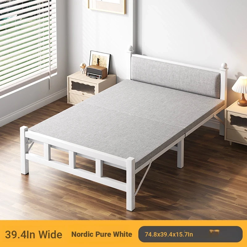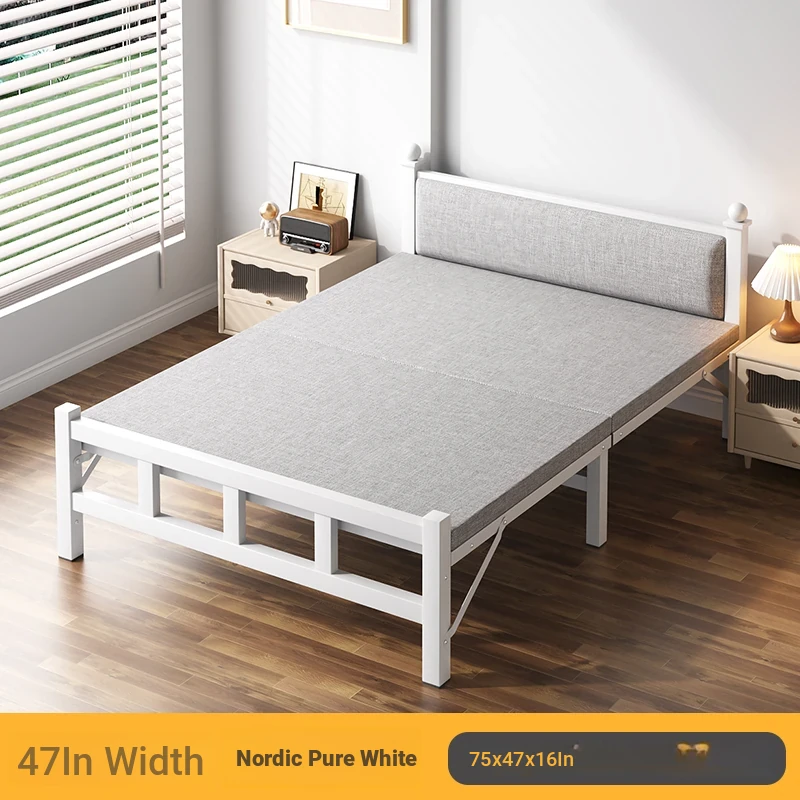 Foldable Single Bed for Home Use - 1.5m Double Bed & 1.2m Simple Dormitory Bed, New Iron Frame Design Ideal for Naps and Small Spaces