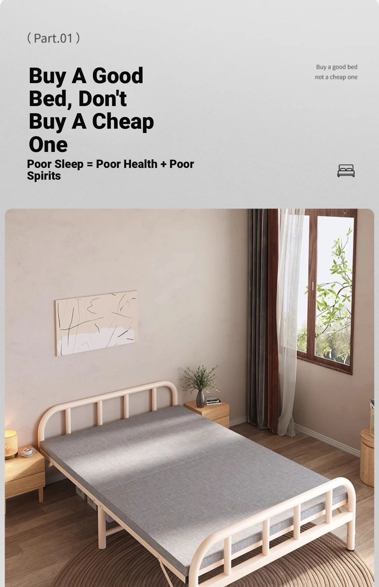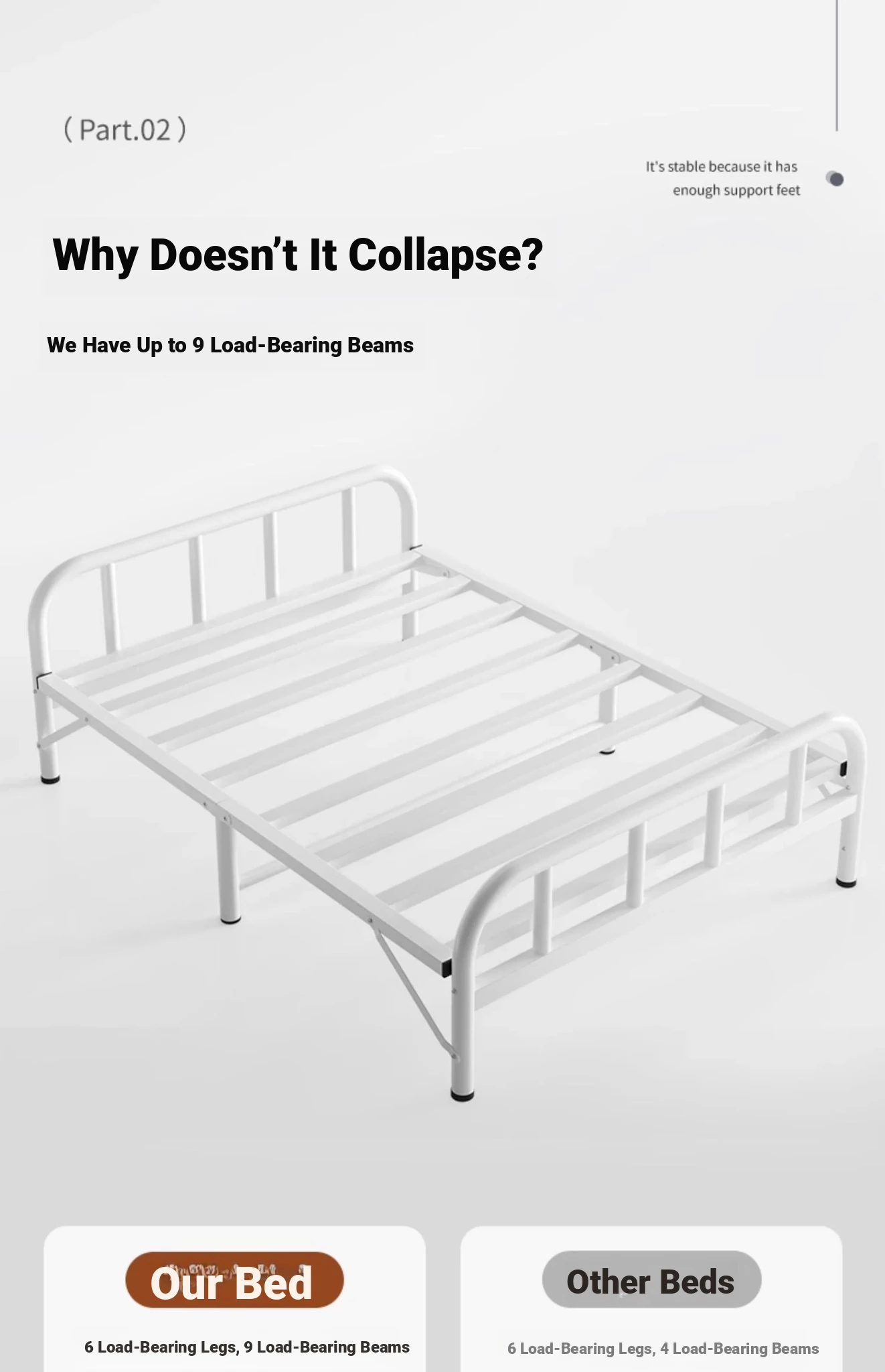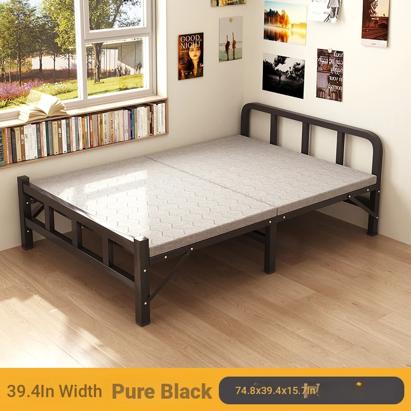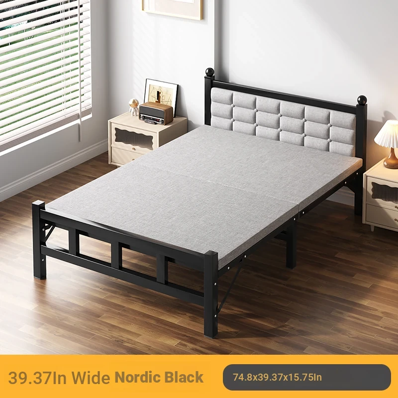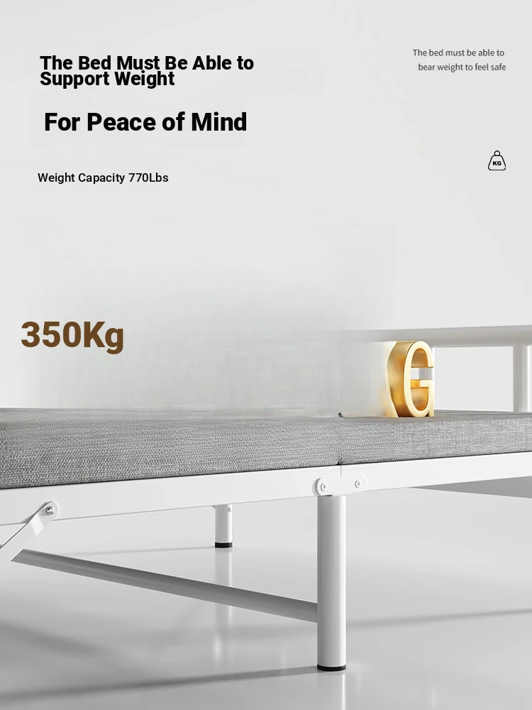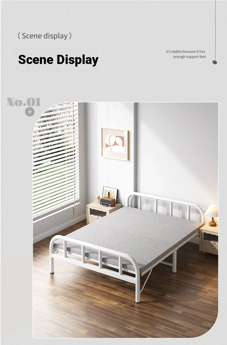 Foldable Single Bed for Home Use - 1.5m Double Bed & 1.2m Simple Dormitory Bed, New Iron Frame Design Ideal for Naps and Small Spaces