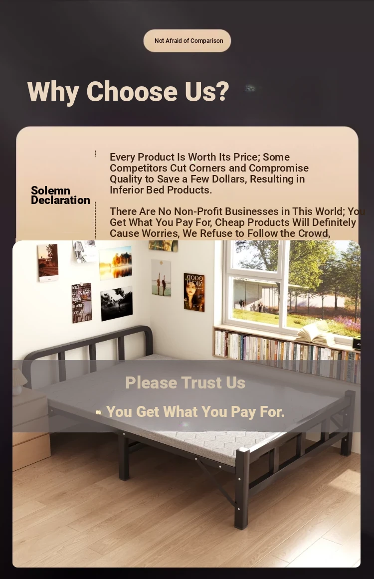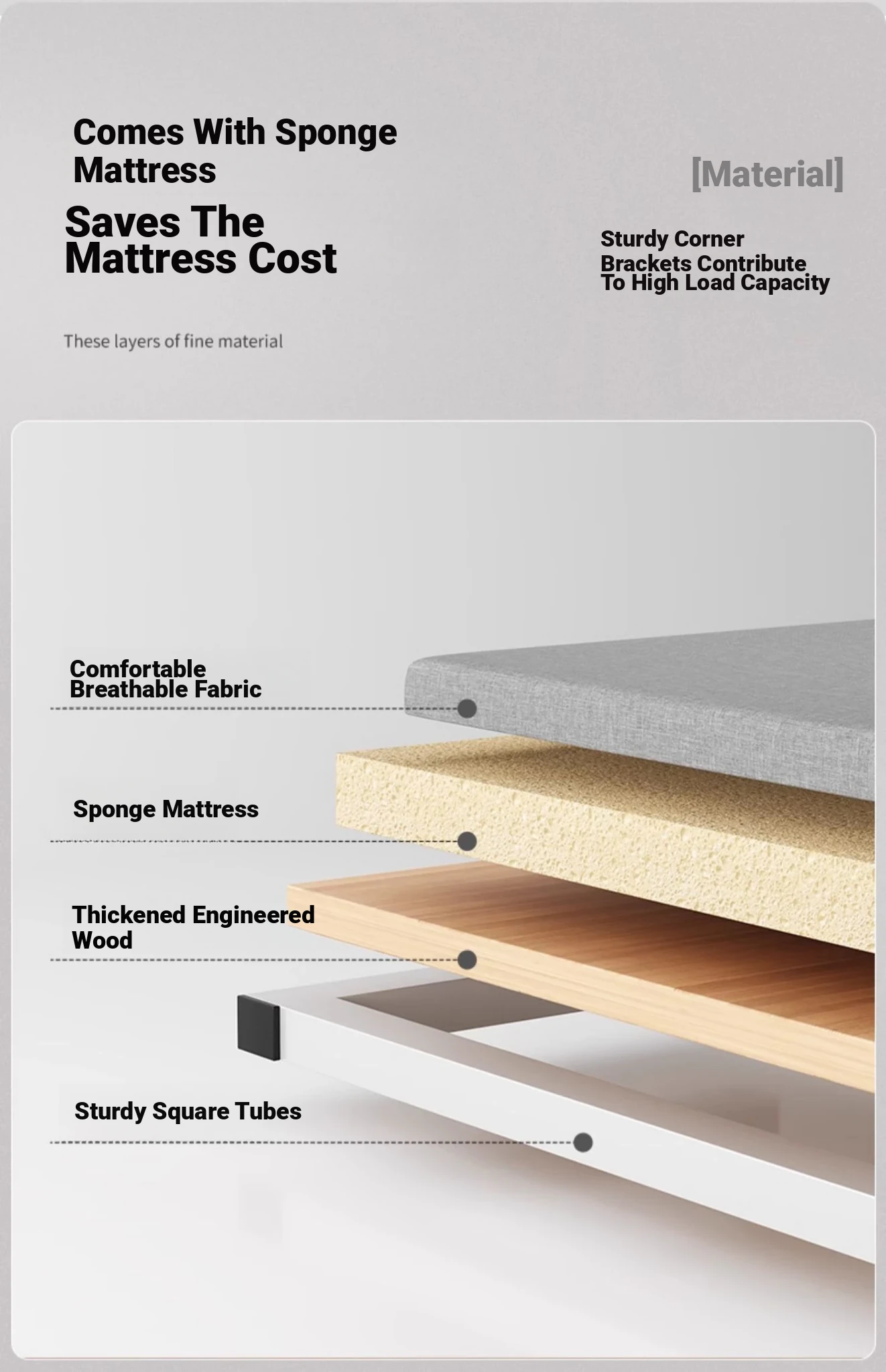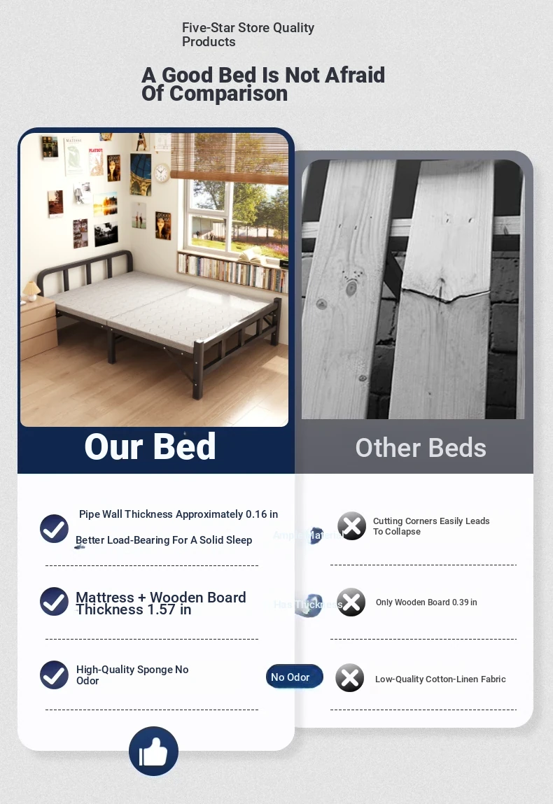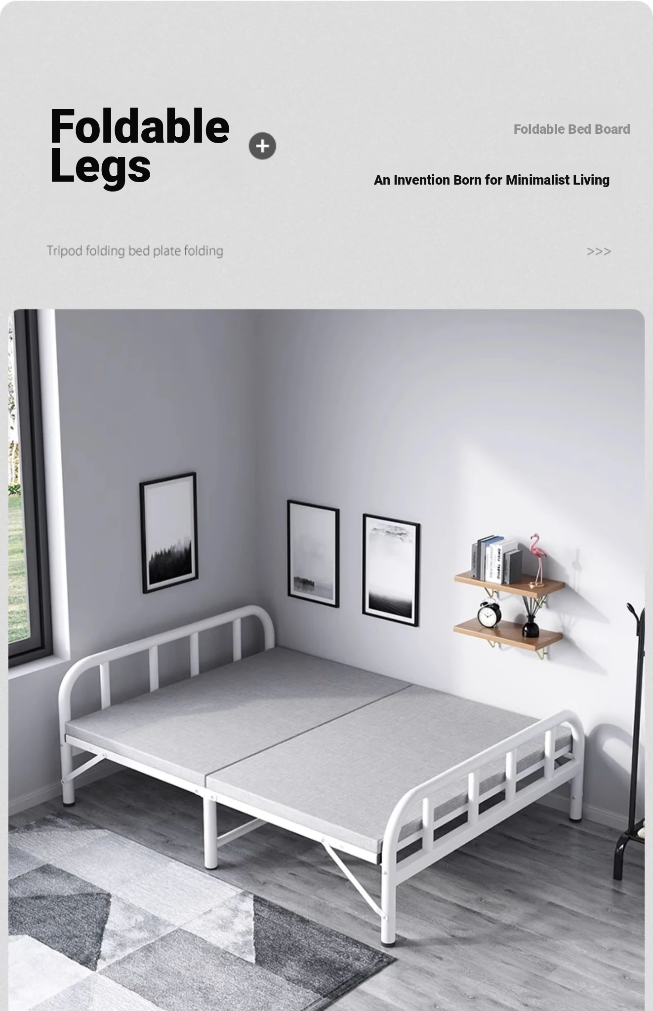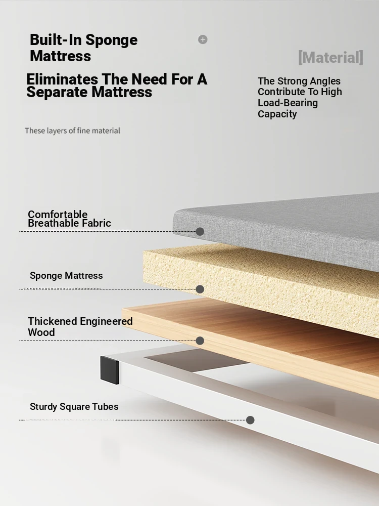 Foldable Single Bed for Home Use - 1.5m Double Bed & 1.2m Simple Dormitory Bed, New Iron Frame Design Ideal for Naps and Small Spaces