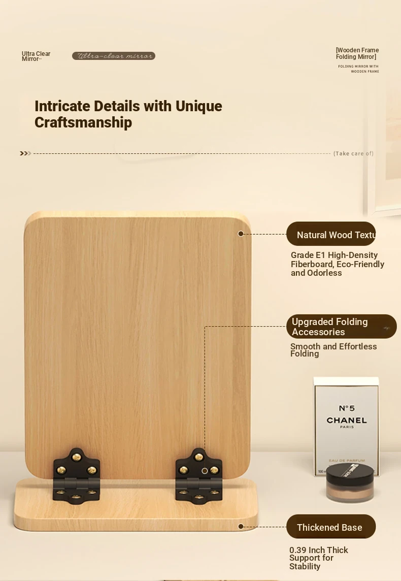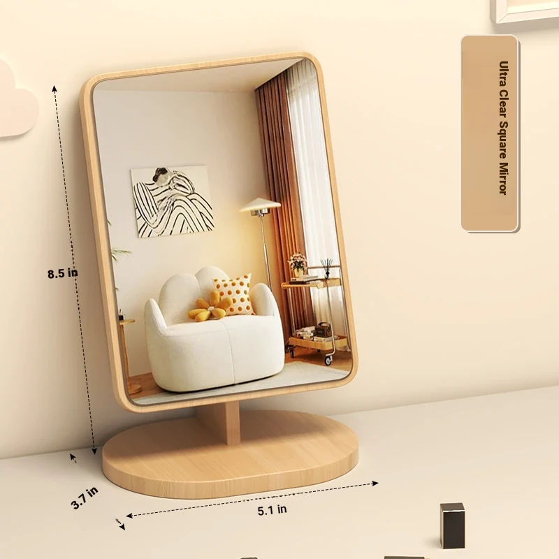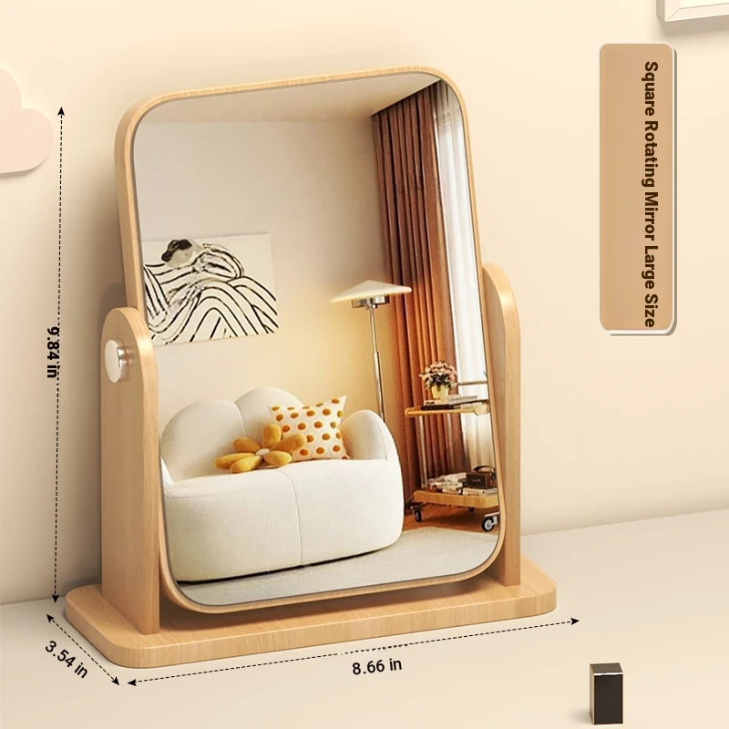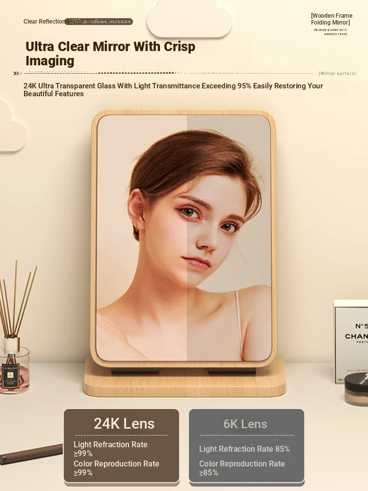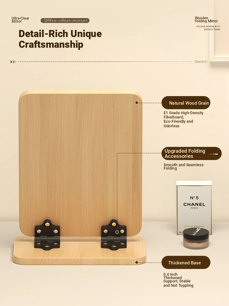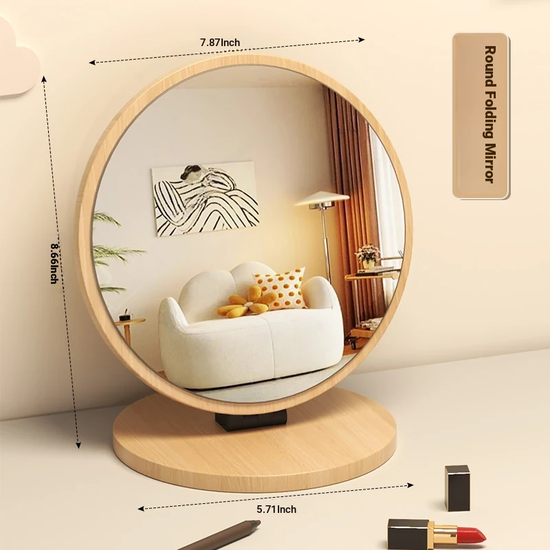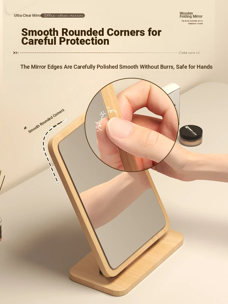Folding Wooden Desktop Makeup Mirror - Large Cartoon Vanity Mirror for Students and Home Use, Perfect for Dorm Rooms and Personal Grooming