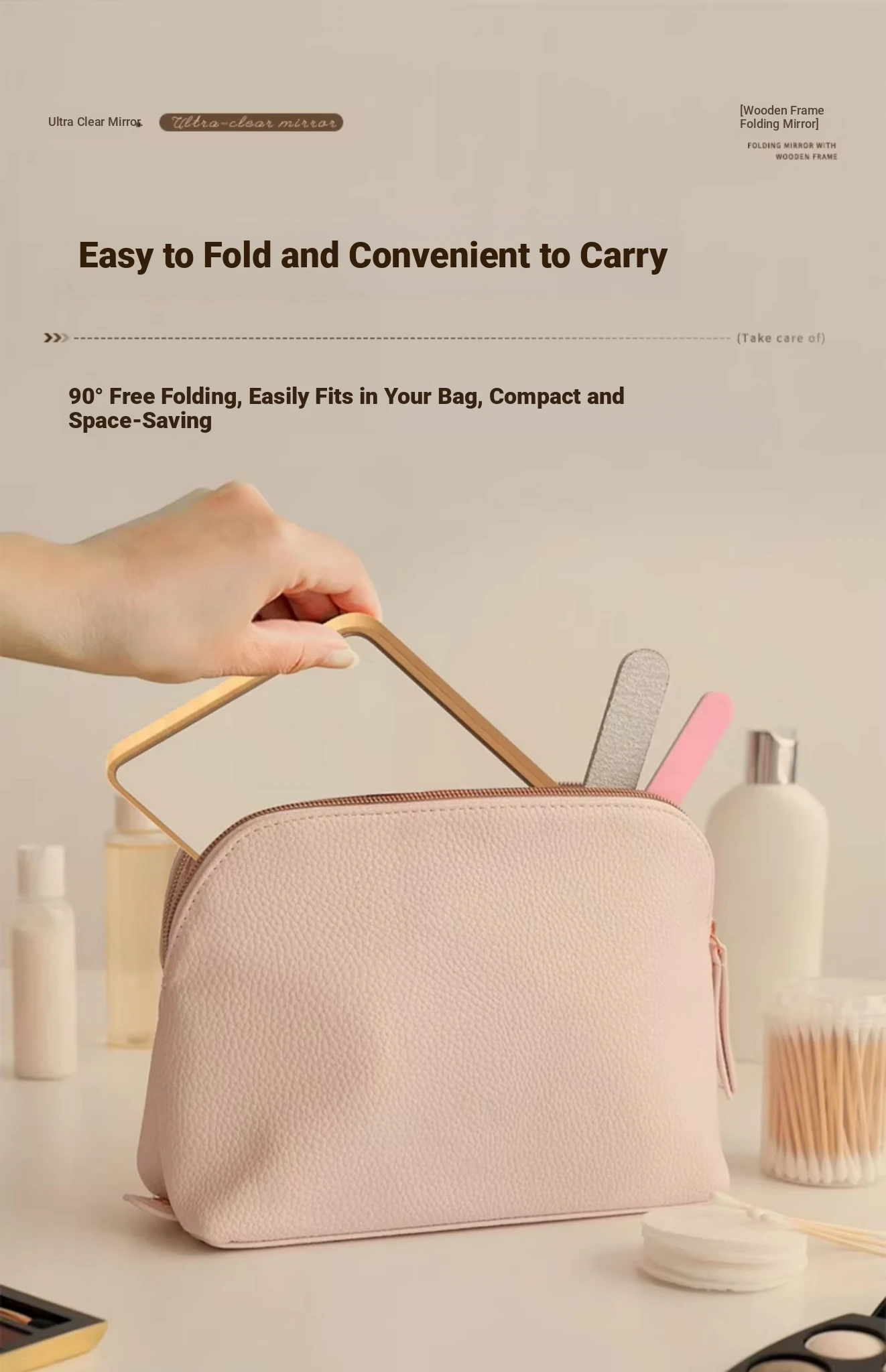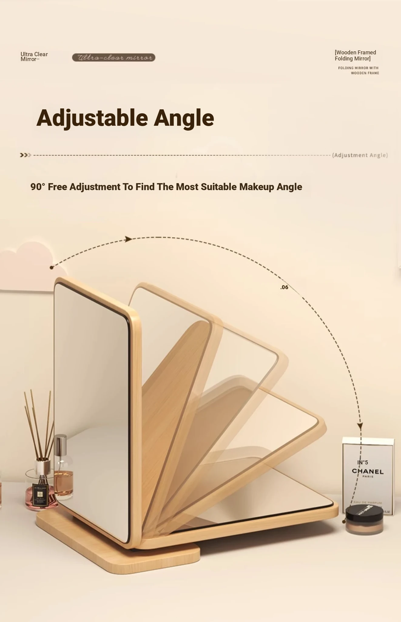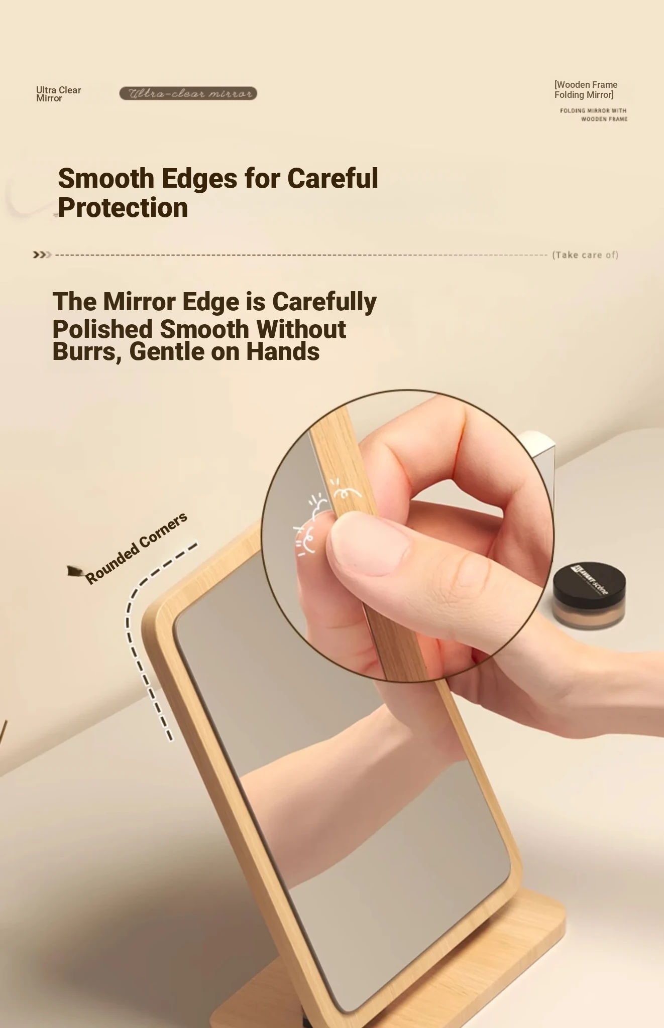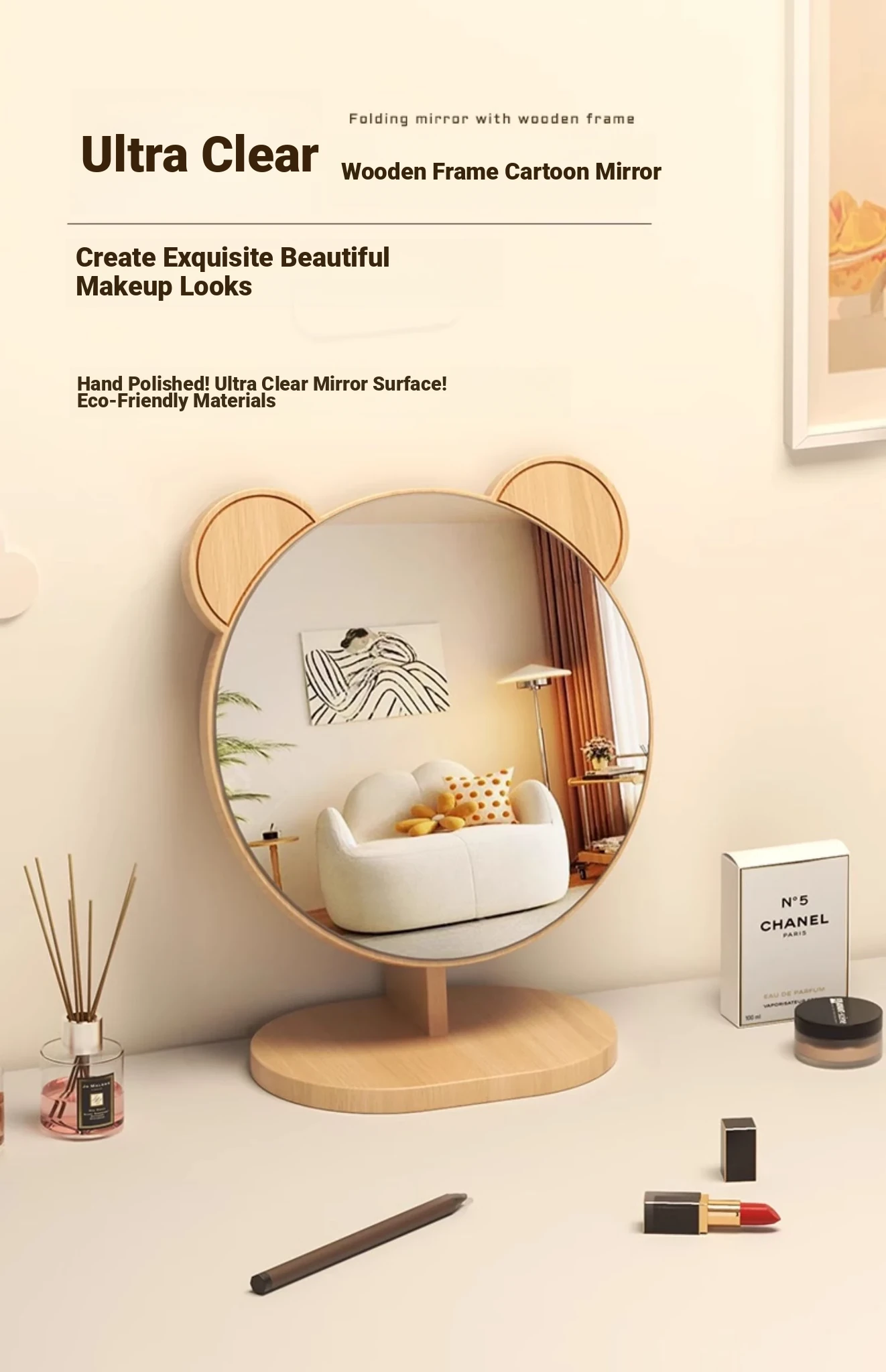 Folding Wooden Desktop Makeup Mirror - Large Cartoon Vanity Mirror for Students and Home Use, Perfect for Dorm Rooms and Personal Grooming