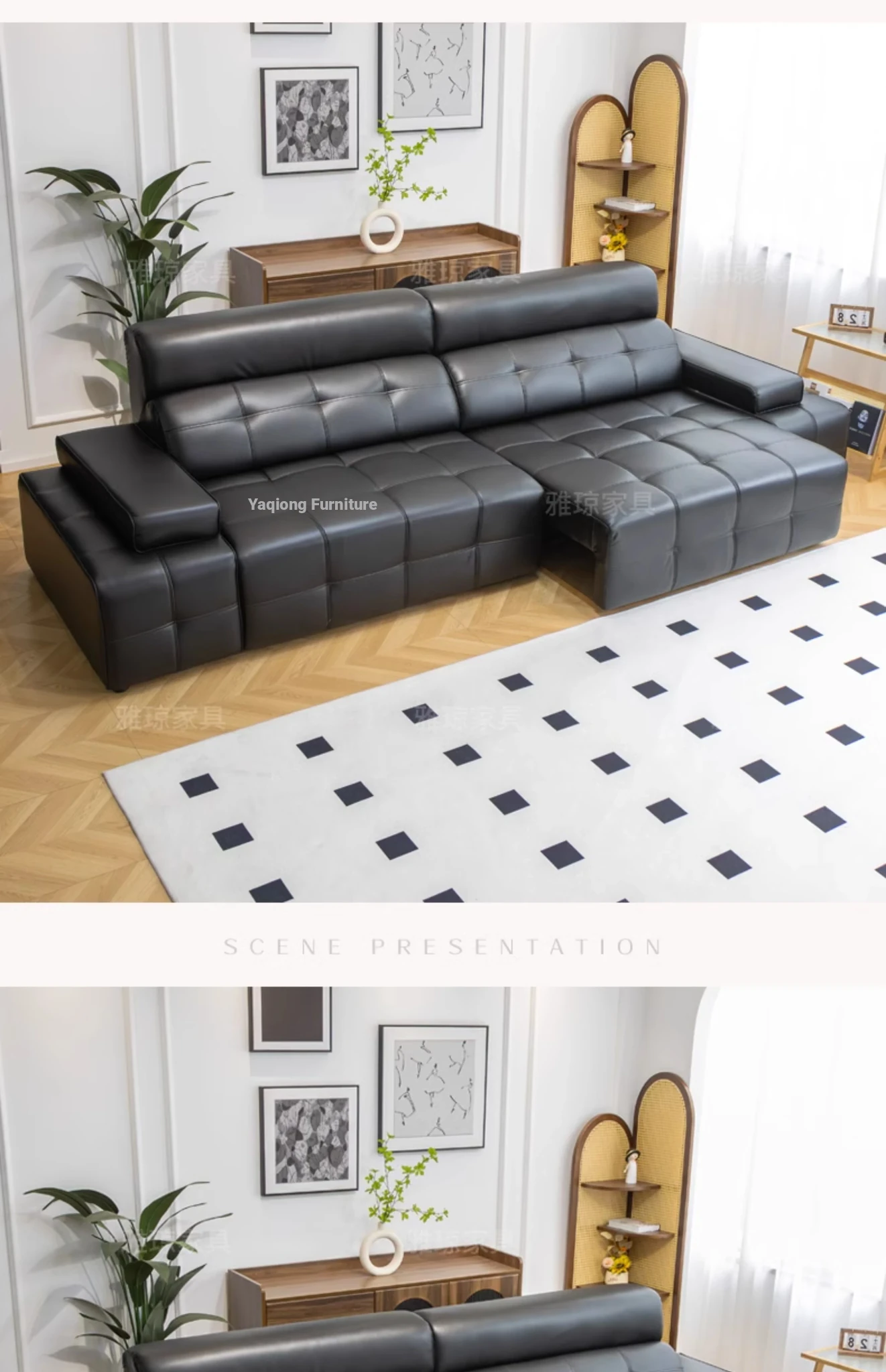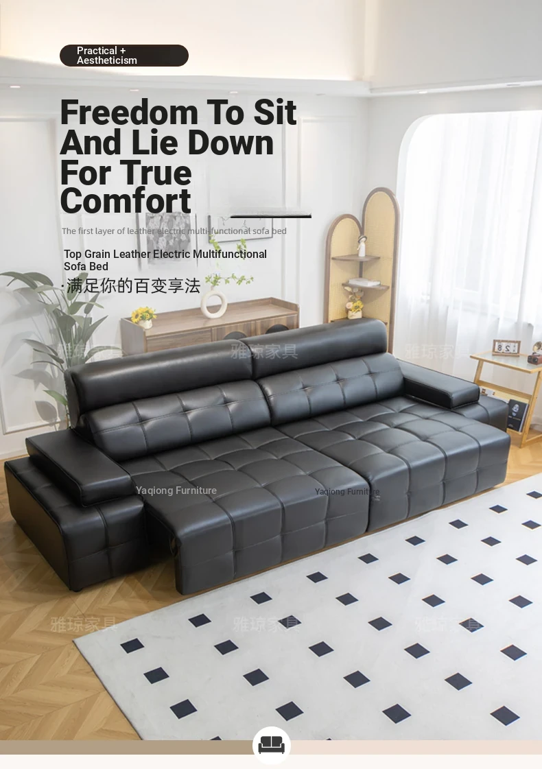 [Free Shipping to Hong Kong] 2025 New Electric Sofa Bed – Modern Minimalist Retro Design in Sleek Black – Perfect for Stylish Living Rooms!