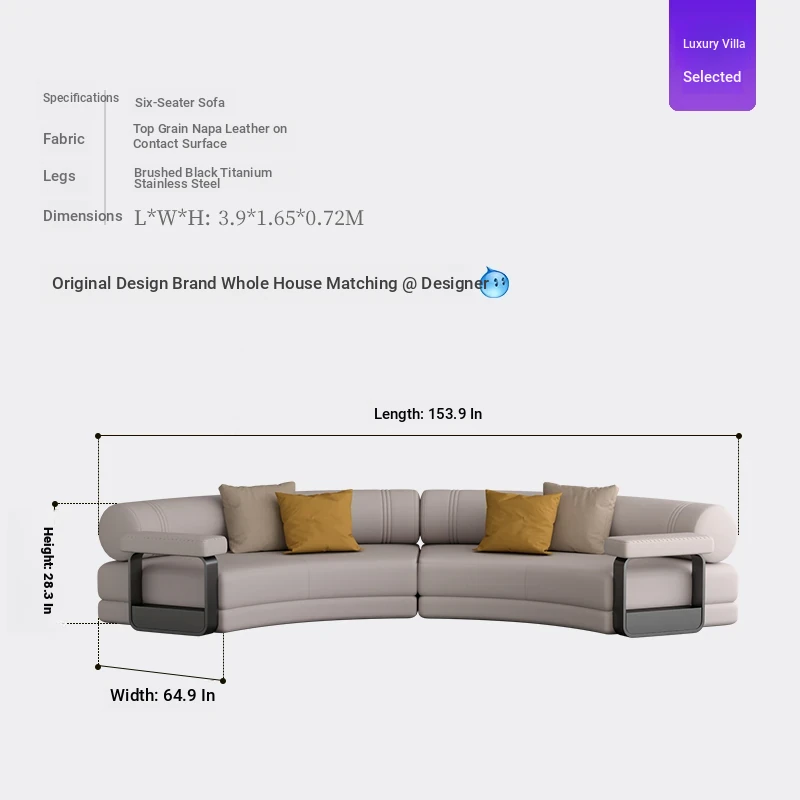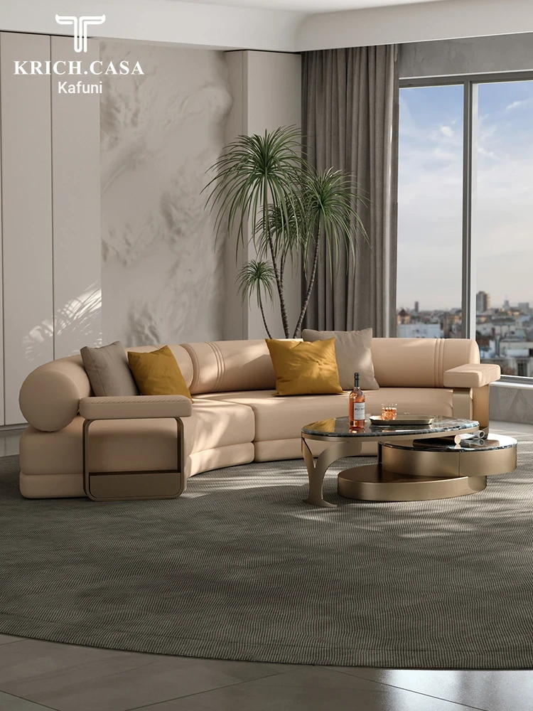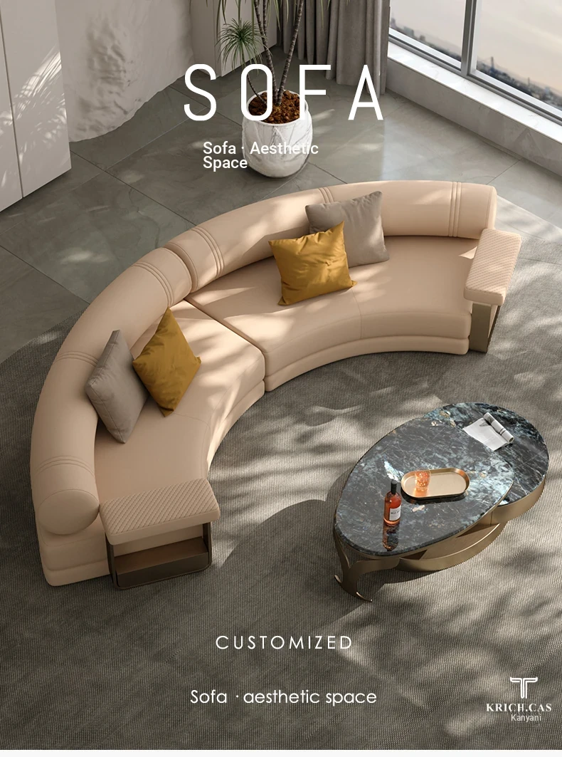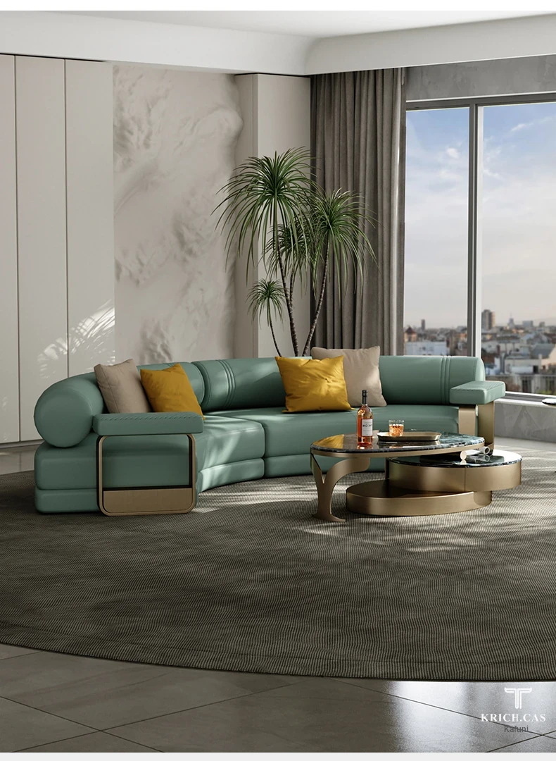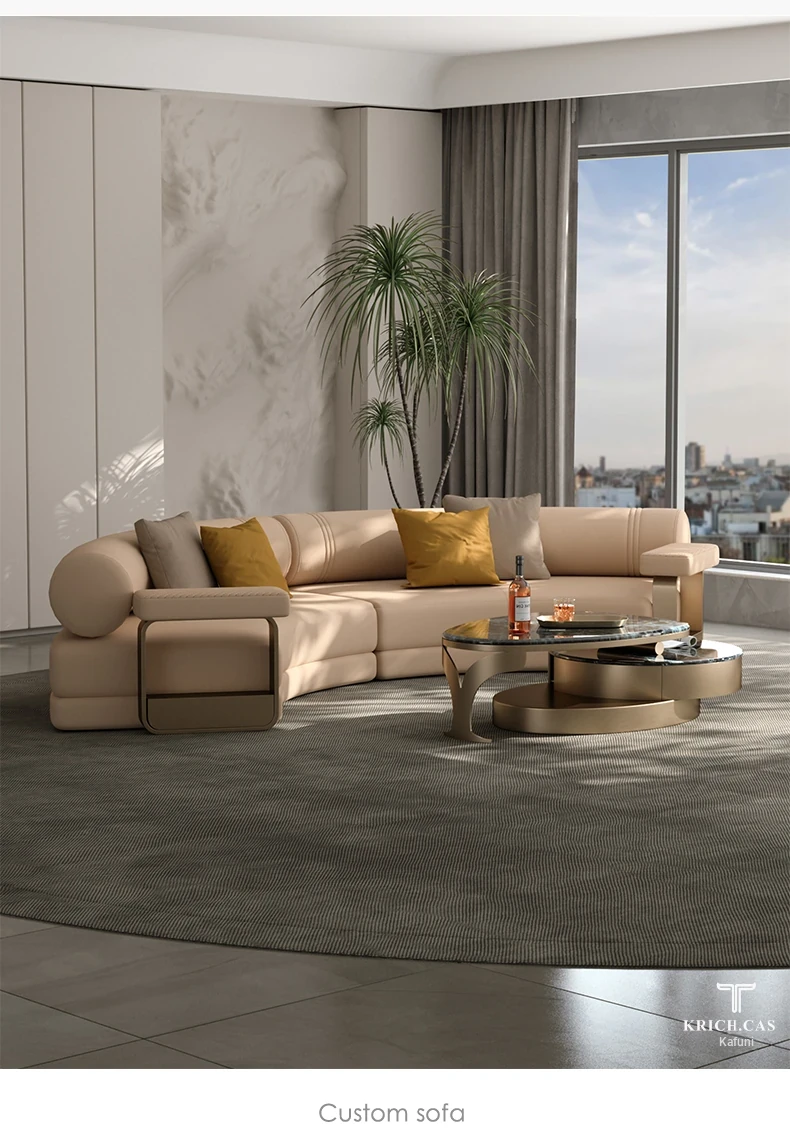 Italian Luxury Genuine Leather Curved Sofa for Modern High-End Homes - Exquisite Cowhide Living Room Couch for Villas and Spacious Apartments, Elevate Your Space with Style