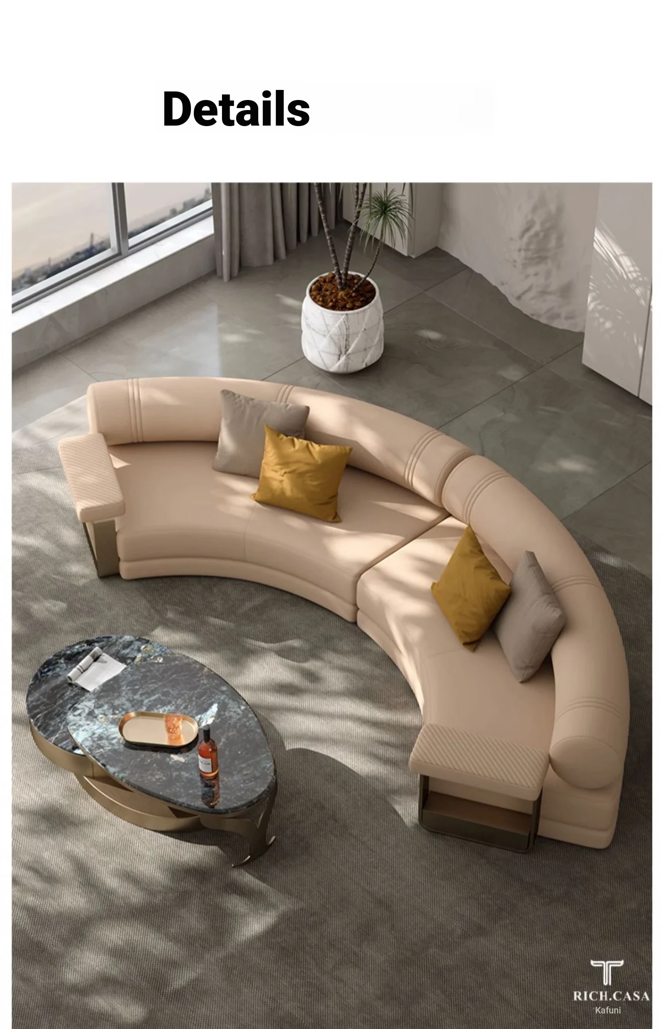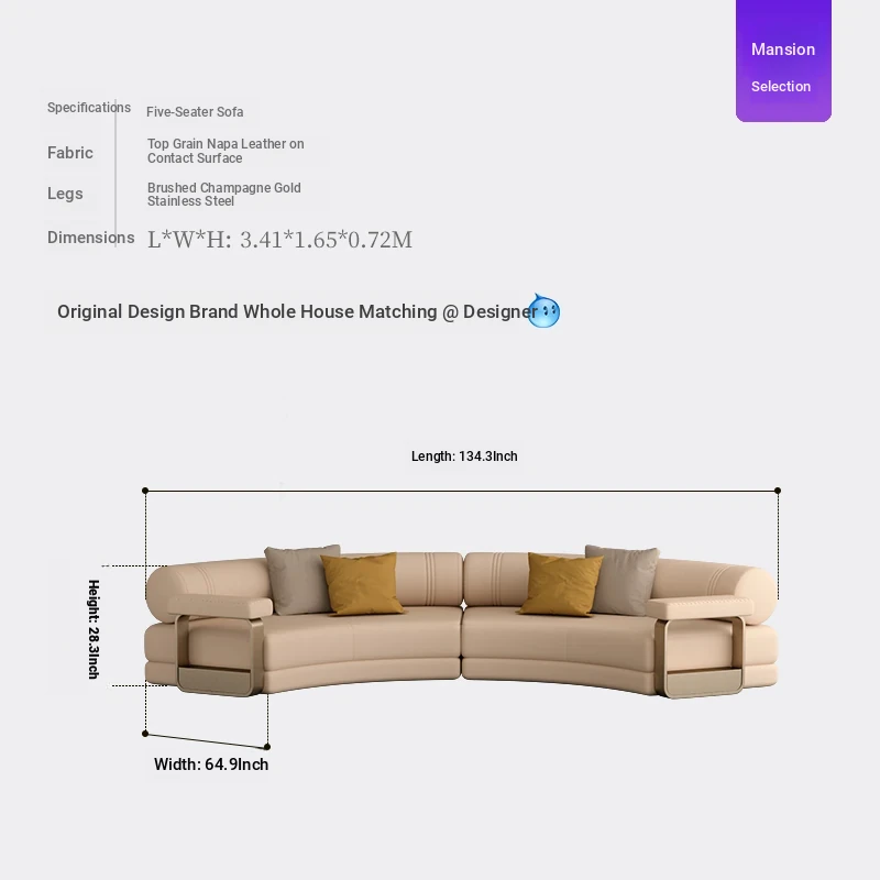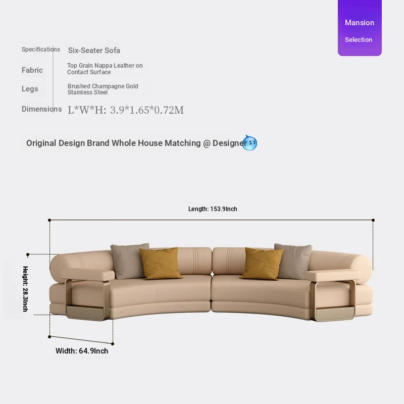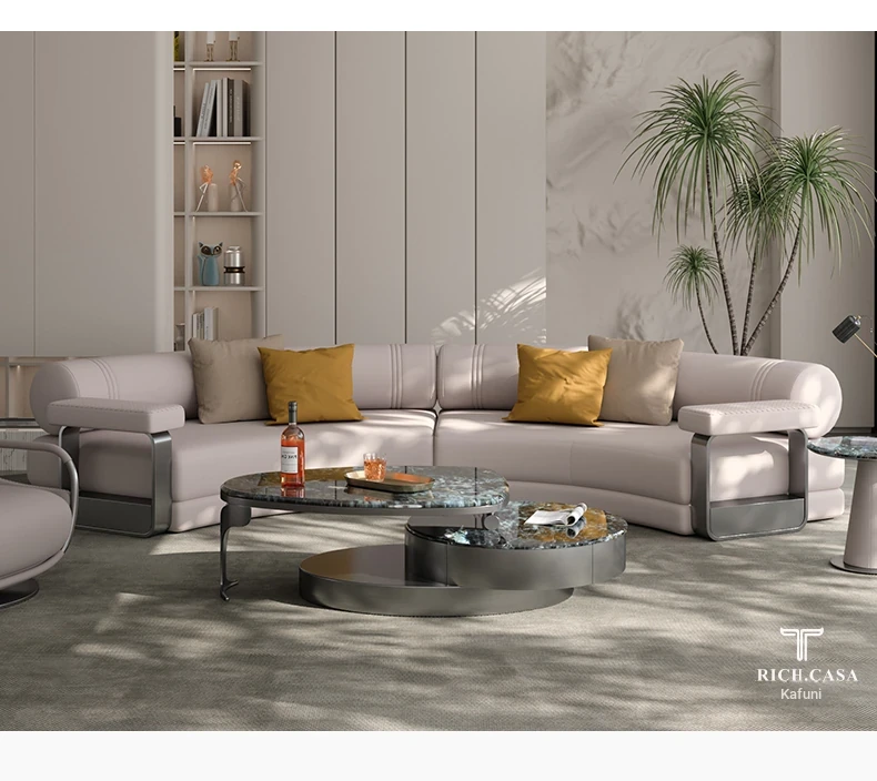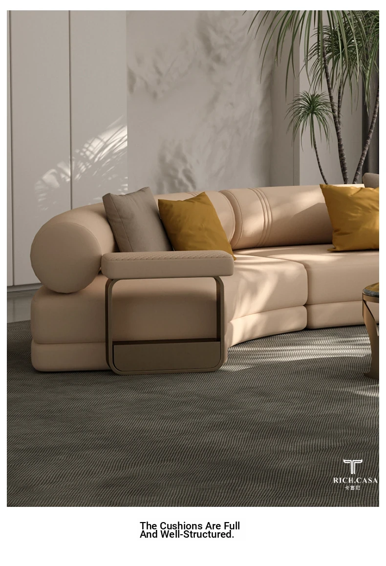 Italian Luxury Genuine Leather Curved Sofa for Modern High-End Homes - Exquisite Cowhide Living Room Couch for Villas and Spacious Apartments, Elevate Your Space with Style