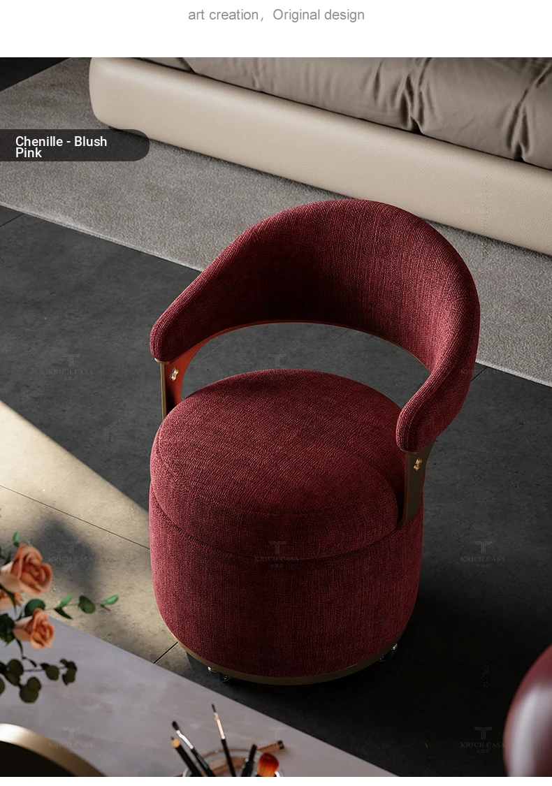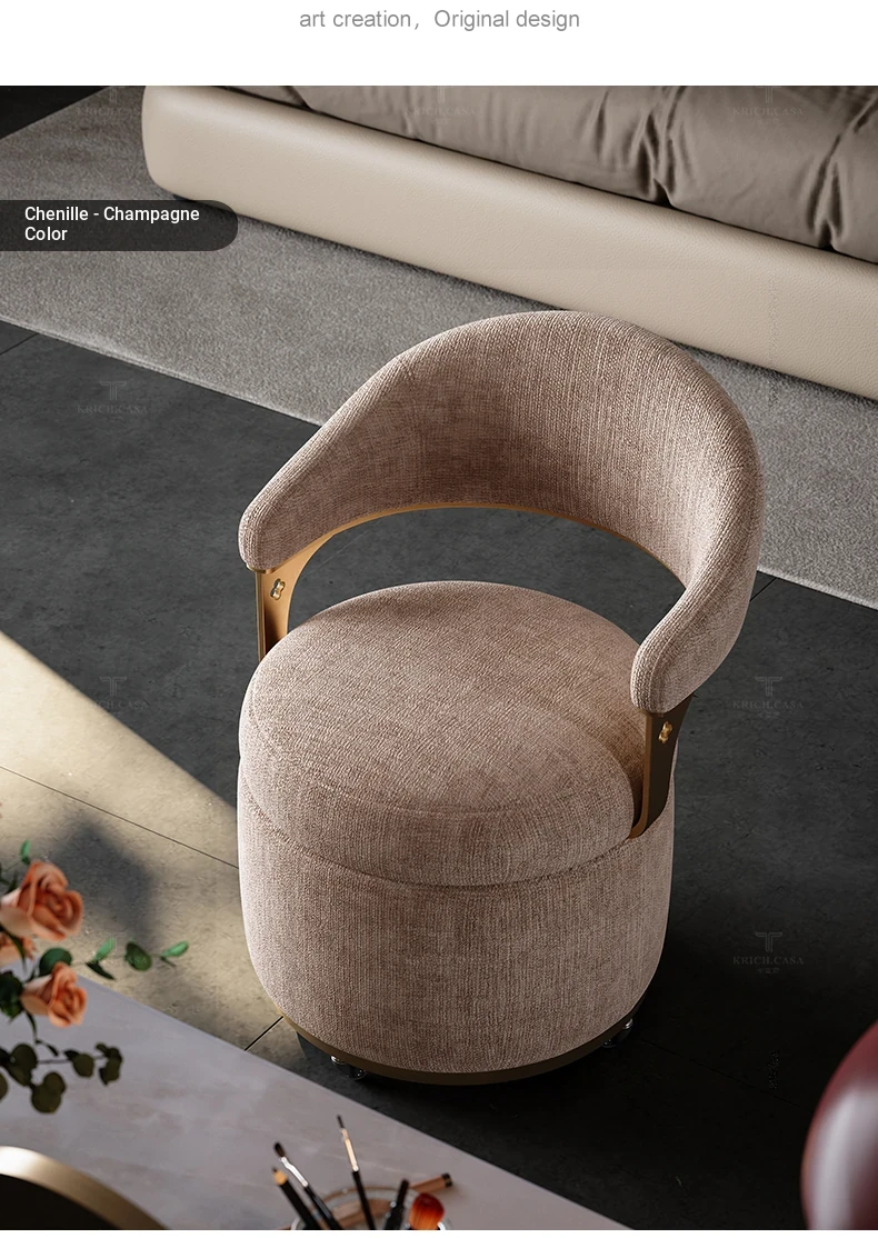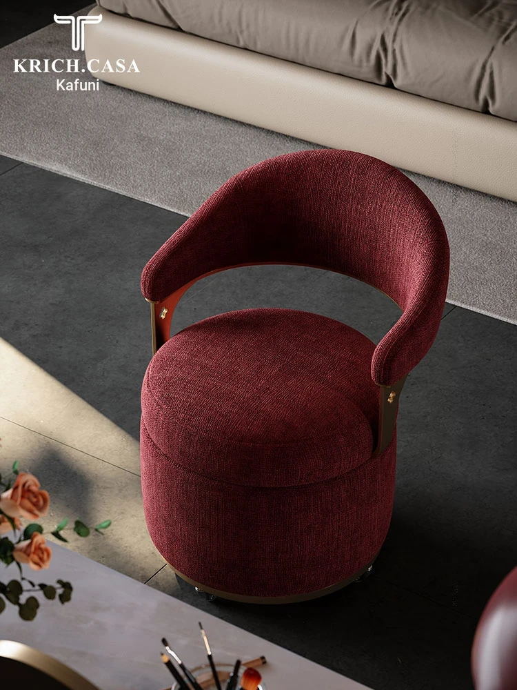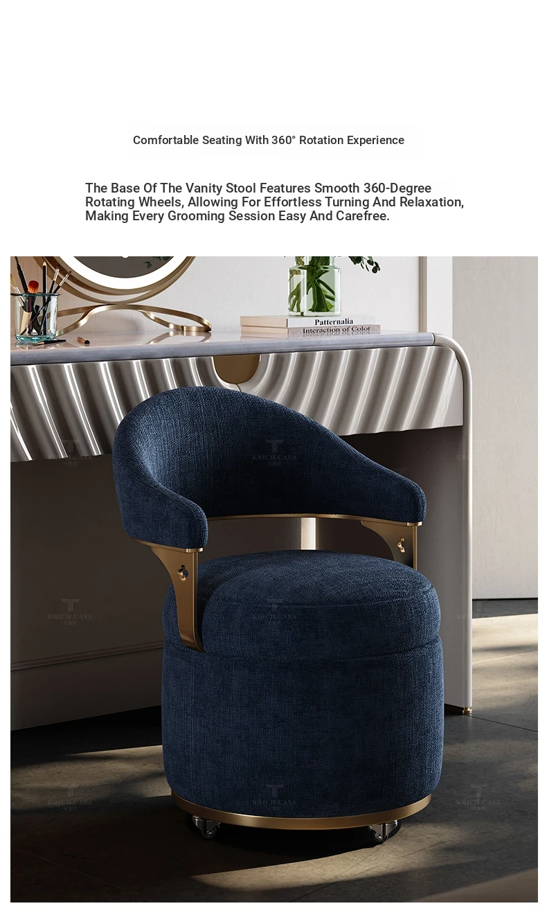 Kafuni French Style Vanity Stool - Modern, Luxurious, and Movable with Rotatable Design. High-End Makeup Chair with Comfortable Backrest for Your Master Bedroom.