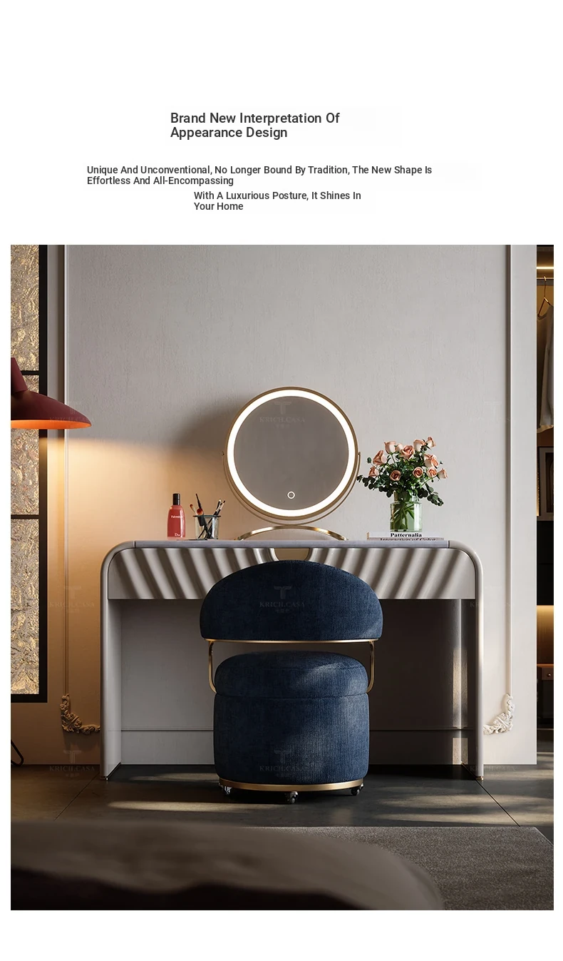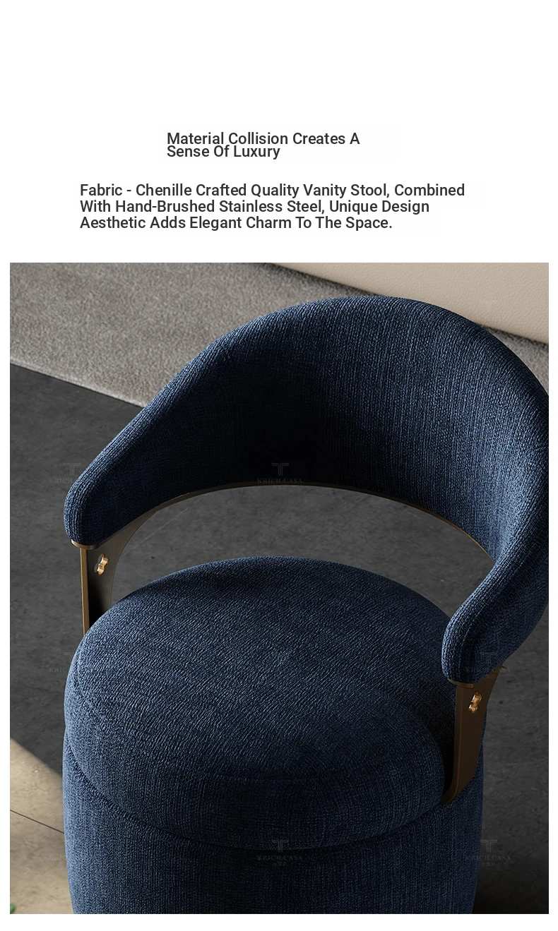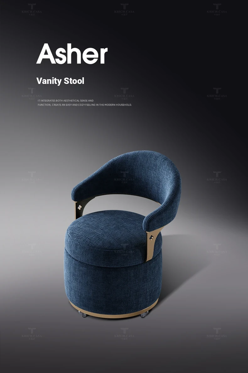 Kafuni French Style Vanity Stool - Modern, Luxurious, and Movable with Rotatable Design. High-End Makeup Chair with Comfortable Backrest for Your Master Bedroom.