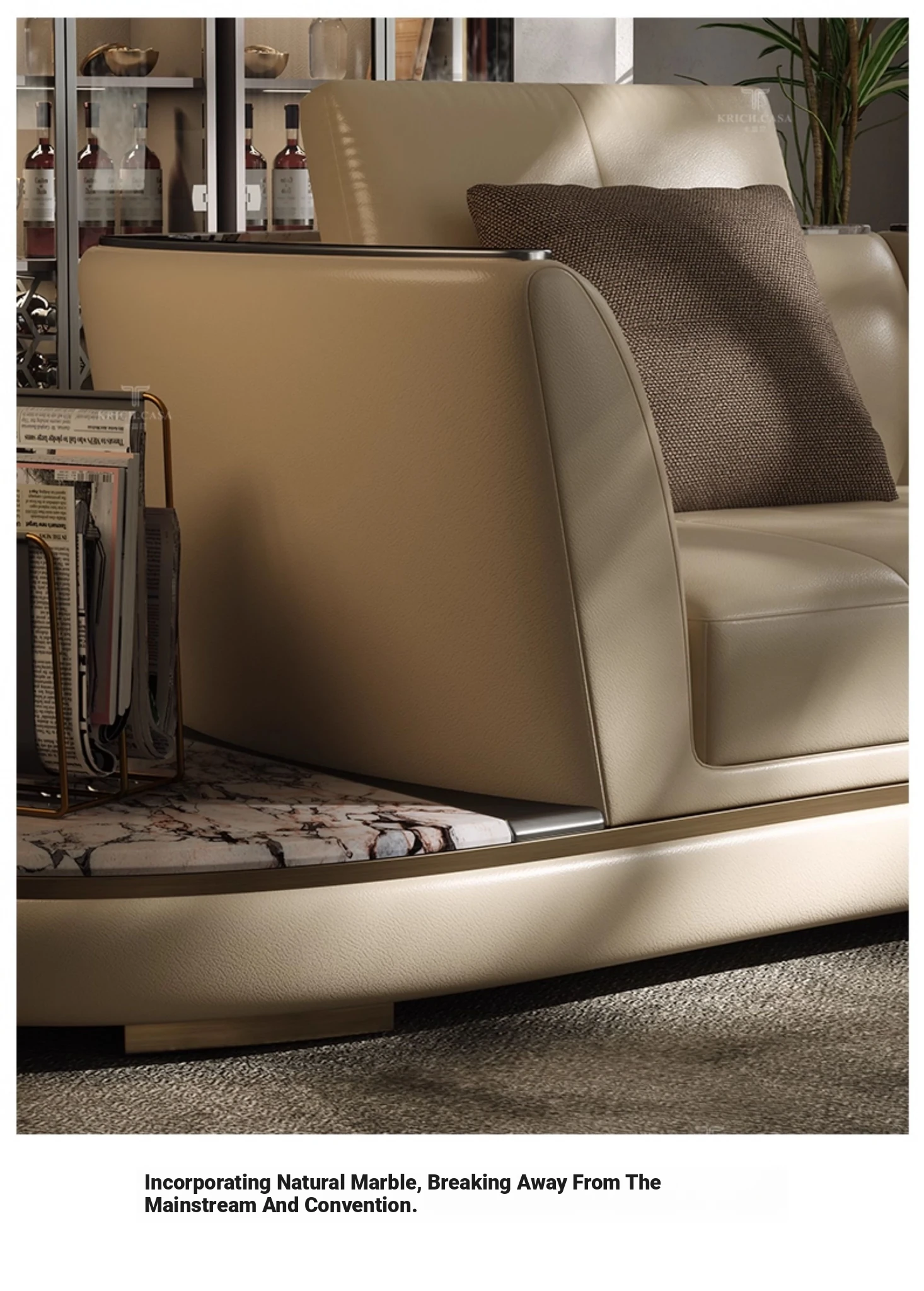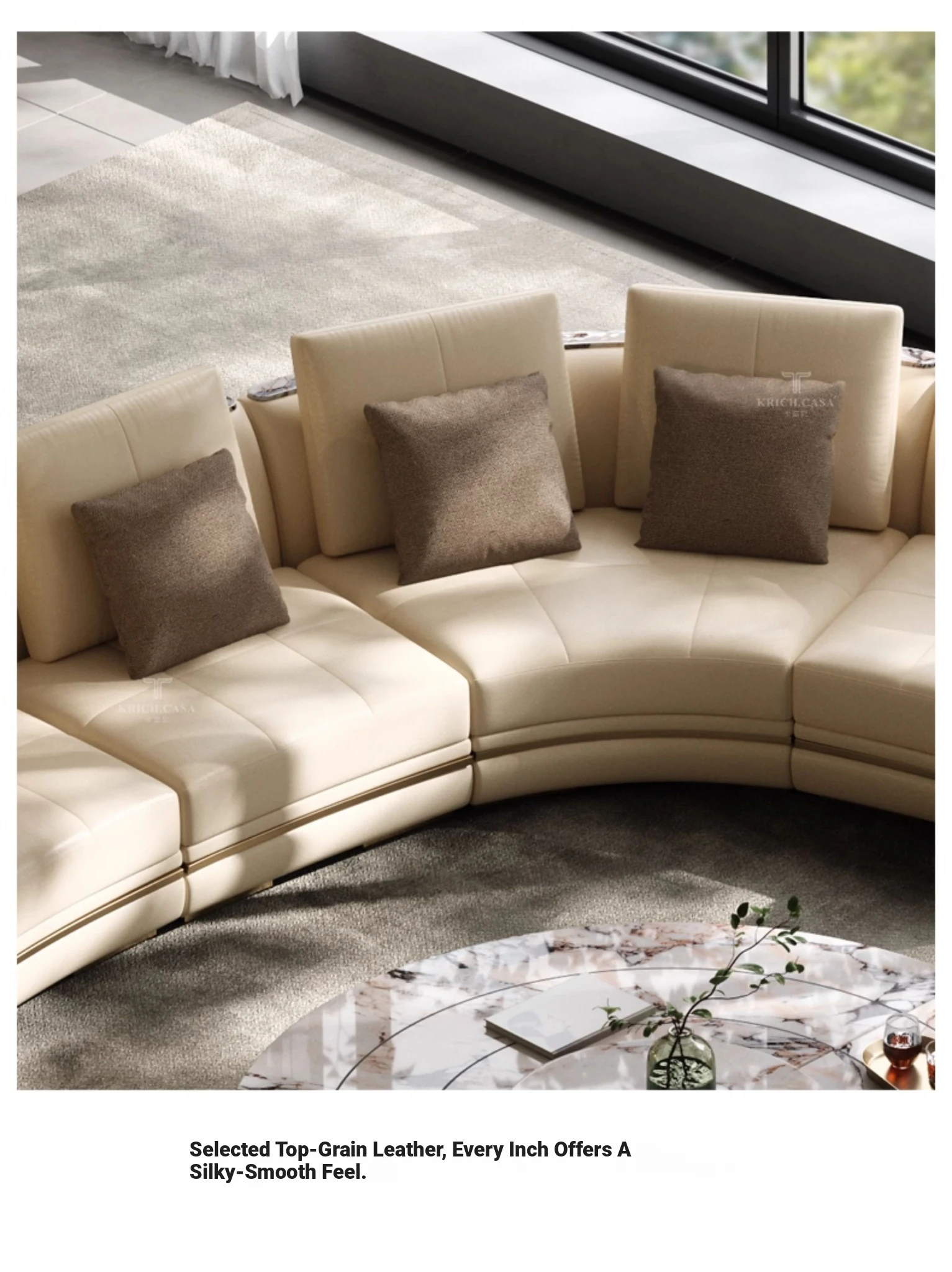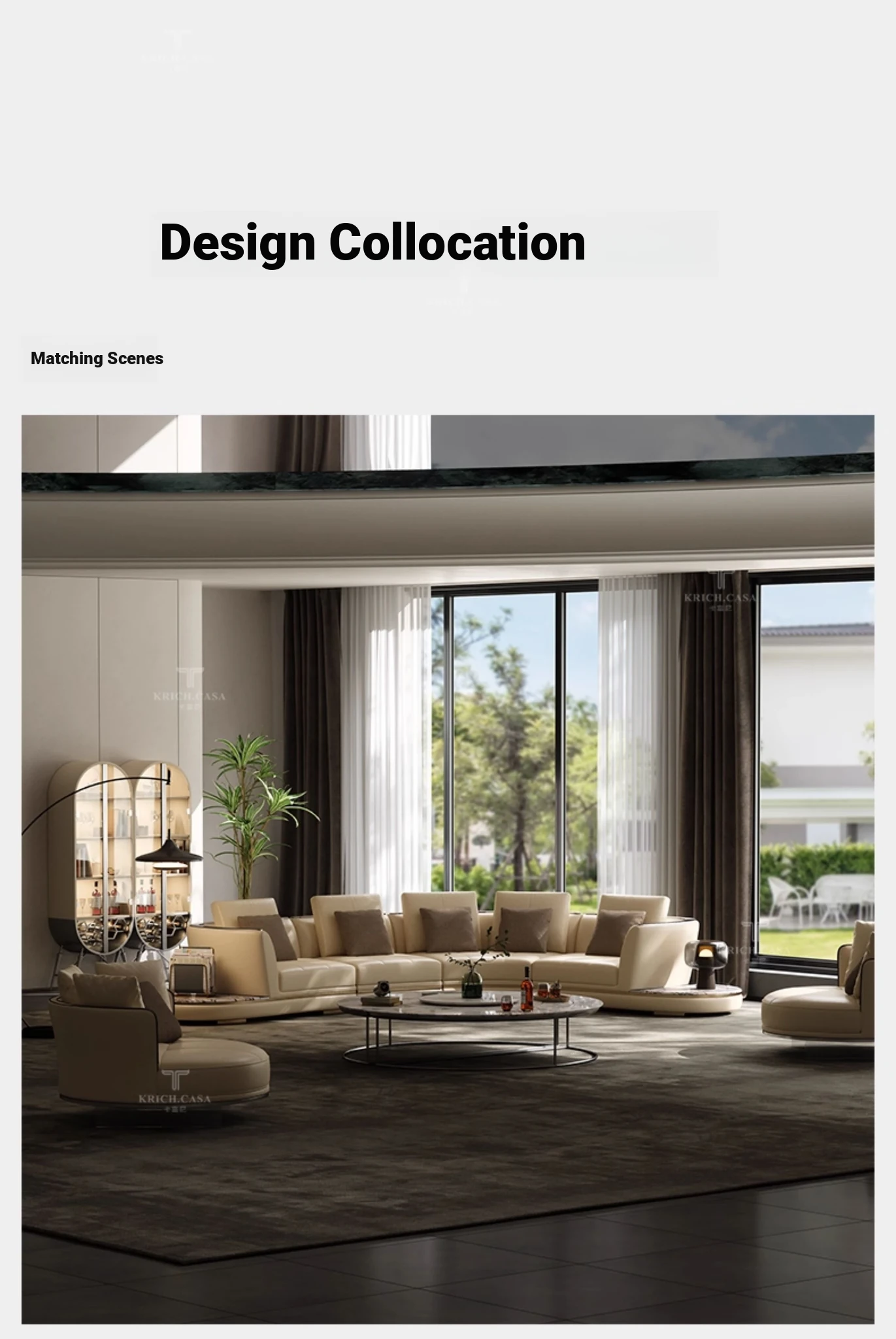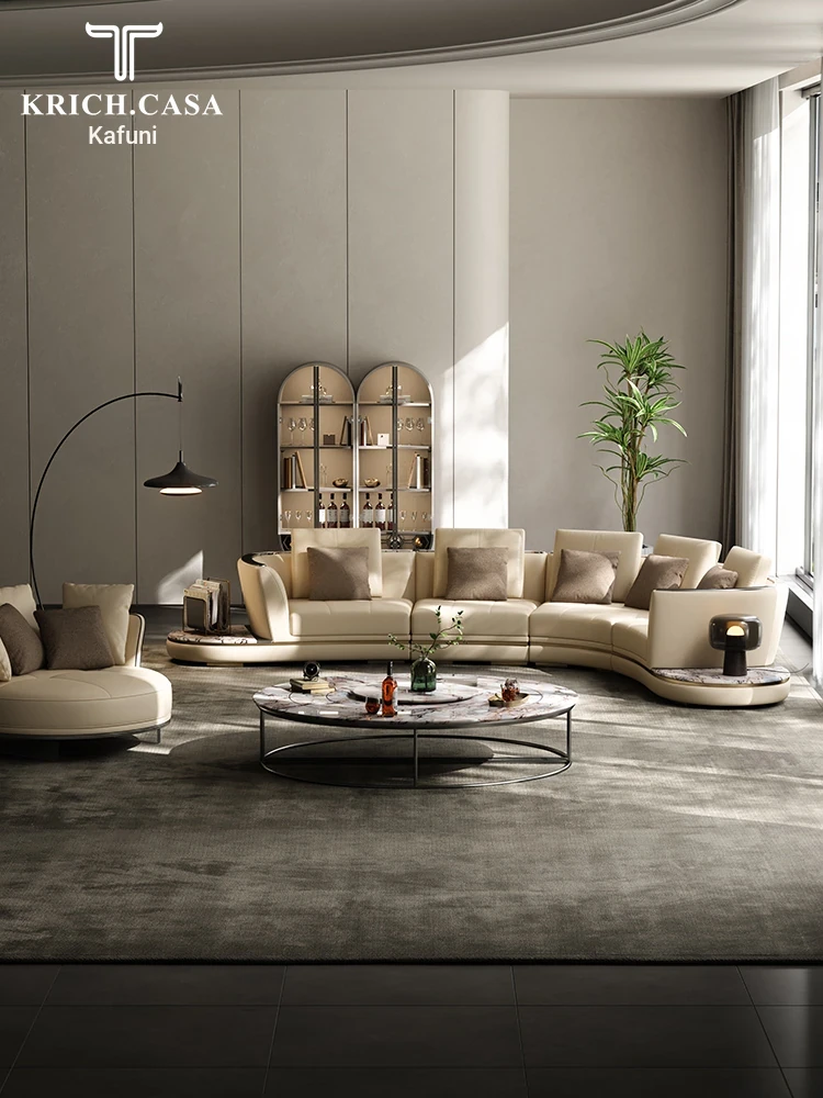 Kafuni Luxury Genuine Leather Sofa – Elegant Corner Sofa for Villas and Spacious Living Rooms, Featuring Stylish Italian Curves and Versatile Combinations
