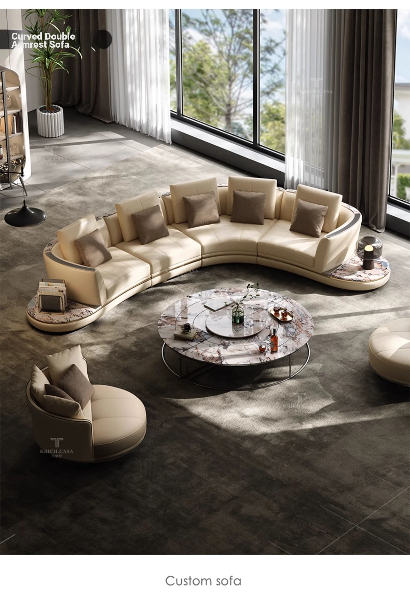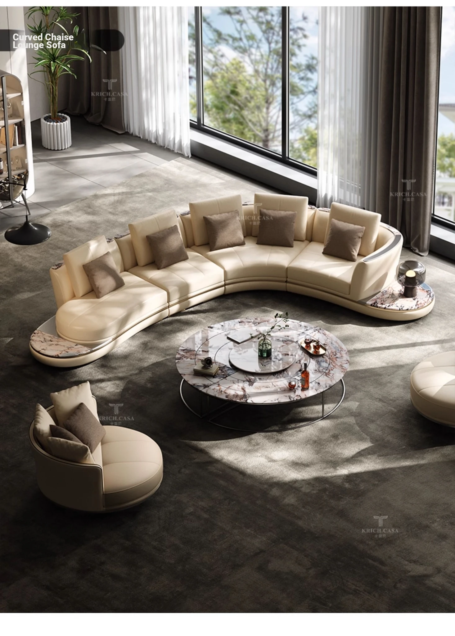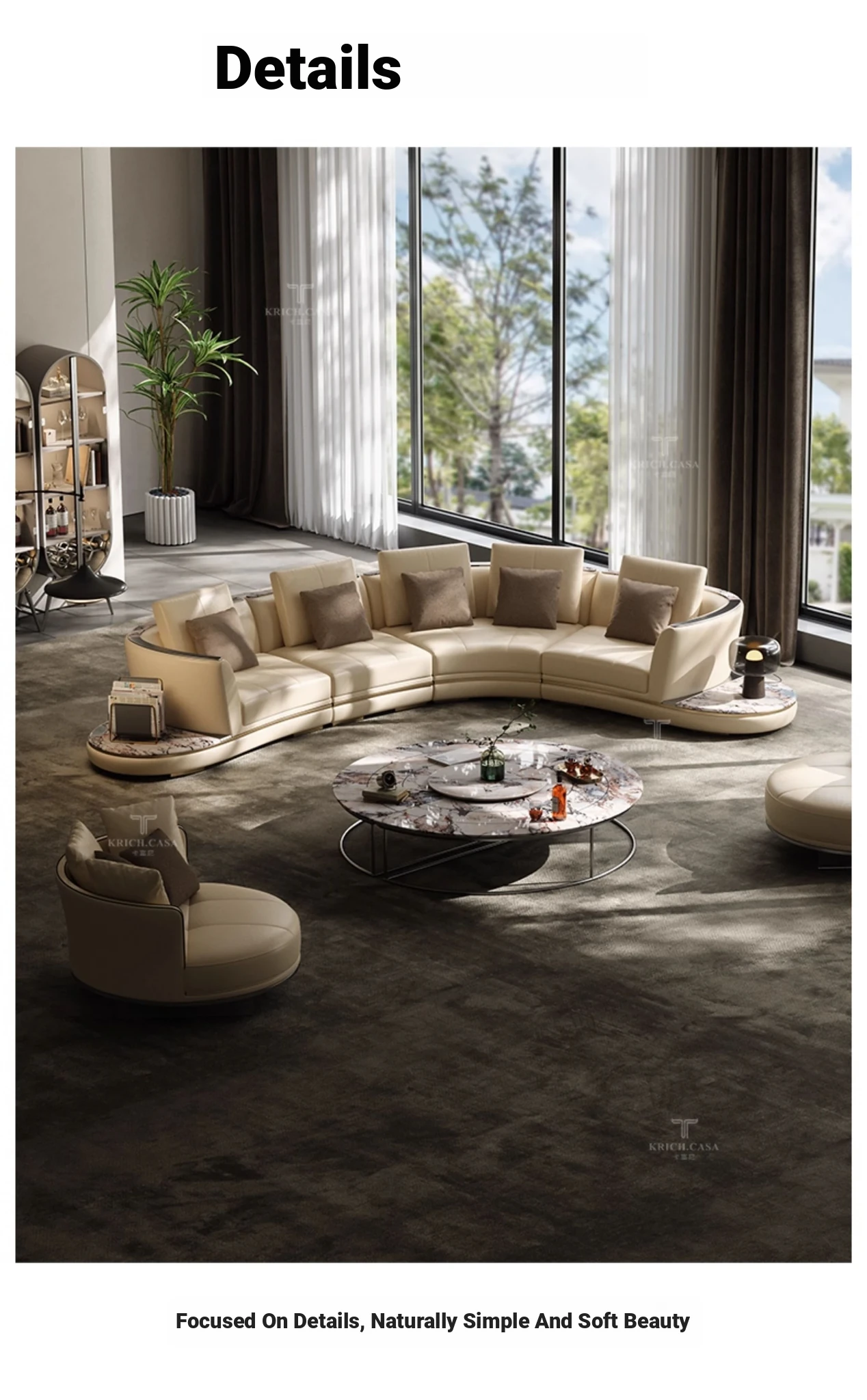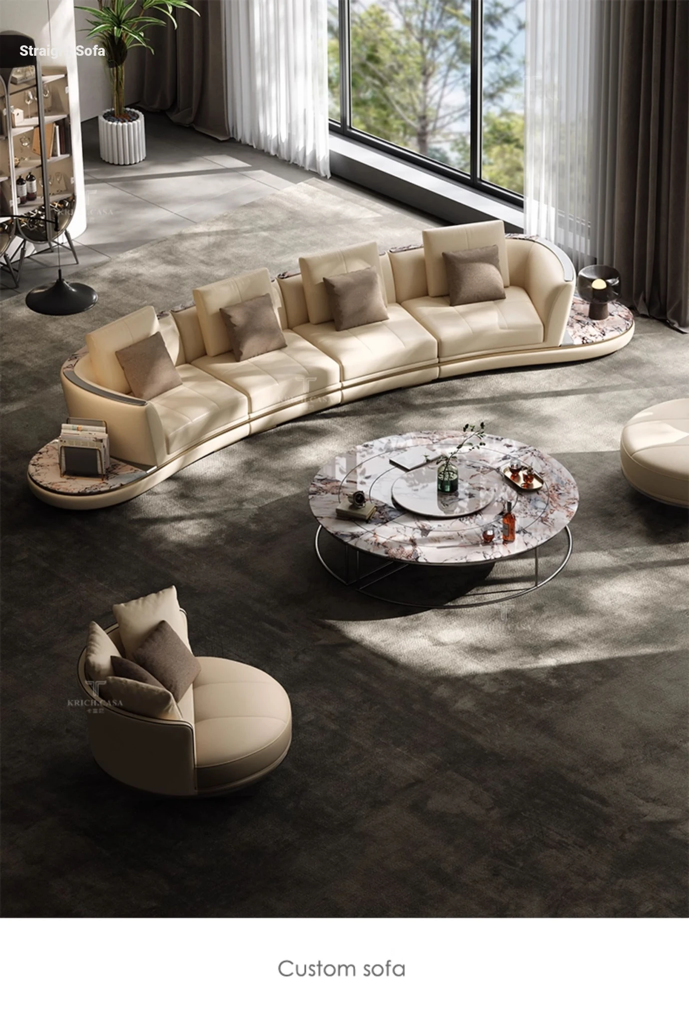Kafuni Luxury Genuine Leather Sofa – Elegant Corner Sofa for Villas and Spacious Living Rooms, Featuring Stylish Italian Curves and Versatile Combinations