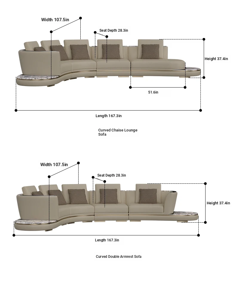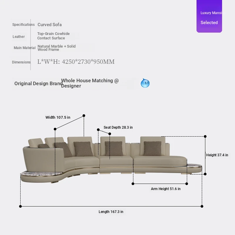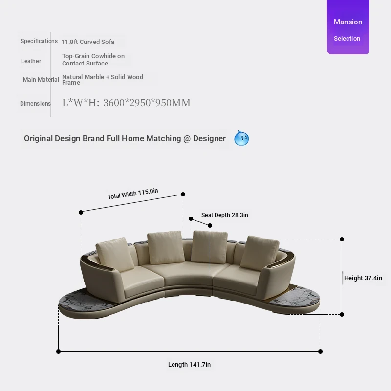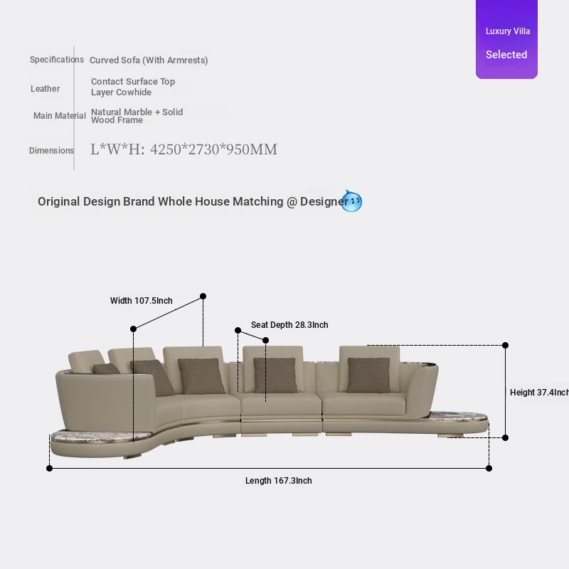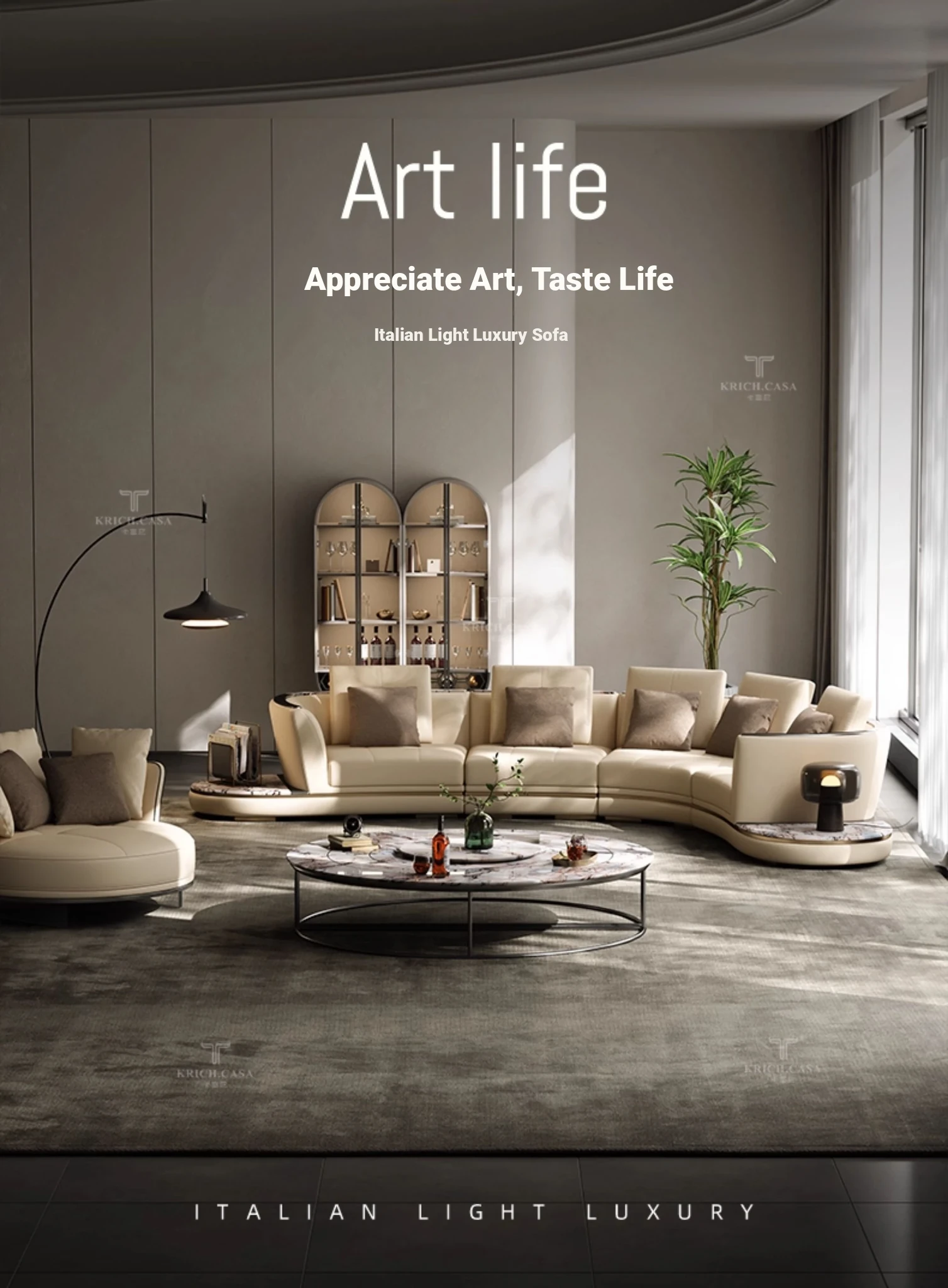 Kafuni Luxury Genuine Leather Sofa – Elegant Corner Sofa for Villas and Spacious Living Rooms, Featuring Stylish Italian Curves and Versatile Combinations