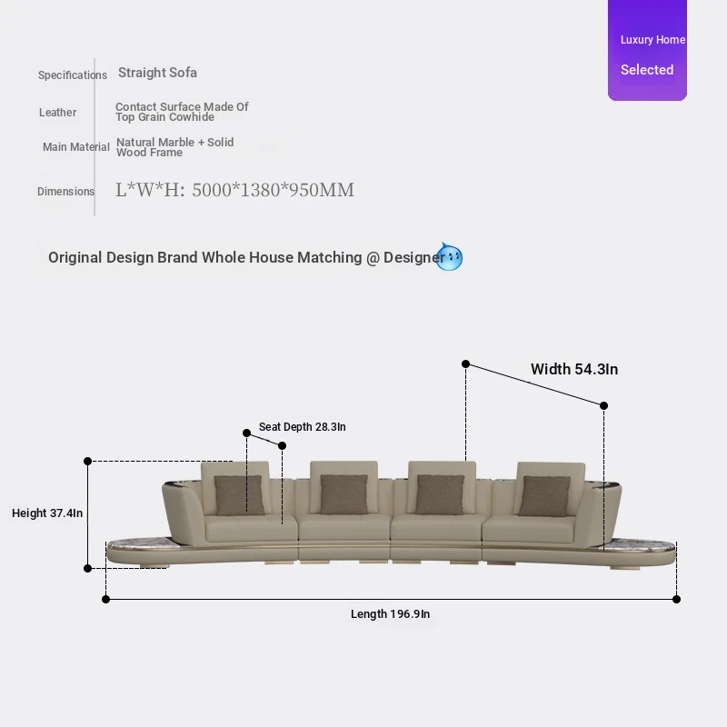 [Contact surface head layer cowhide] 196.85in straight armrest