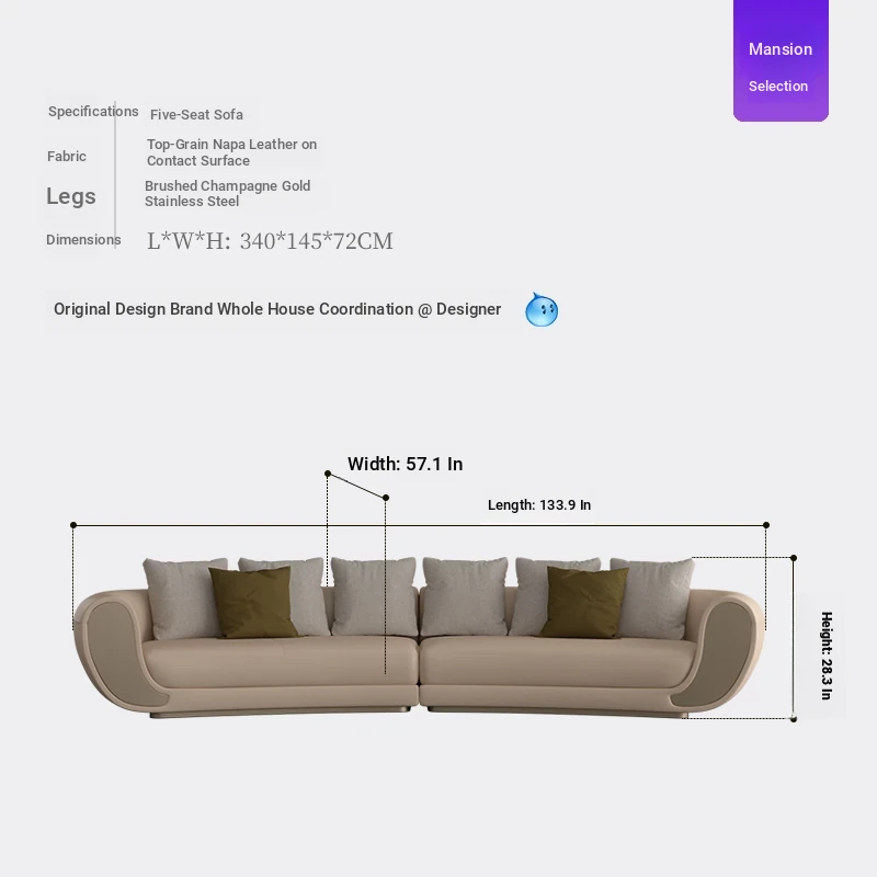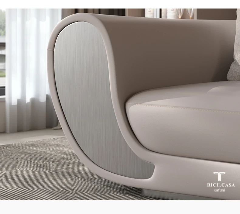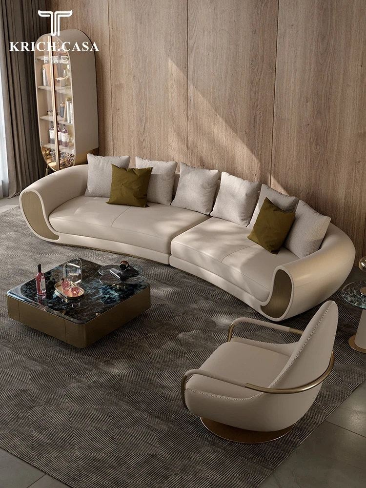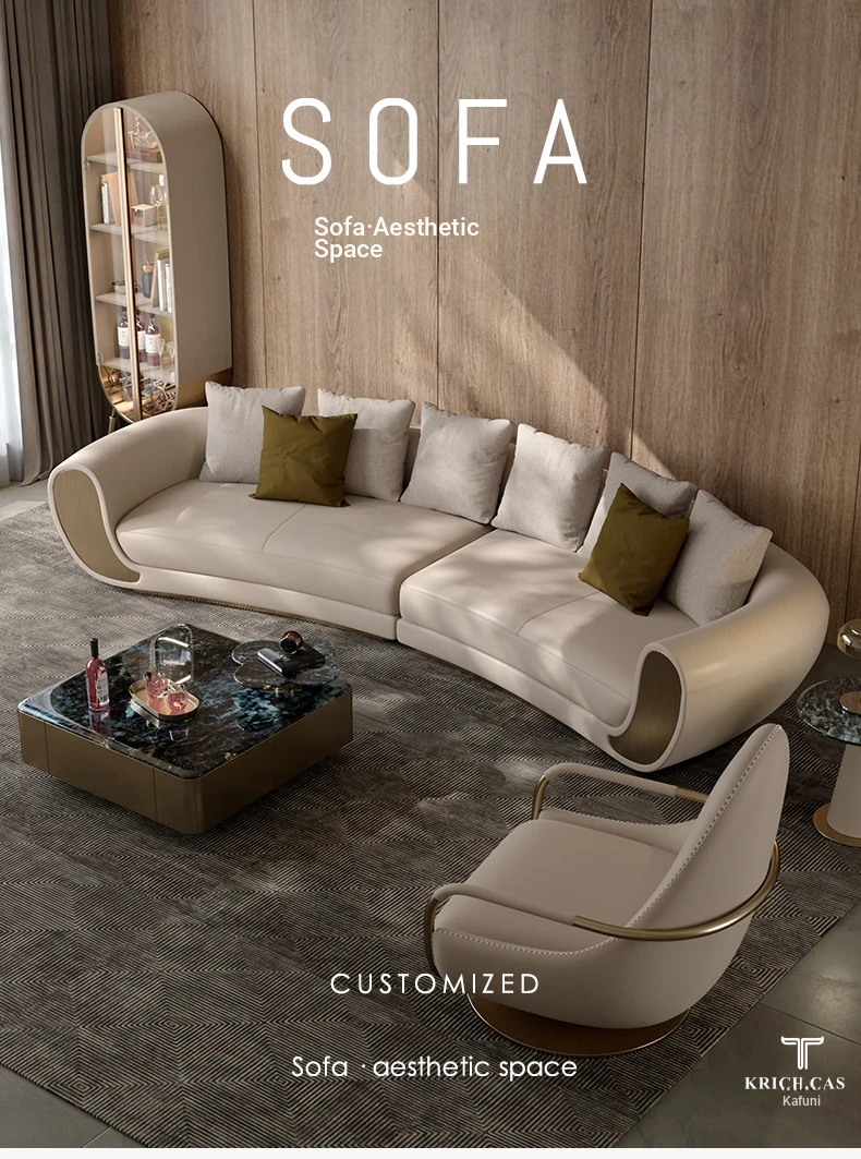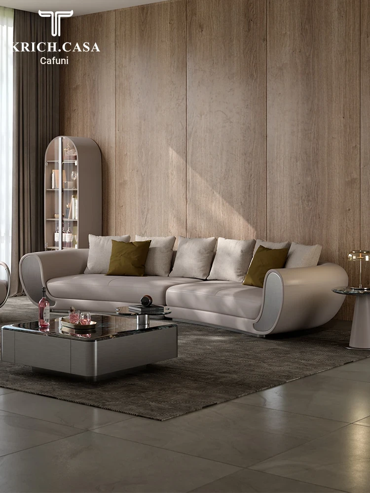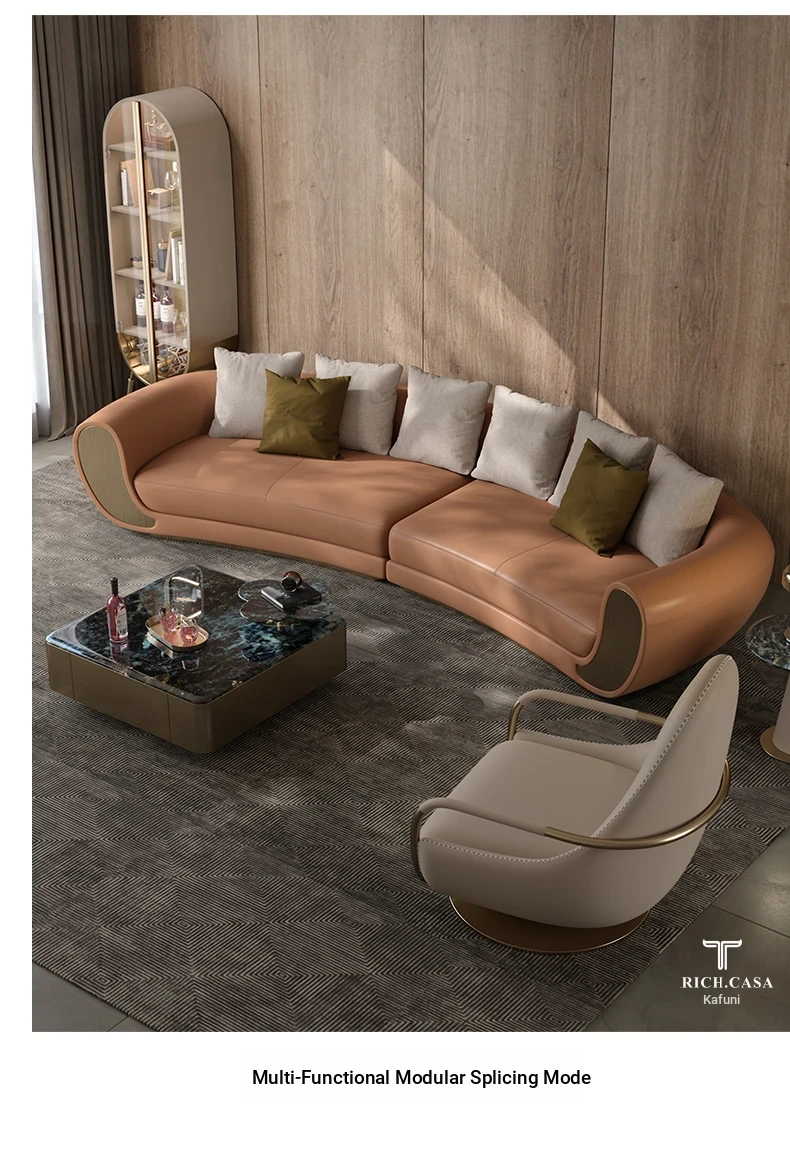 Kafuni Luxury Italian Genuine Leather Sofa - Premium Top Grain Cowhide Curved Sofa for Modern Villas and Spacious Living Rooms - Elevate Your Home with Elegant Comfort