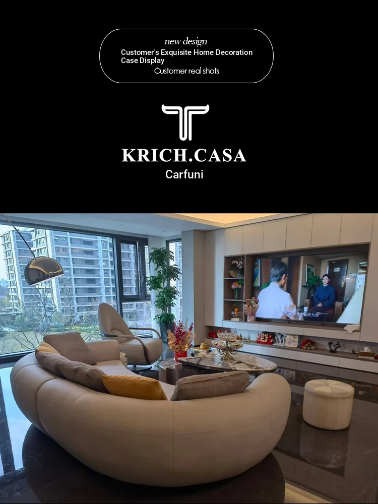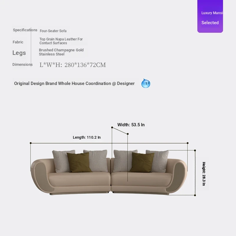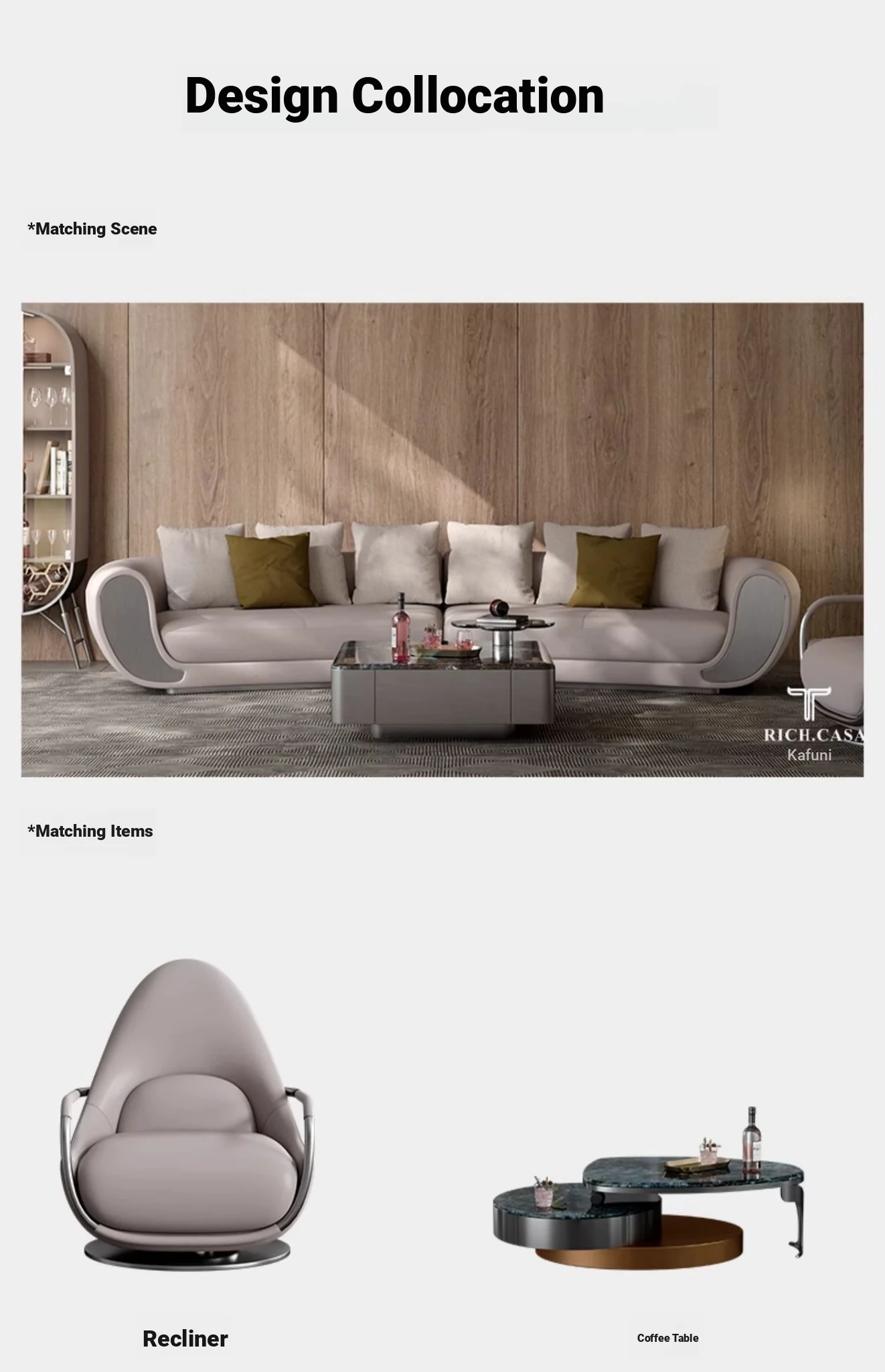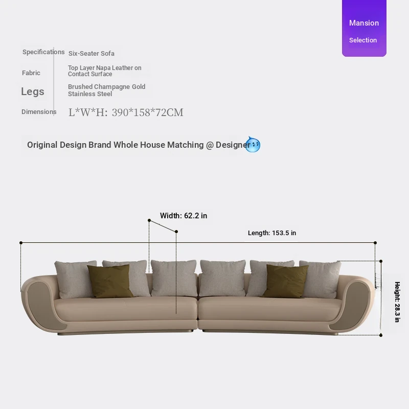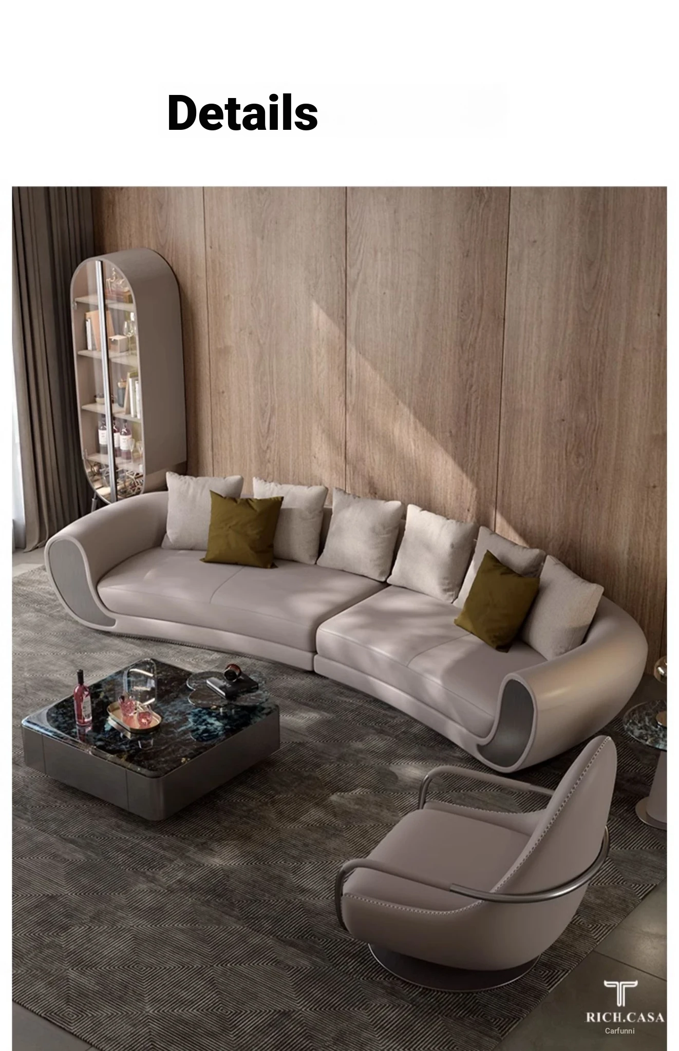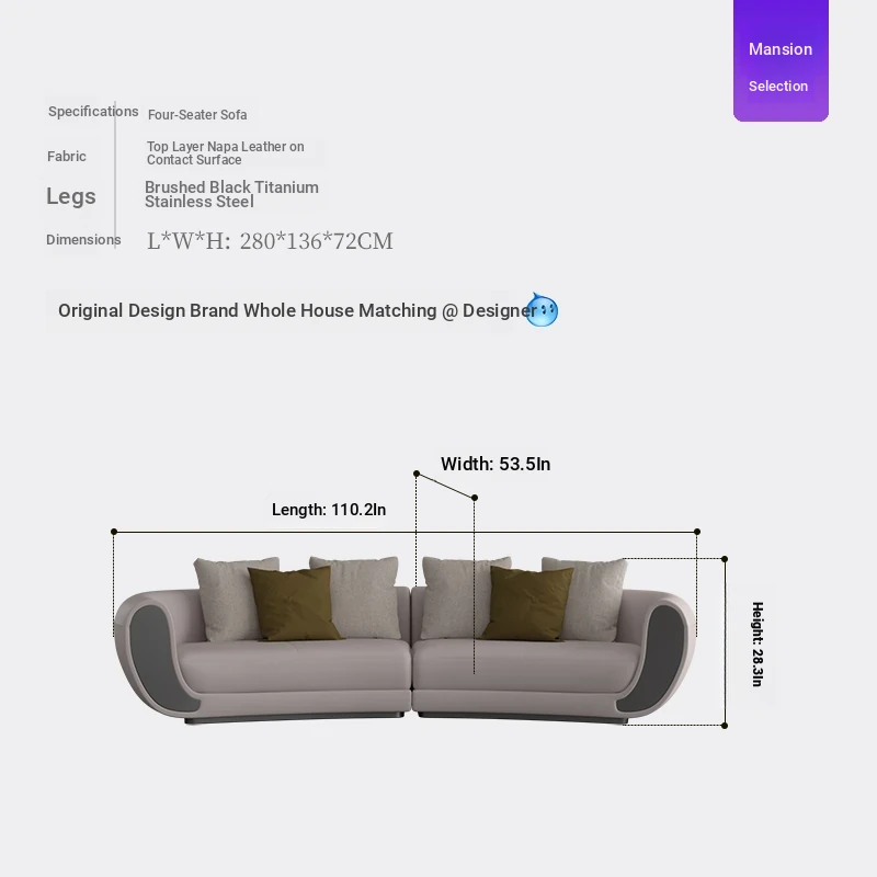 Kafuni Luxury Italian Genuine Leather Sofa - Premium Top Grain Cowhide Curved Sofa for Modern Villas and Spacious Living Rooms - Elevate Your Home with Elegant Comfort
