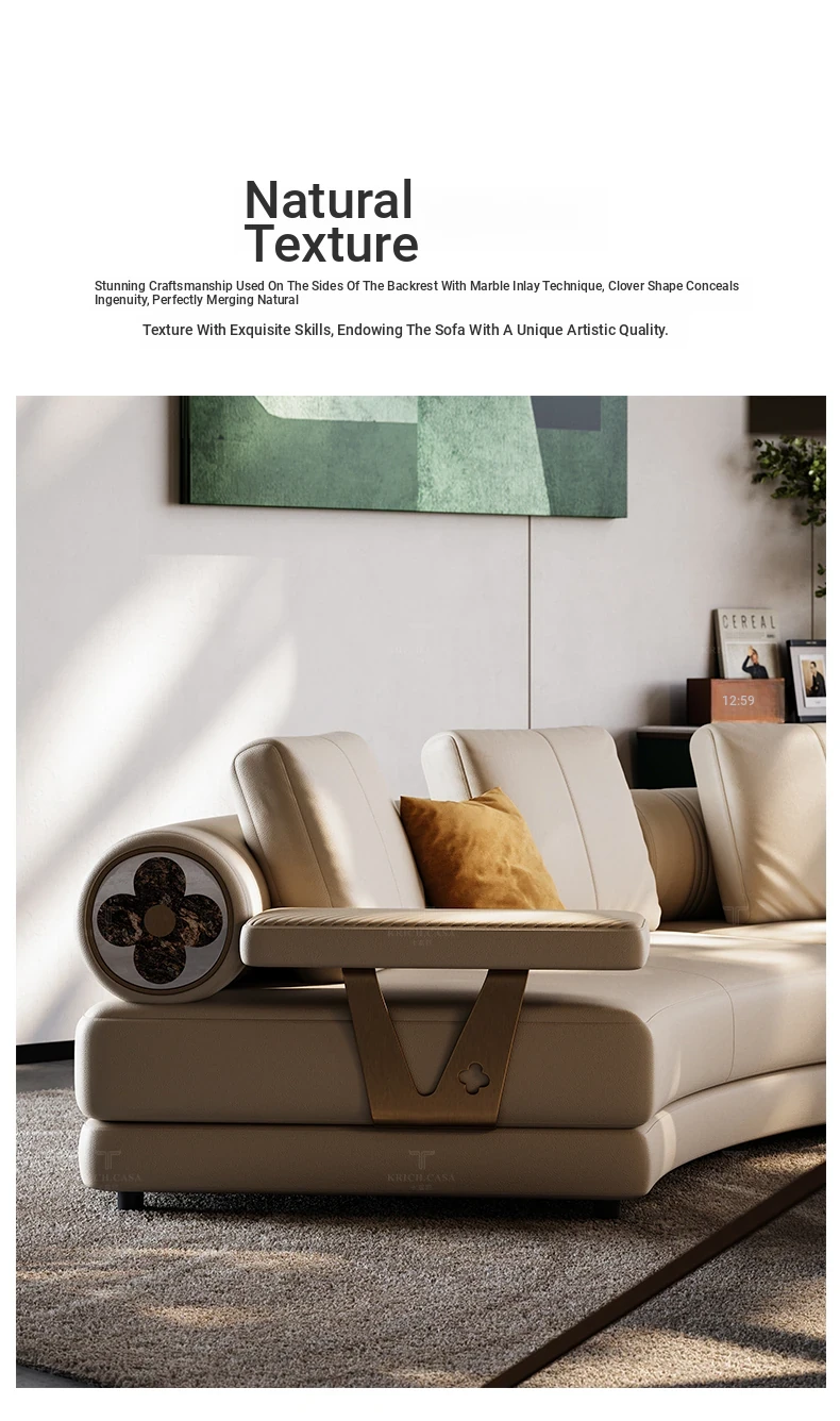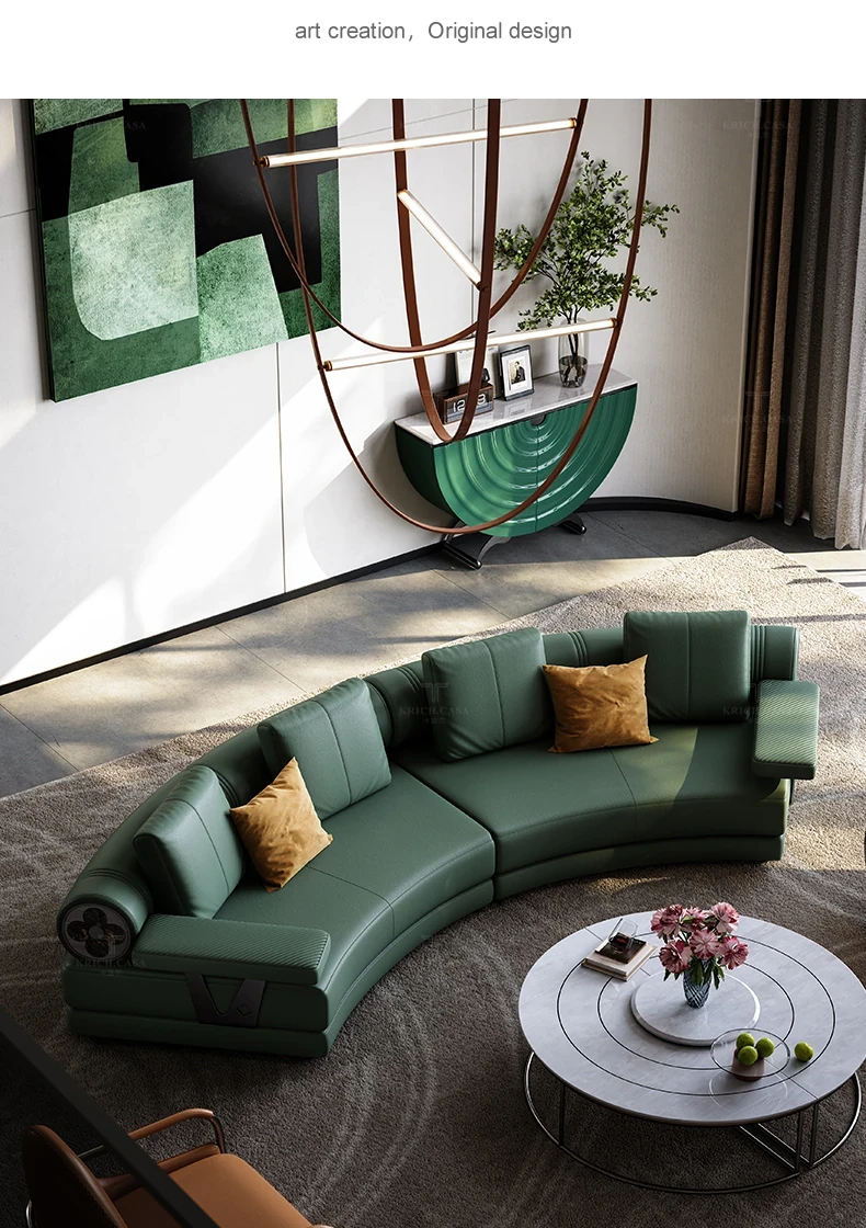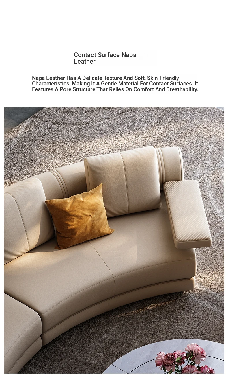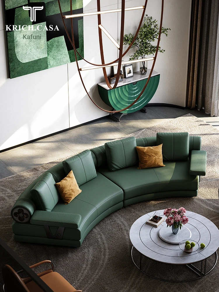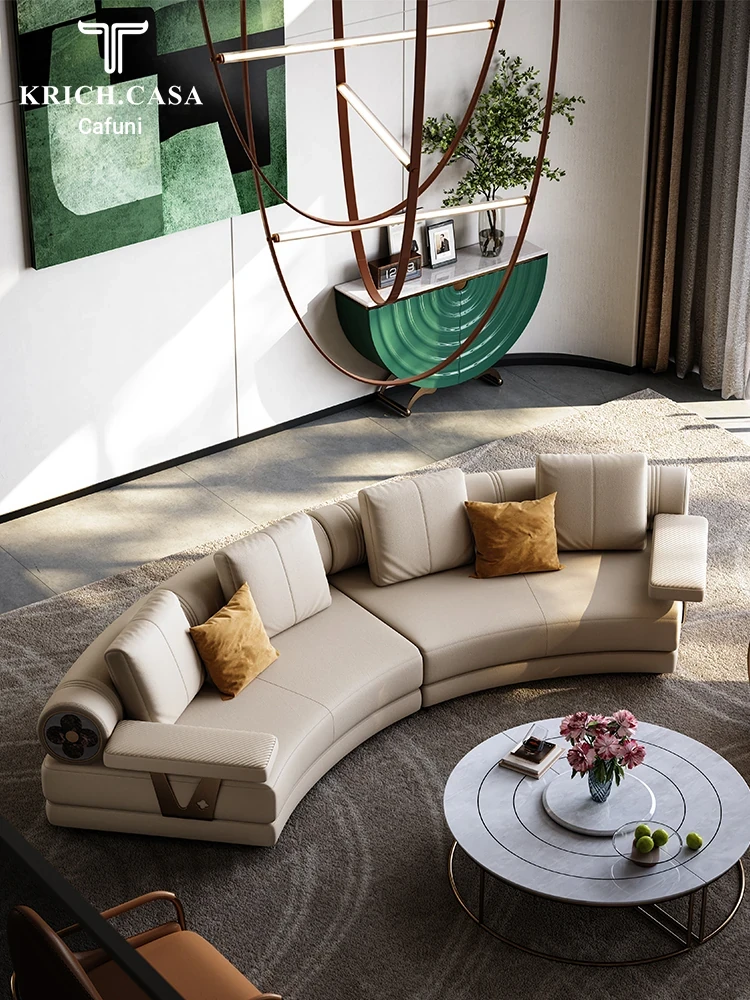 Kafuni Original Design High-End French Genuine Leather Sofa - Luxurious Curved Sofa for Elegant Living Rooms, Villas, and Spacious Flats