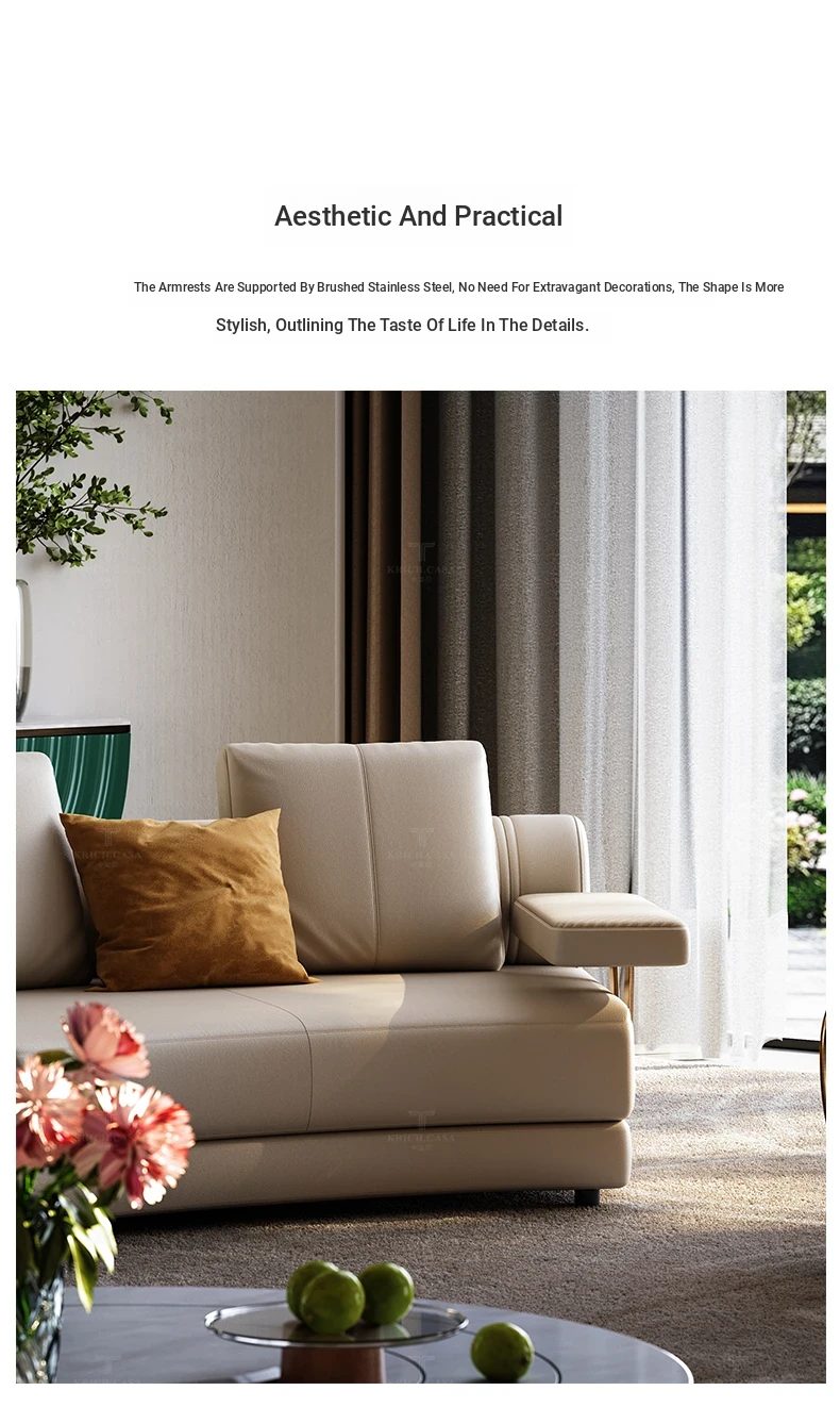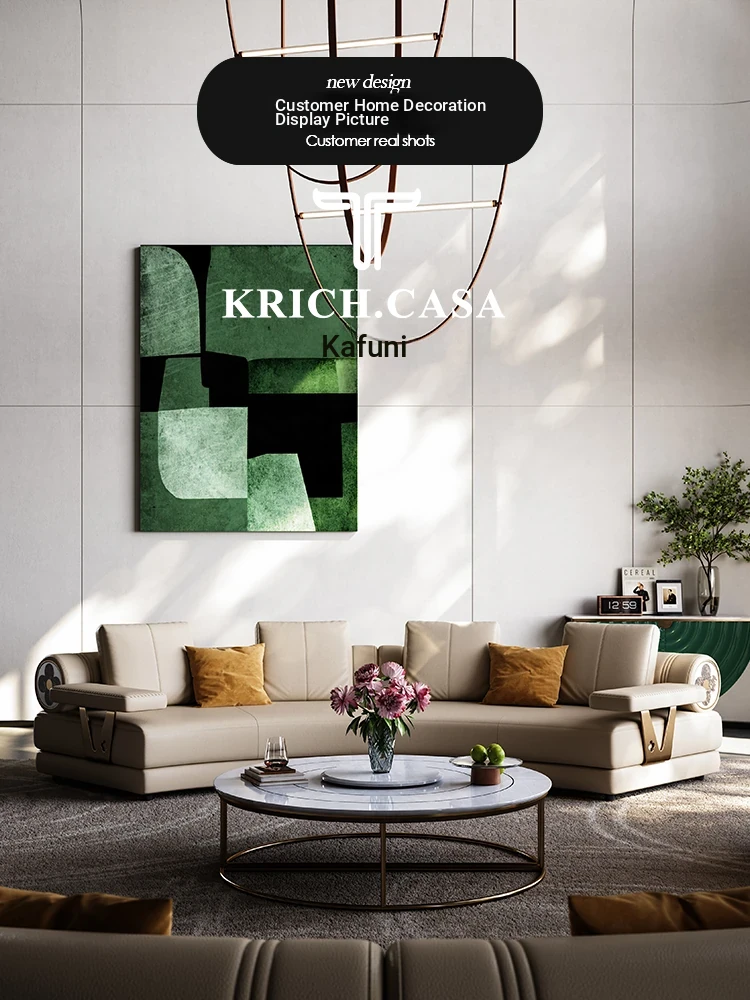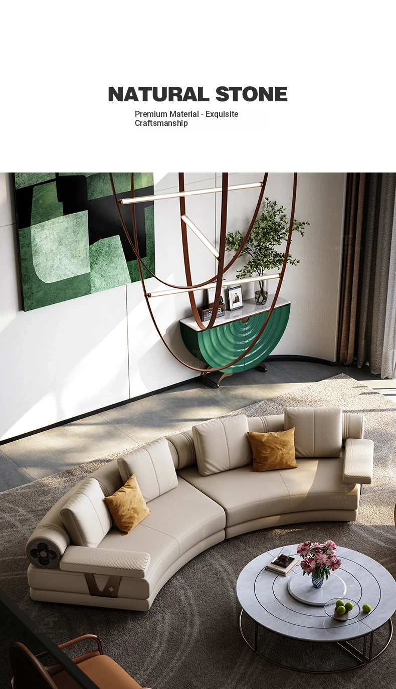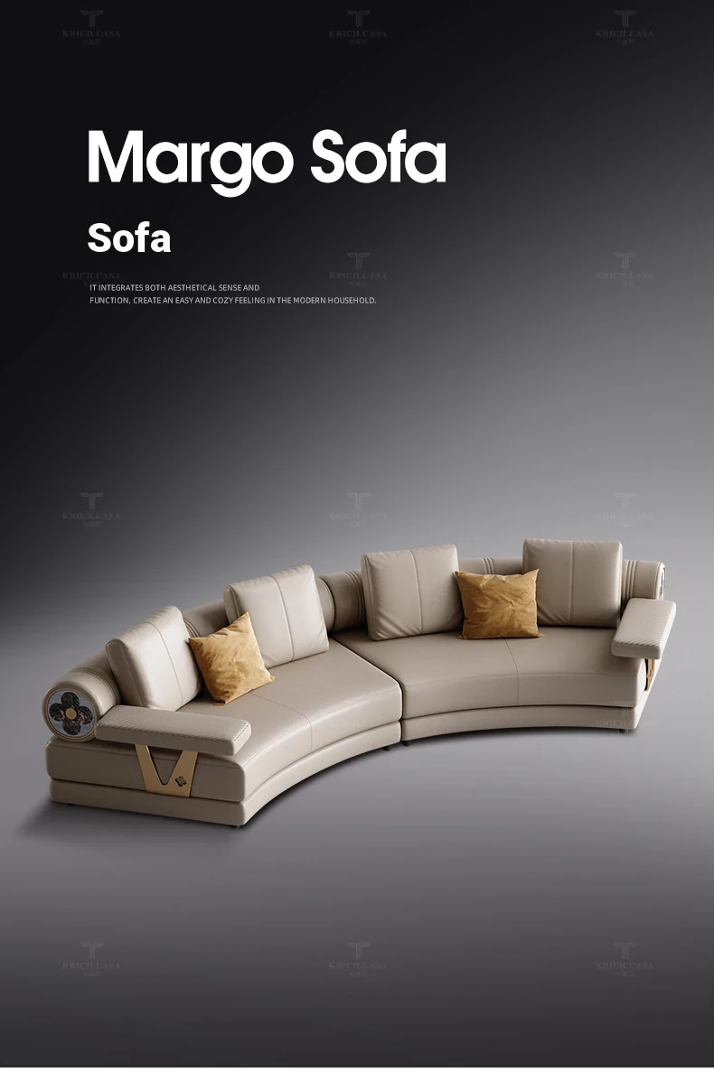 Kafuni Original Design High-End French Genuine Leather Sofa - Luxurious Curved Sofa for Elegant Living Rooms, Villas, and Spacious Flats