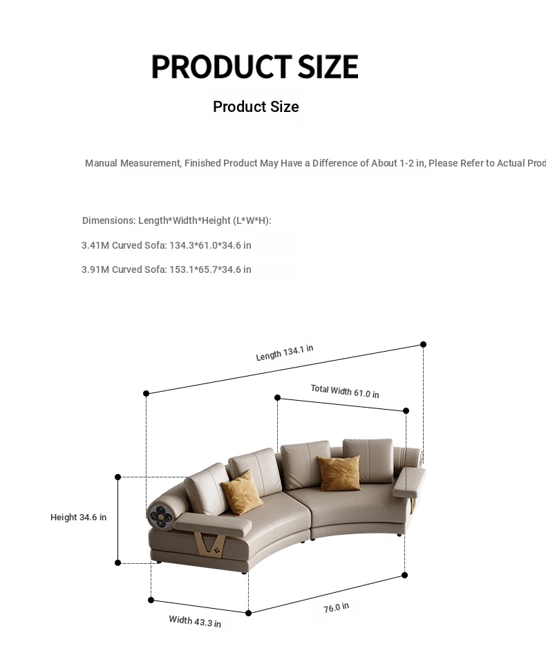[Contact surface leather-nappa leather] 134.25in curved sofa