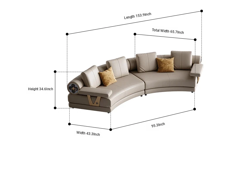 [Contact surface leather-nappa leather] 153.94in curved sofa
