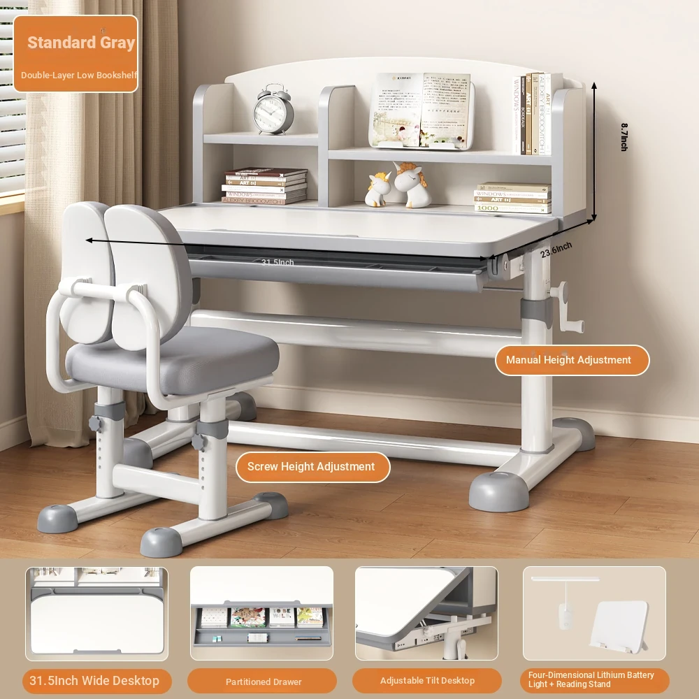 [Home delivery] Gray-erudite + screw lift chair [eye protection lithium lamp + learning gift bag 5-piece set]]