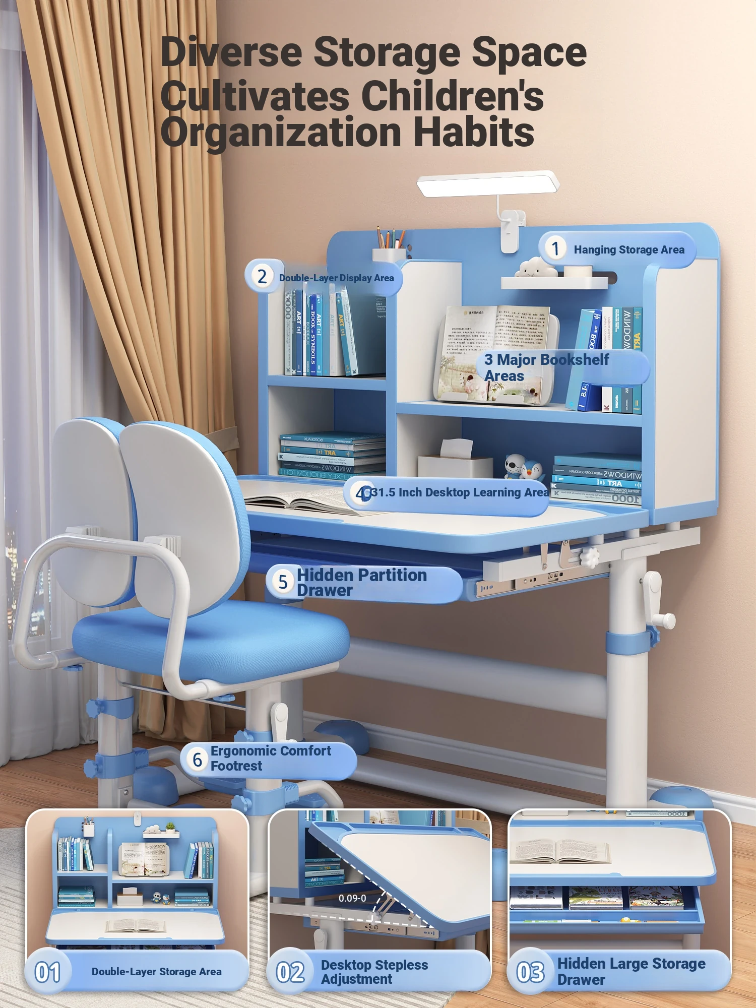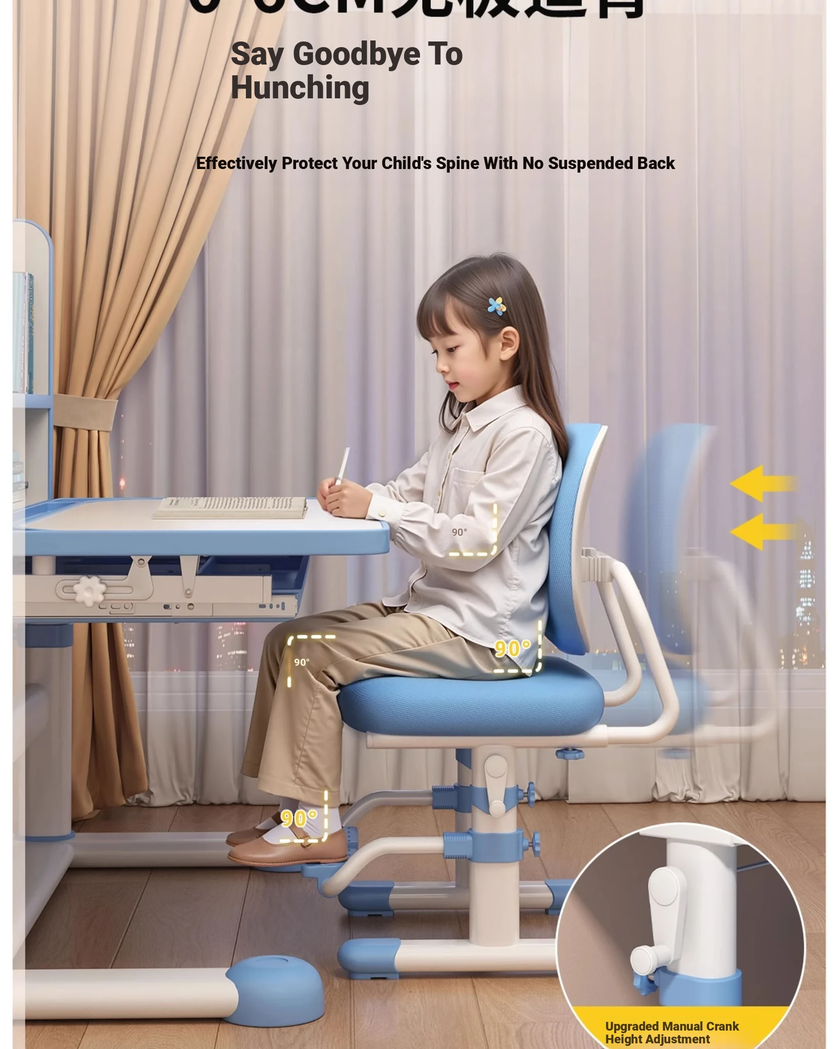 [Home Delivery] Blue-Eudite + Hand-cranked Back-chasing Posture Chair [Eye Protection Lithium Lamp + Change Chair Cover +5-piece Learning Gift Pack]]
