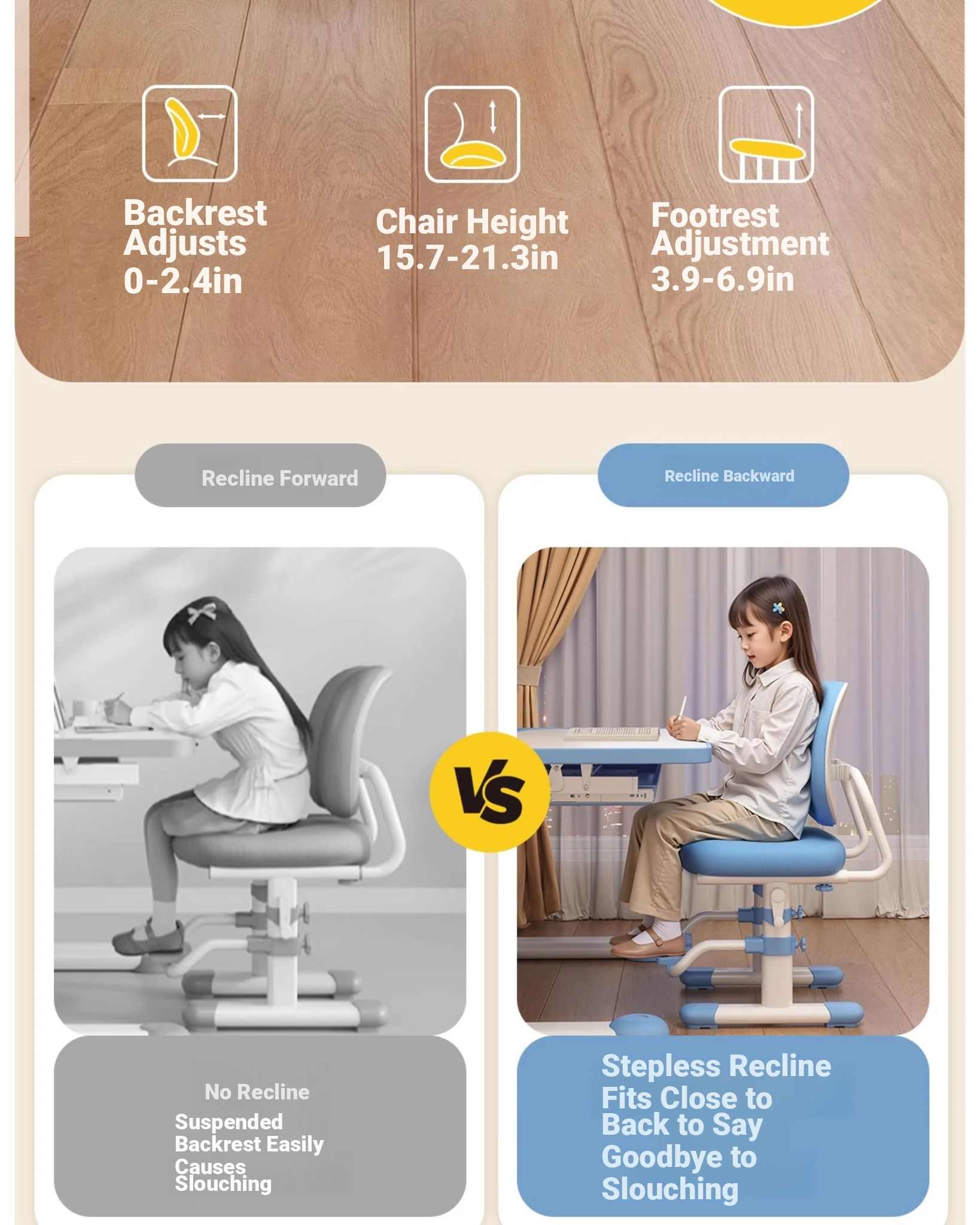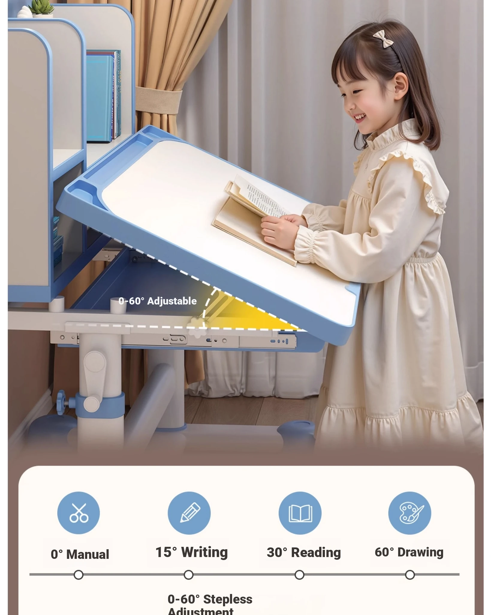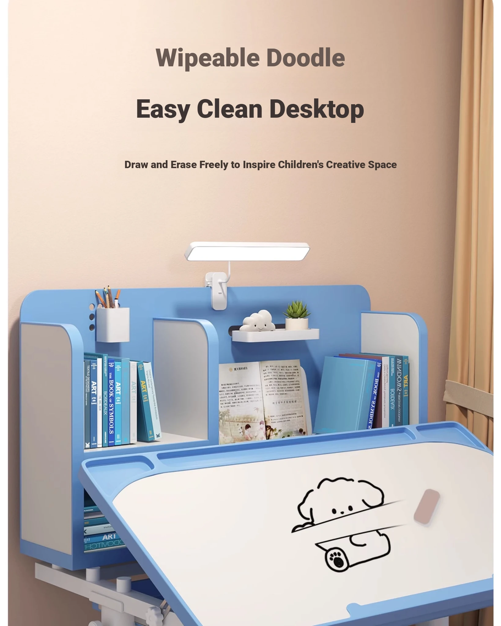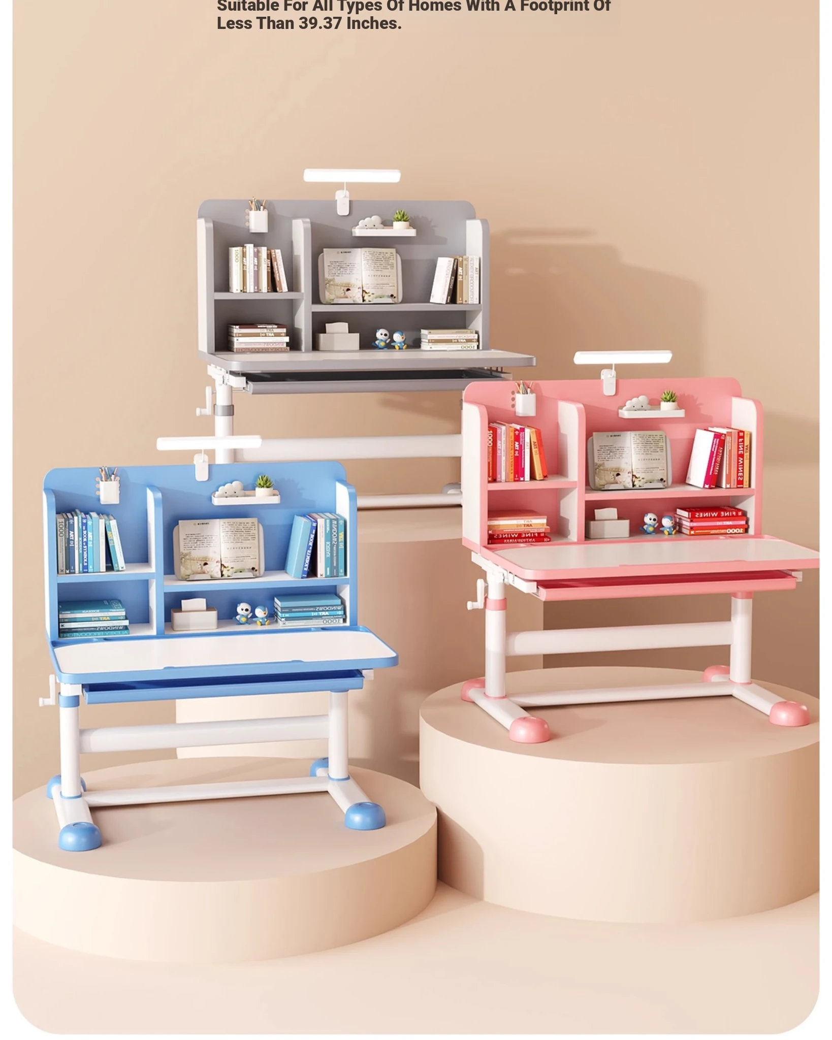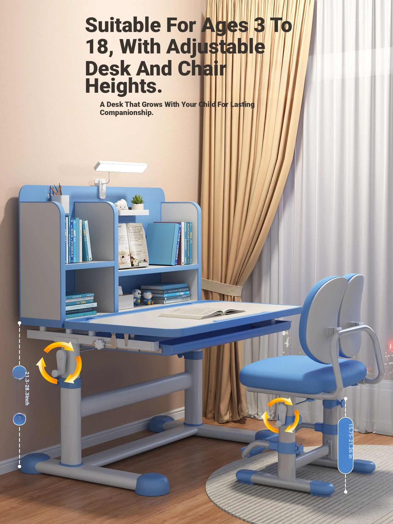 Kids Study Desk and Chair Set - Adjustable Height Children’s Homework Writing Desk for Home Use, Perfect for Elementary Students in Bedrooms