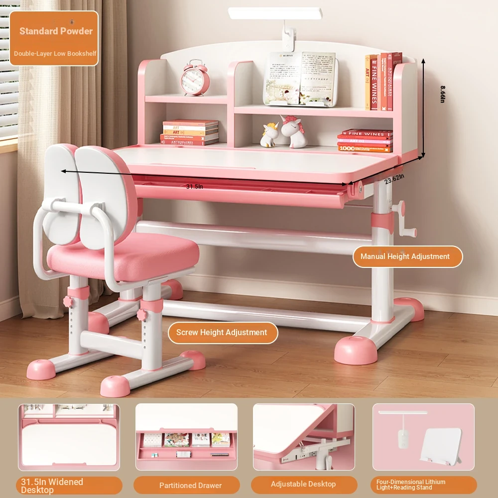 [Home Delivery] Pink-Eudite + Hand-cranked Back Chasing Chair [Eye Protection Lithium Lamp + Change Chair Cover +5-piece Learning Gift Pack]]