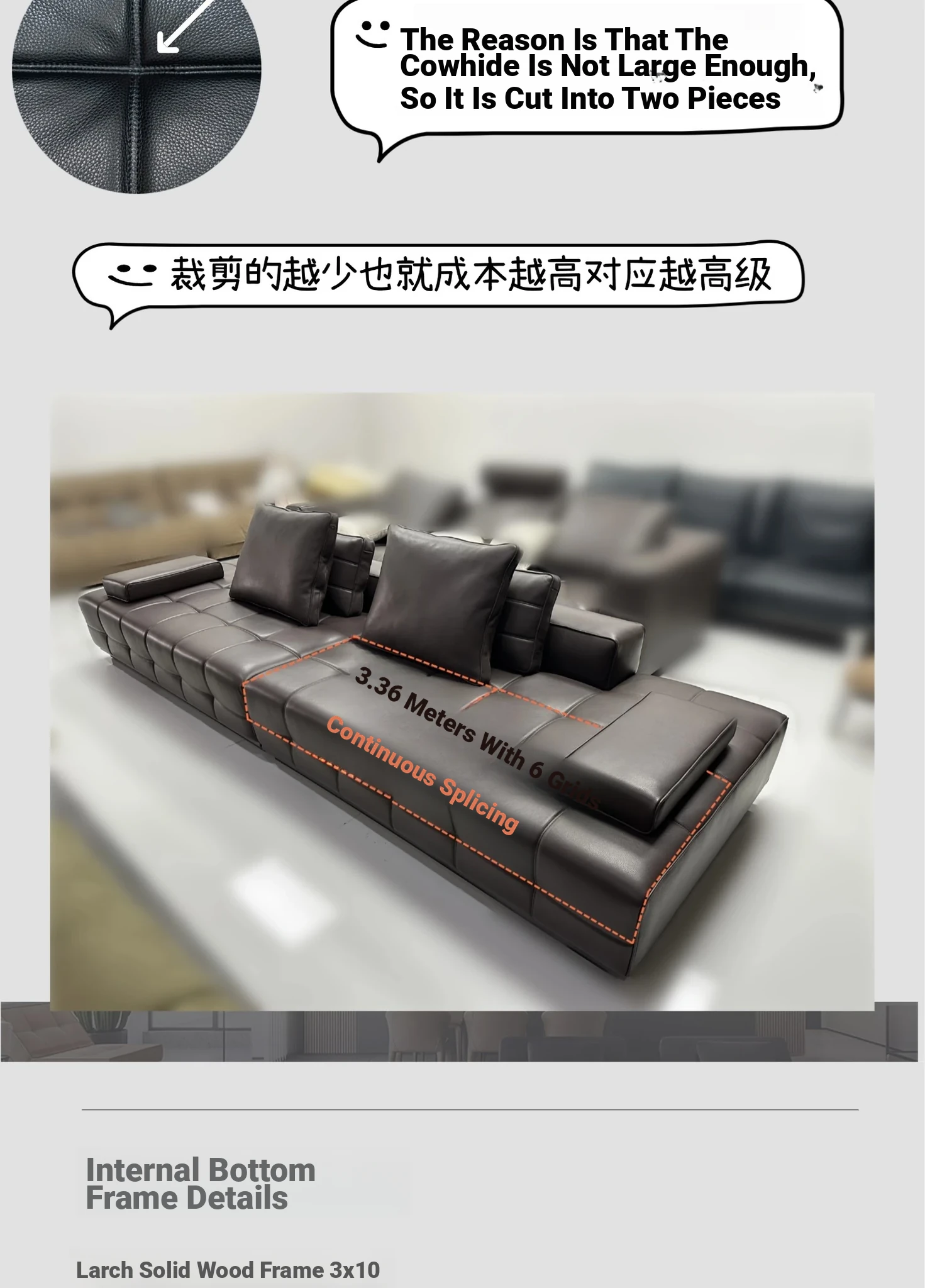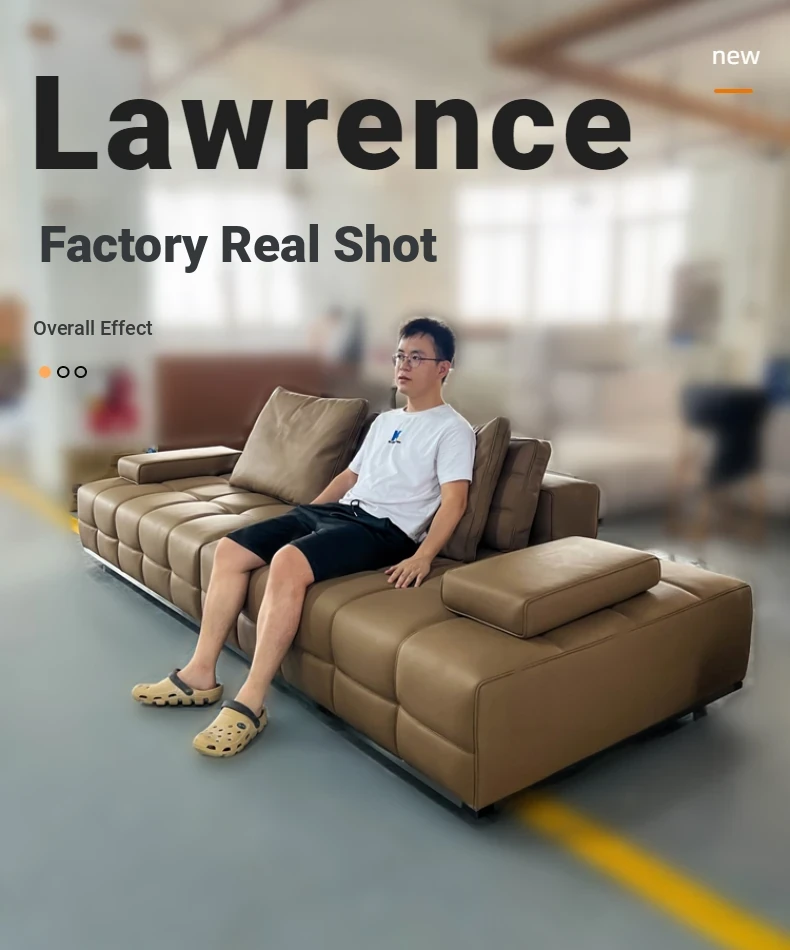 Lawrence Italian Minimalist Genuine Leather Sofa - Elegant 3-Seater for Villas and Living Rooms, Perfect for Modern Spaces